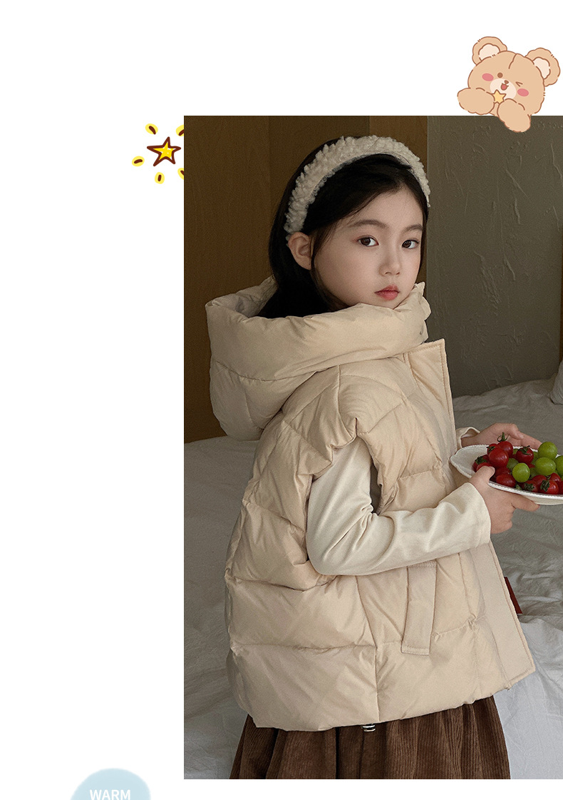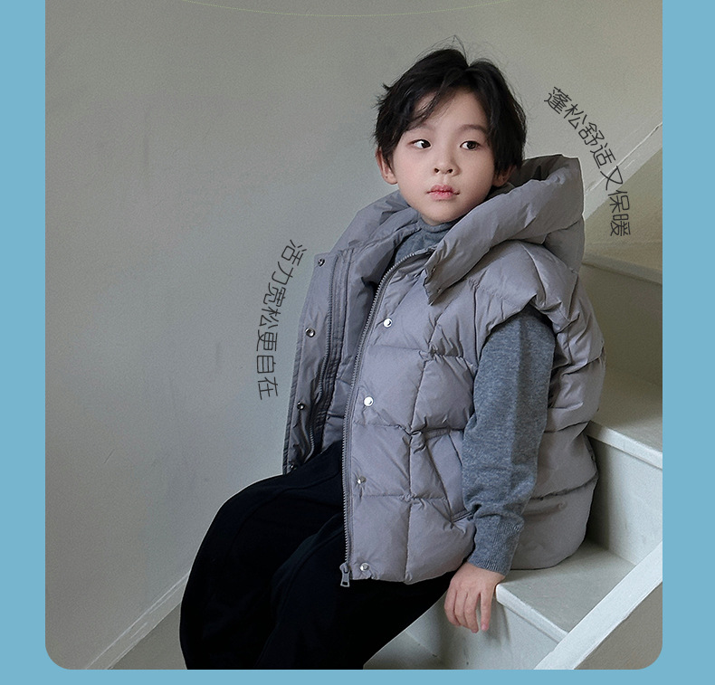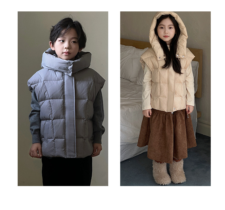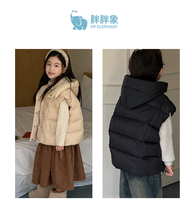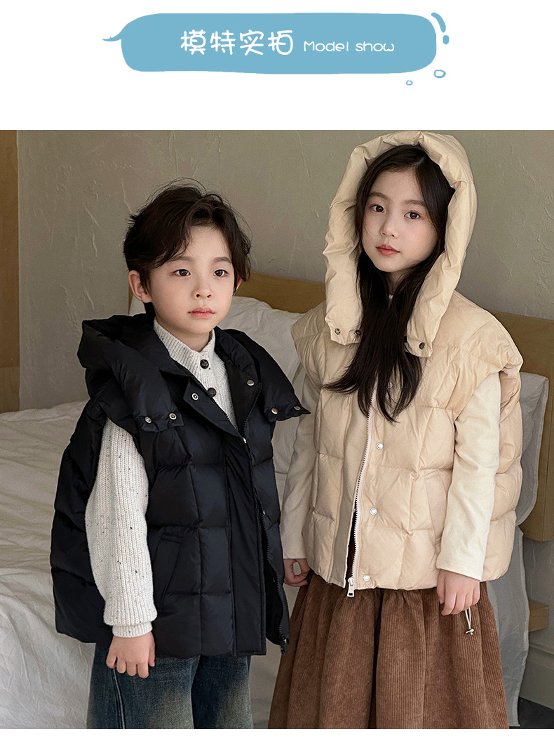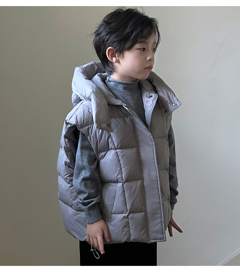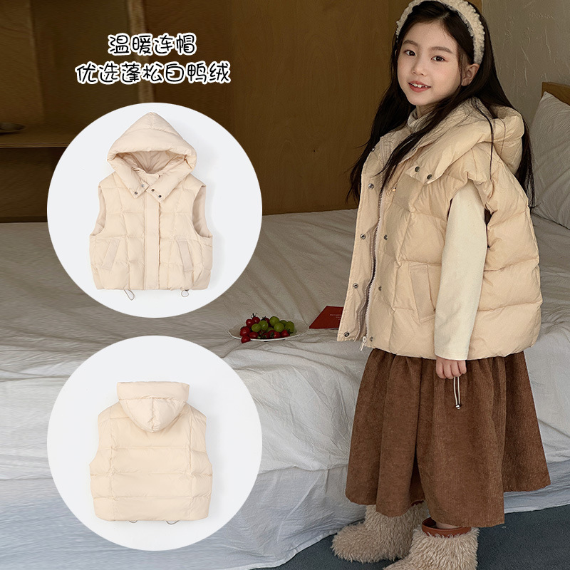 소년 소녀 다운 조끼 가을 겨울 2024 새로운 어린이 큰 어린이 후드 올매치 외부 따뜻한 재킷을 입고스토어 가기