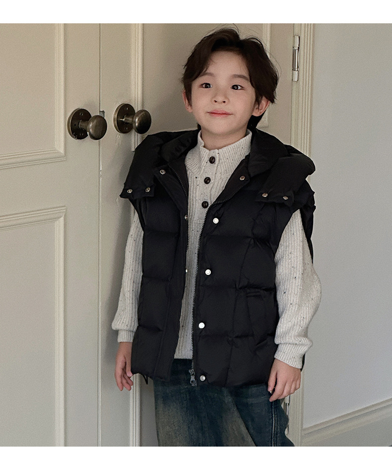 소년 소녀 다운 조끼 가을 겨울 2024 새로운 어린이 큰 어린이 후드 올매치 외부 따뜻한 재킷을 입고
