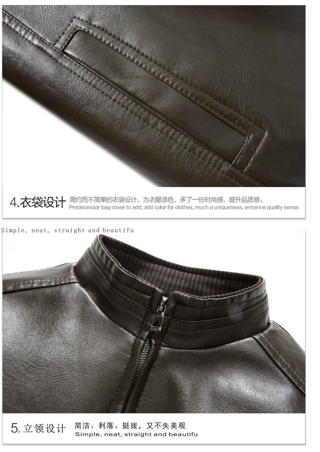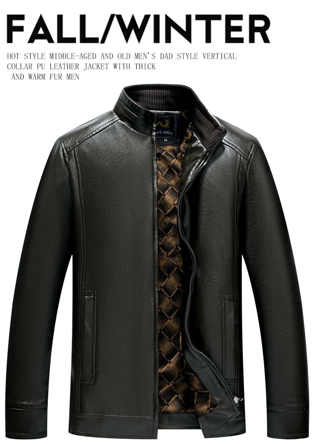 남성 하이 엔드 가죽 자켓 캐주얼 가을과 겨울 스타일 간단한 유행 기모 가죽 재킷 세로 칼라스토어 가기