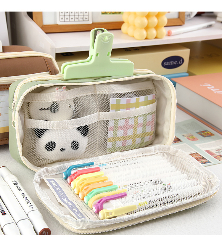 대용량 연필 케이스 플립 학생 문구 가방 소년 간단한 문구 연필 케이스 소녀 신선한 팬더 문구 상자