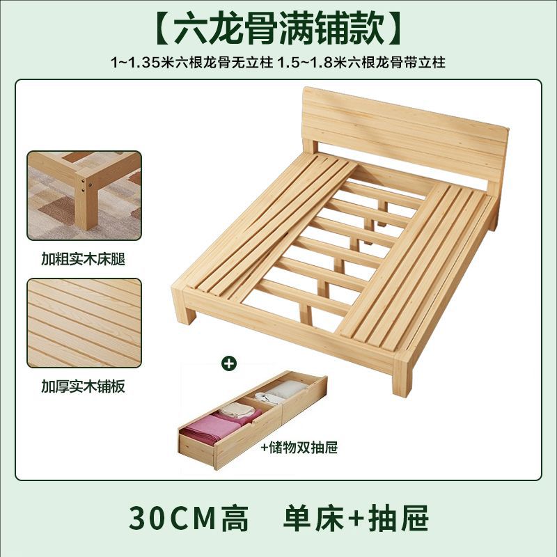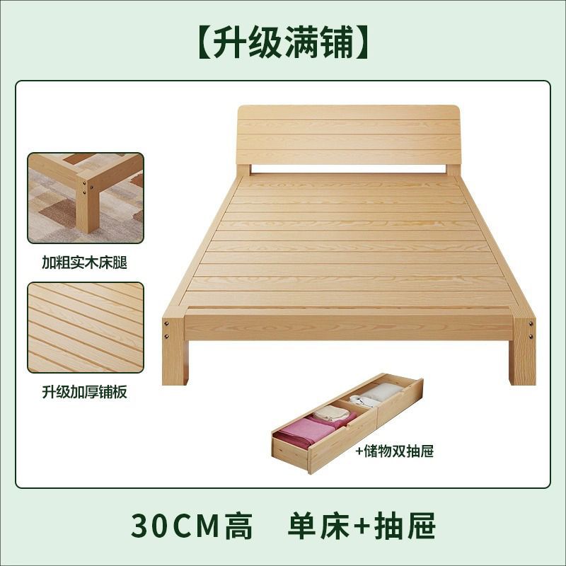 • [대담하고 통기성이 좋은 모델] 원목 침대 높이 30 + 이중 서랍
