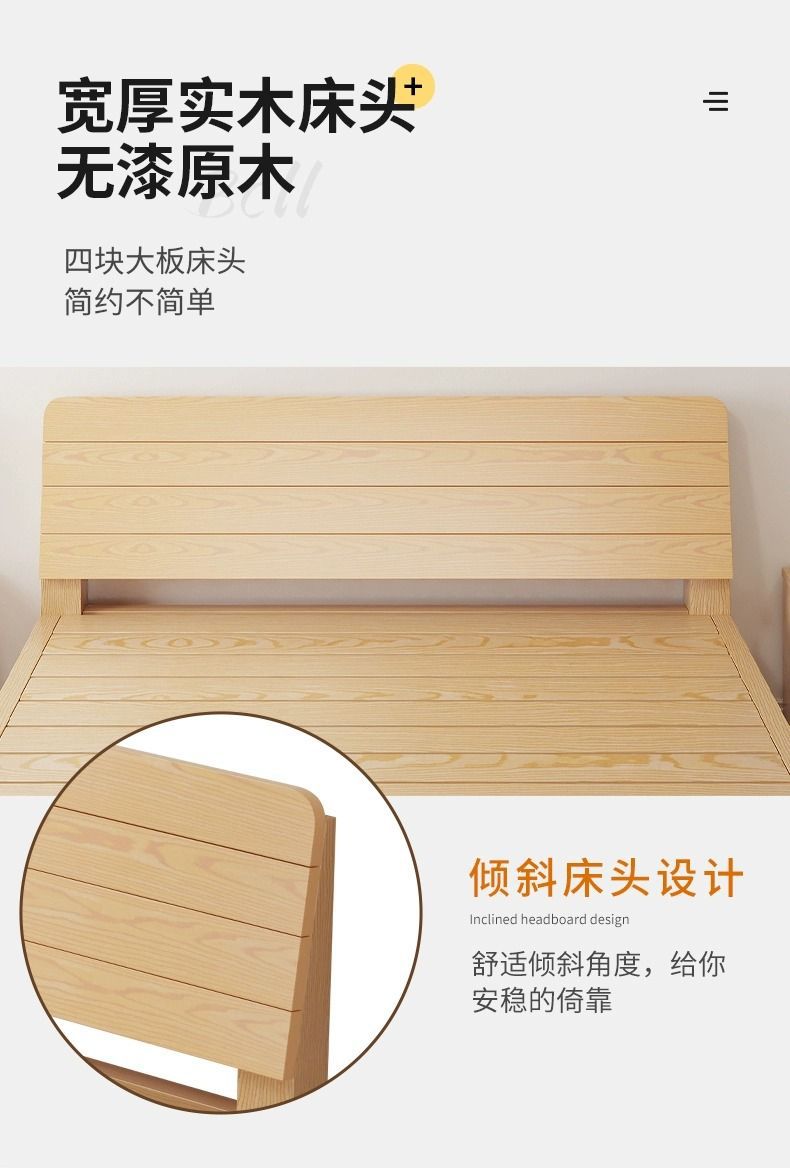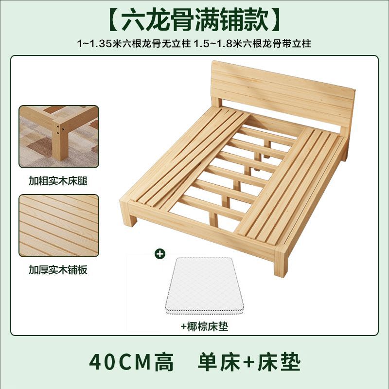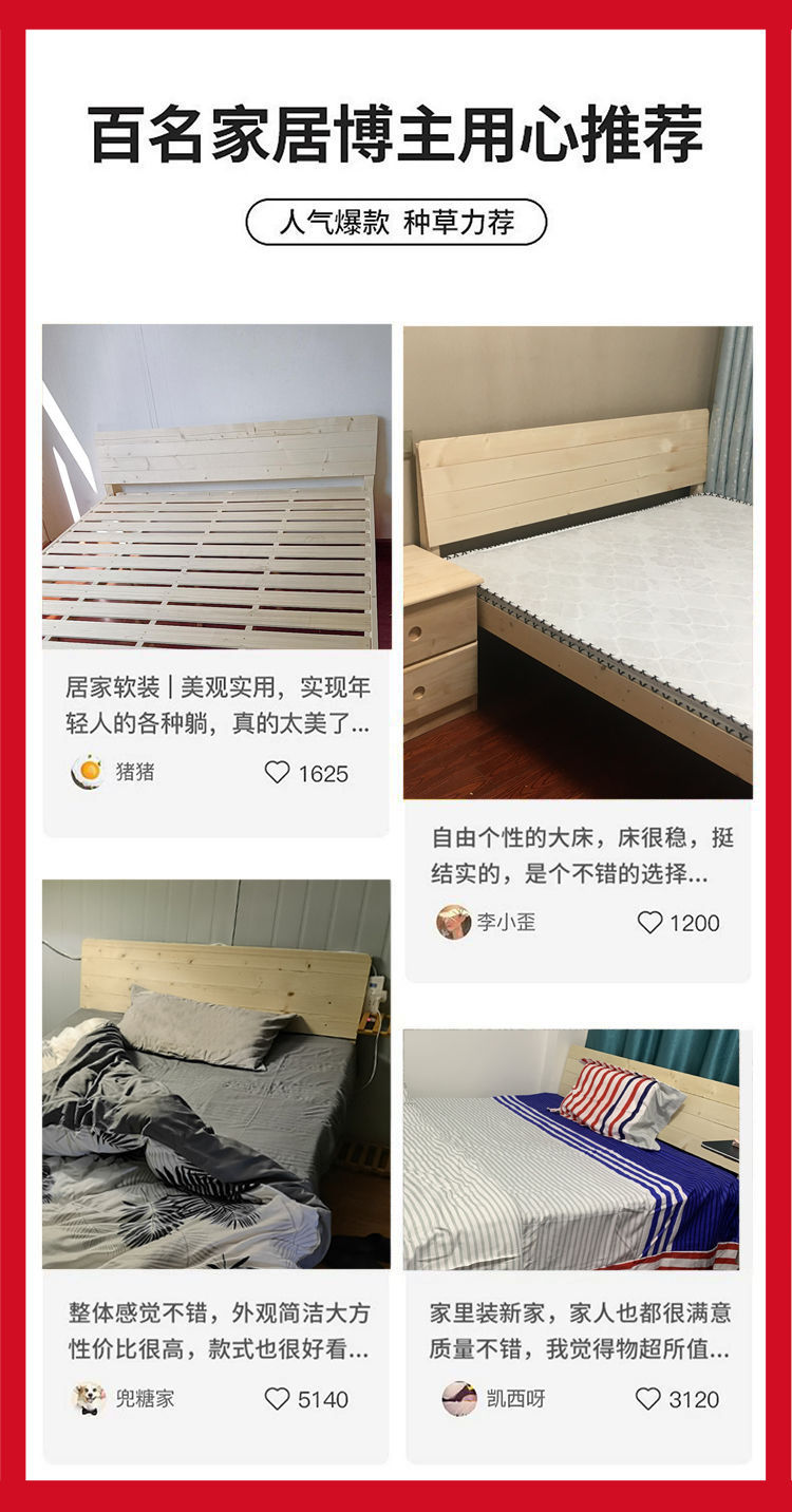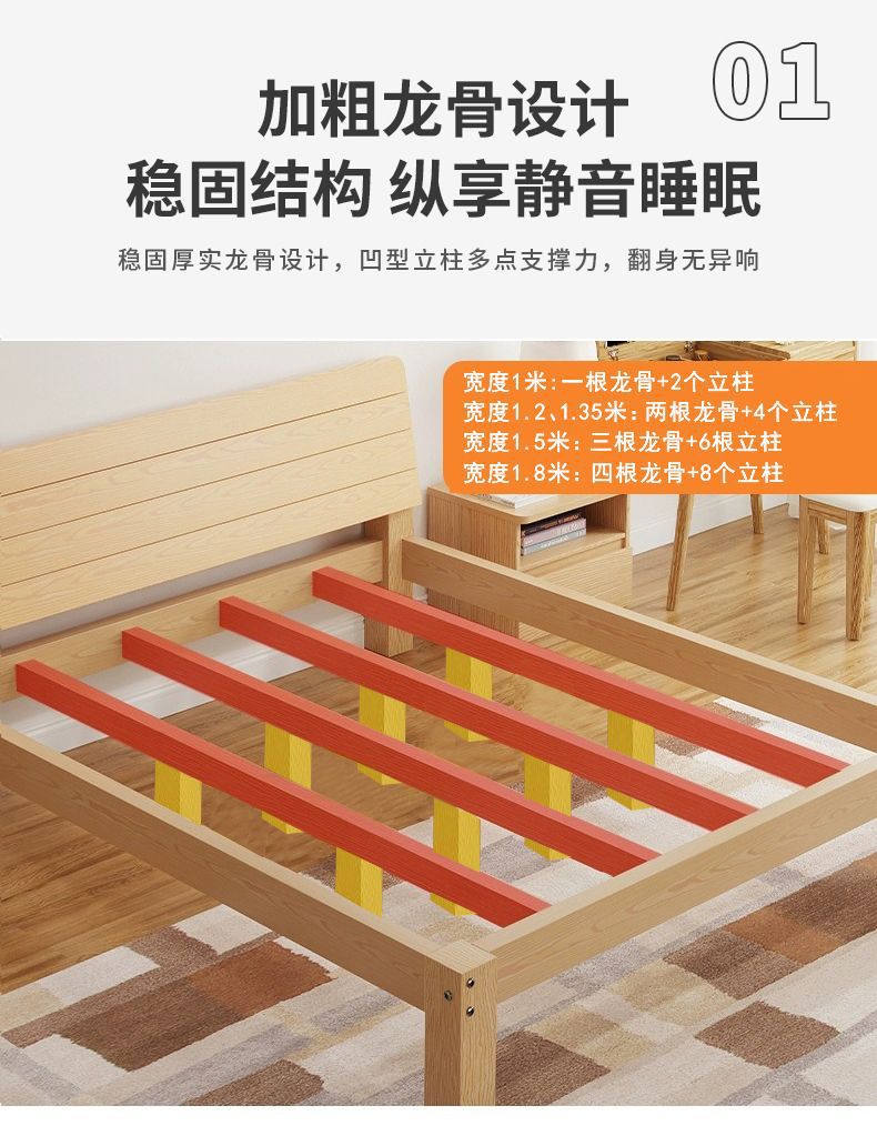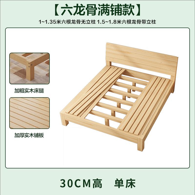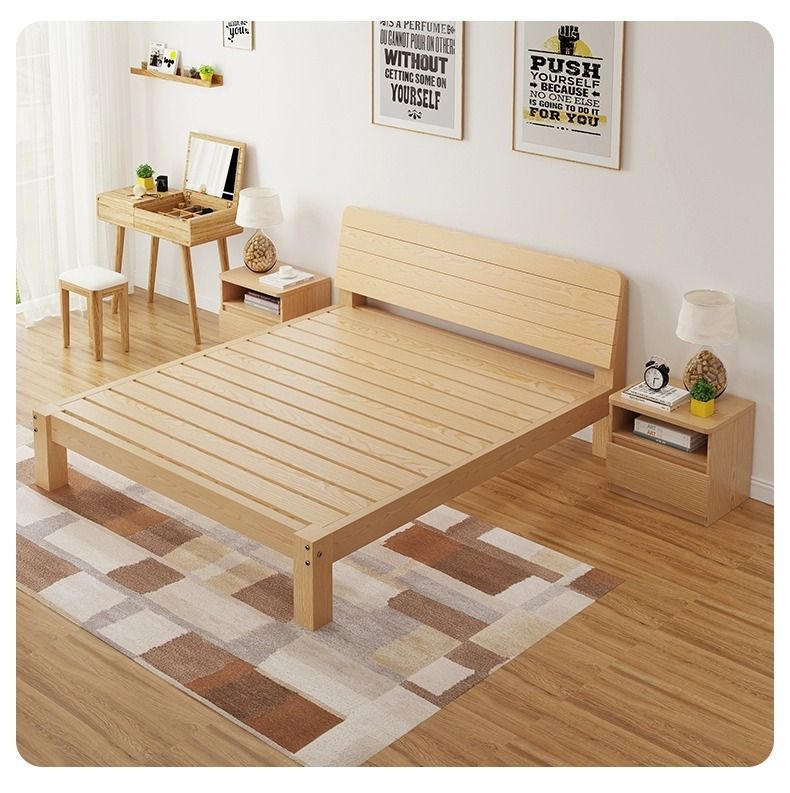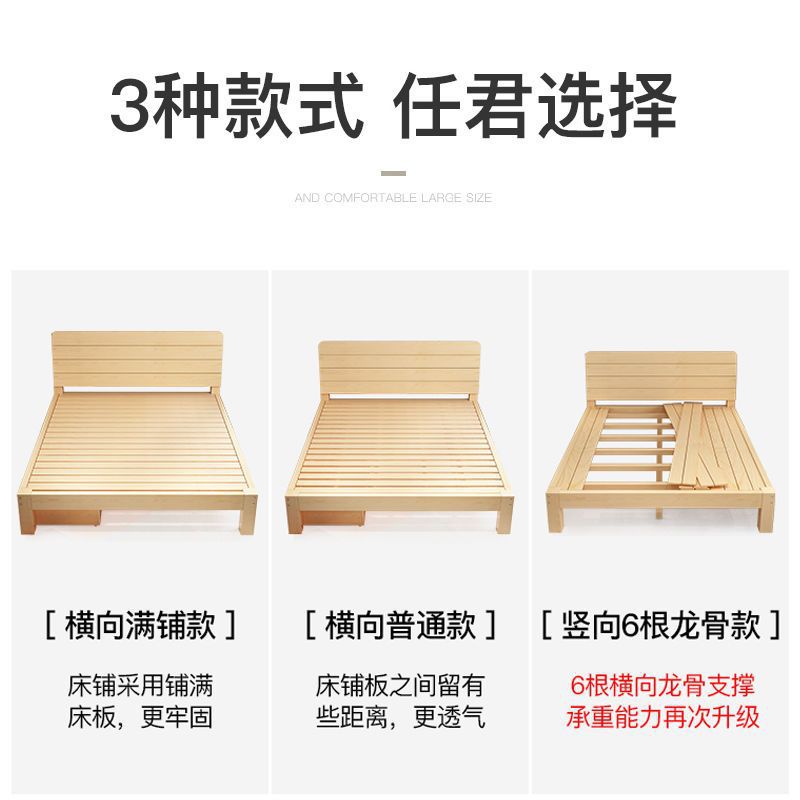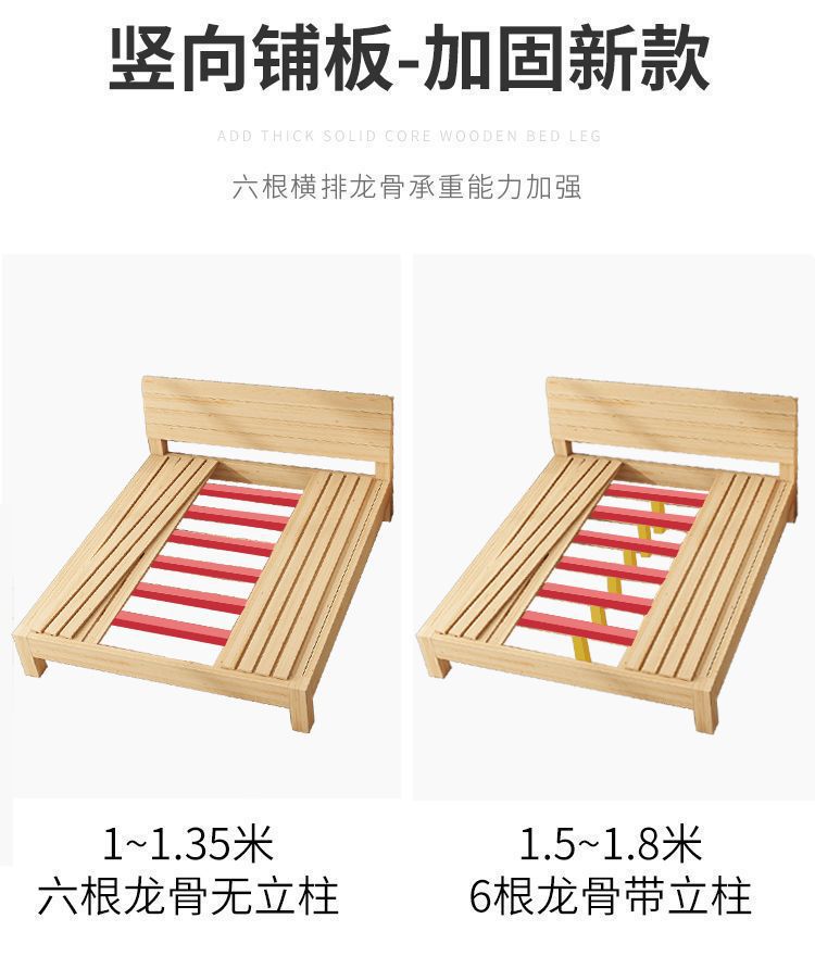 현대 간단한 단단한 나무 침대 1.8 m 소나무 경제 더블 침대 1.5 m 임대 방 간단한 1m 싱글 침대 프레임