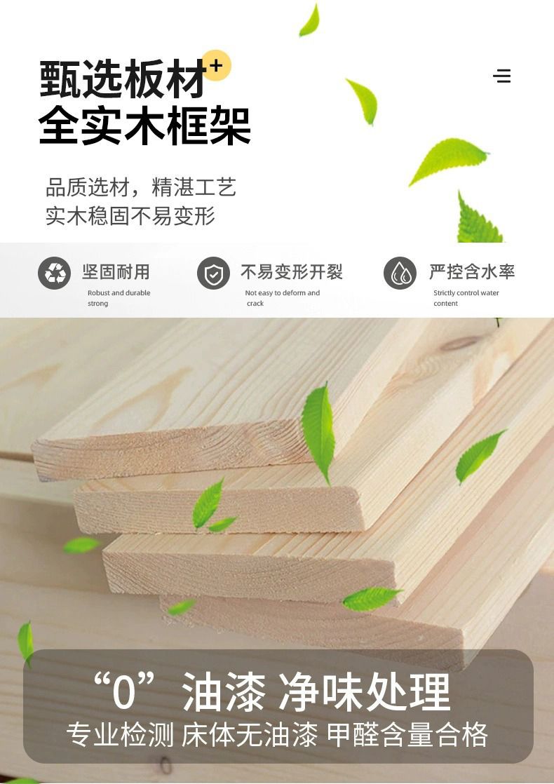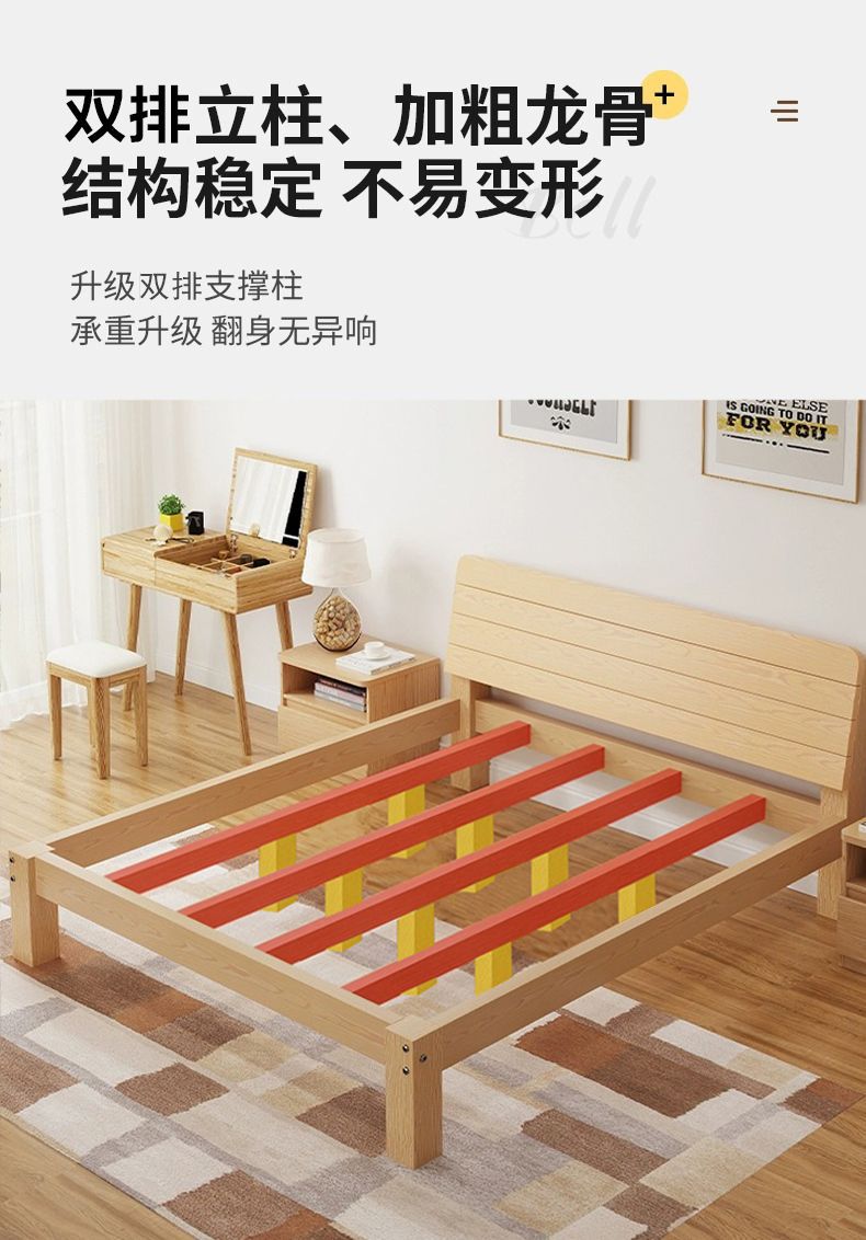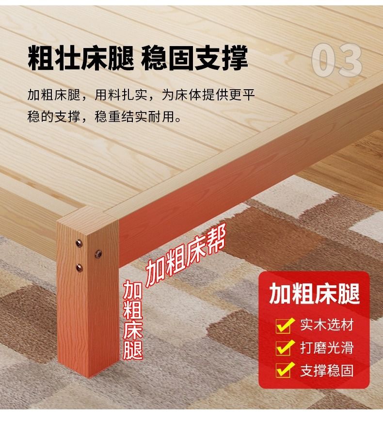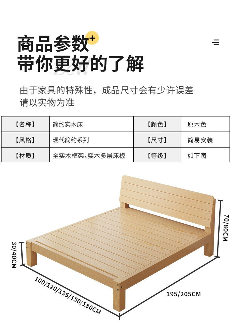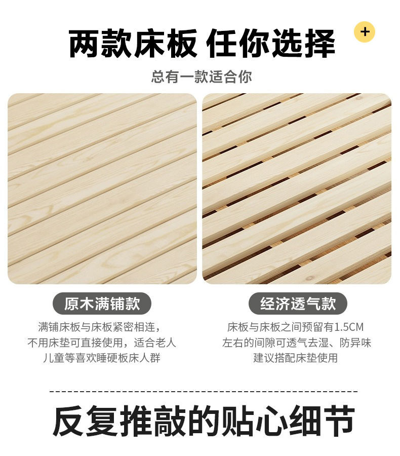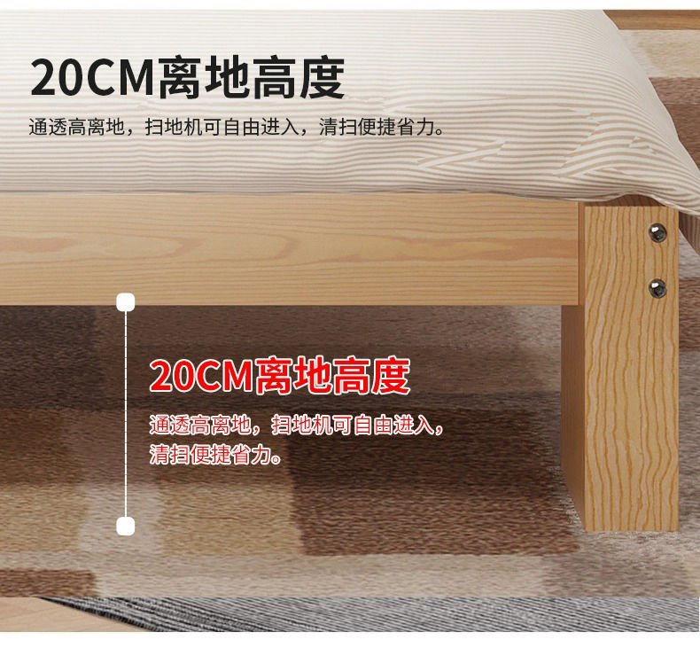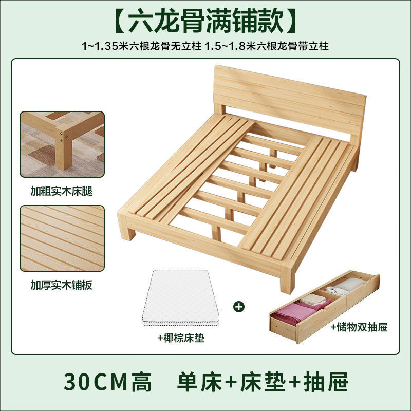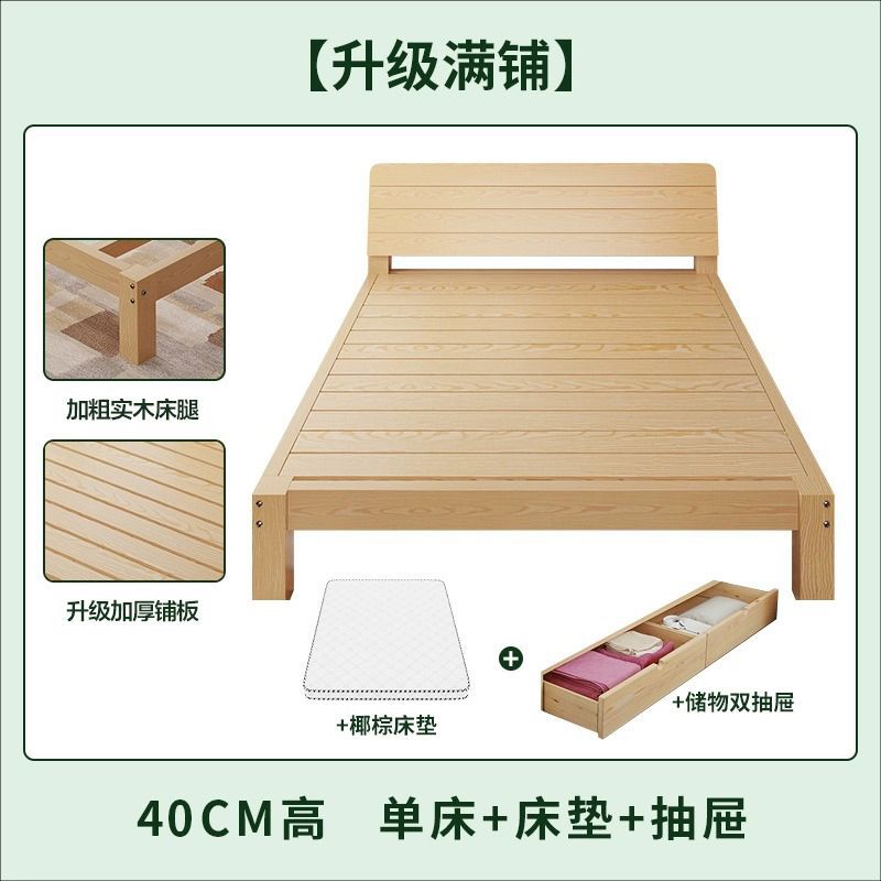 현대 간단한 단단한 나무 침대 1.8 m 소나무 경제 더블 침대 1.5 m 임대 방 간단한 1m 싱글 침대 프레임