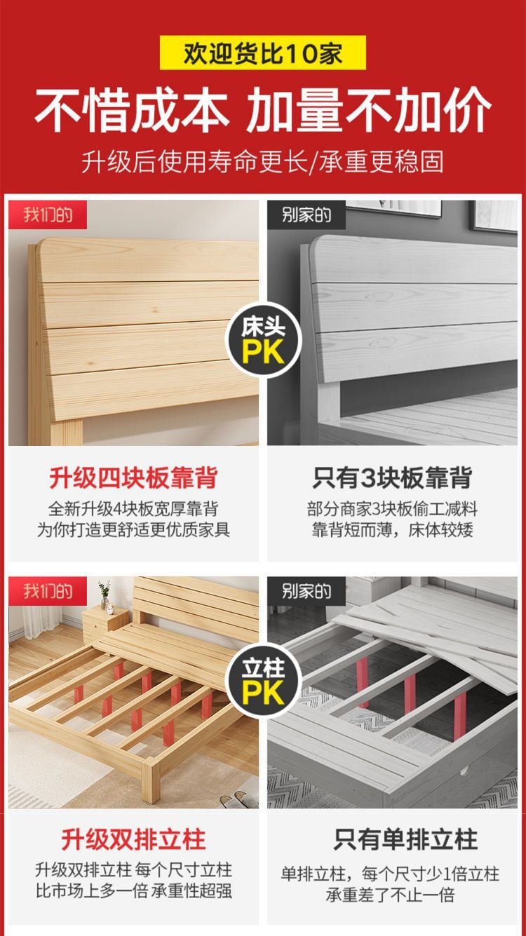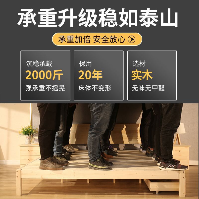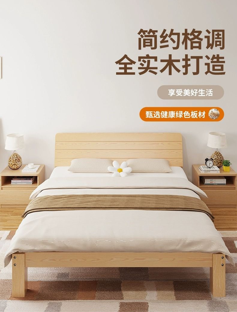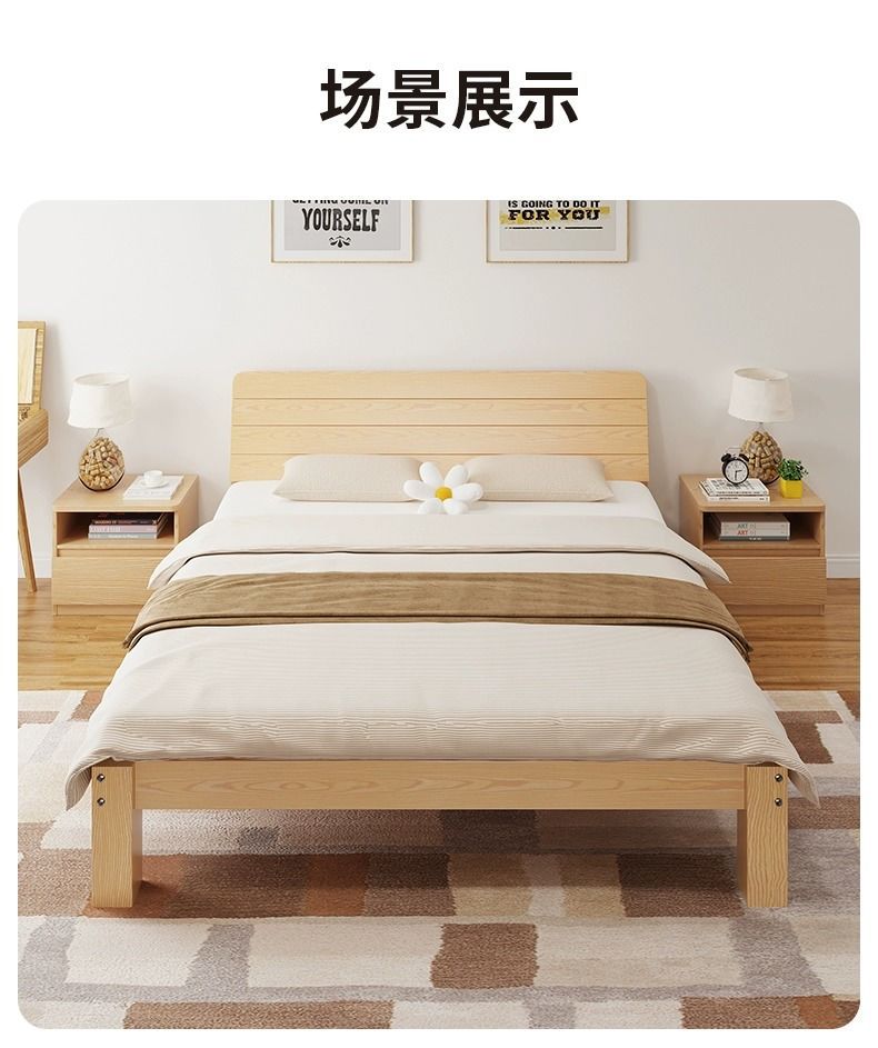 현대 간단한 단단한 나무 침대 1.8 m 소나무 경제 더블 침대 1.5 m 임대 방 간단한 1m 싱글 침대 프레임스토어 가기