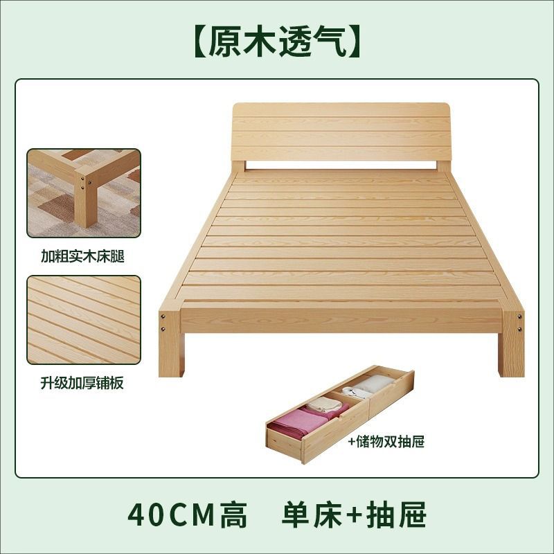 • [대담하고 통기성이 좋은 모델] 원목 침대 높이 40 + 이중 서랍