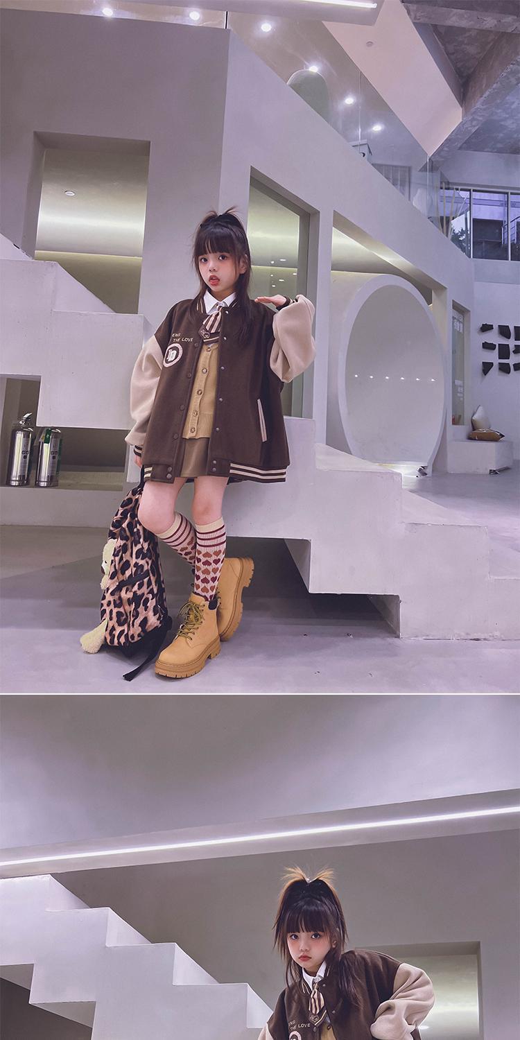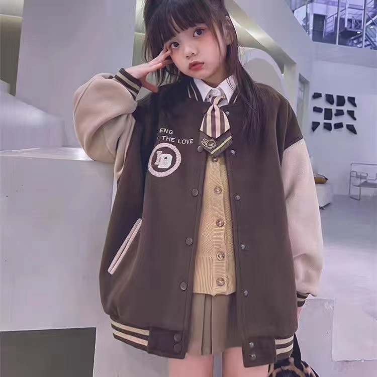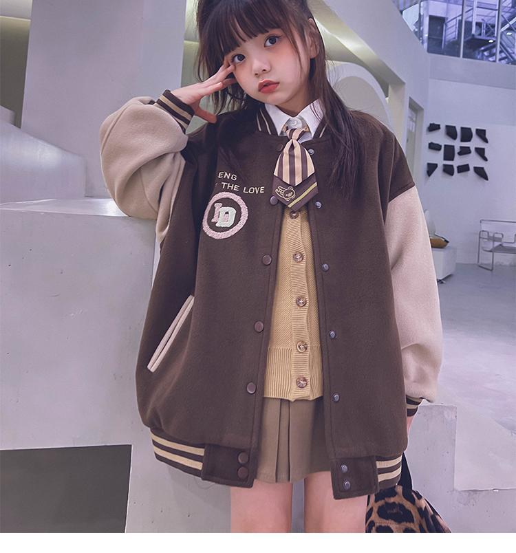 소녀 2024 겨울 소년 소녀 재킷 야구 코트 느슨한 유행과 쿨 모직 안티 탑 부모-아이 스타일스토어 가기