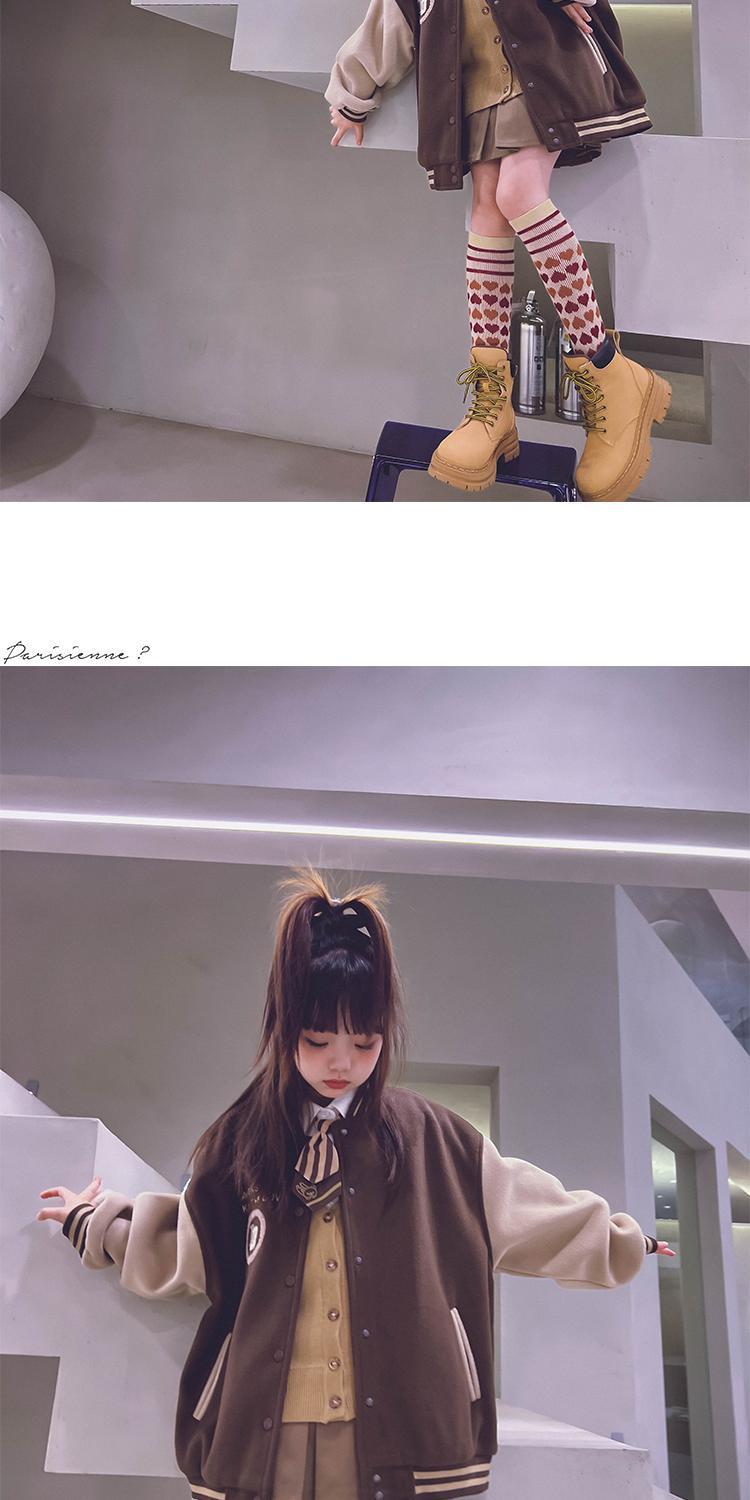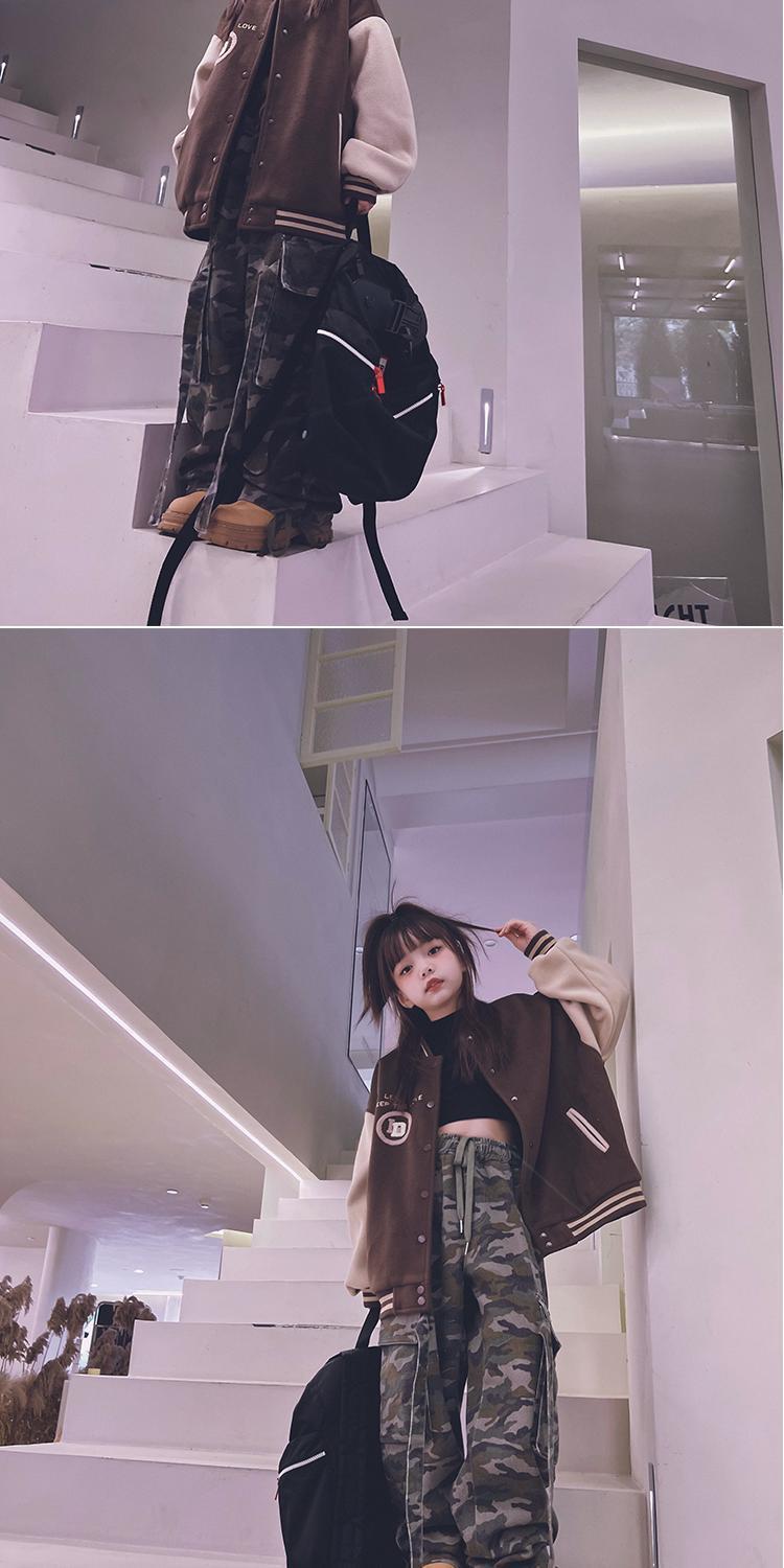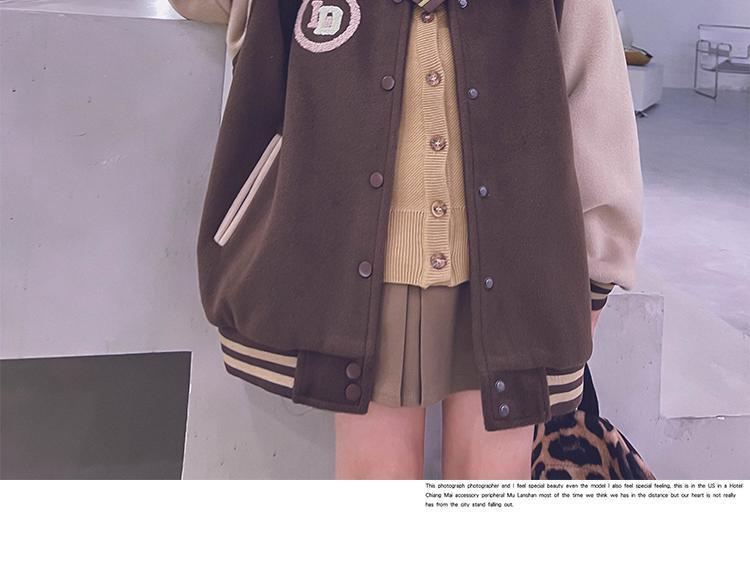 • 브라운 벨벳 두꺼운 모직 야구 재킷