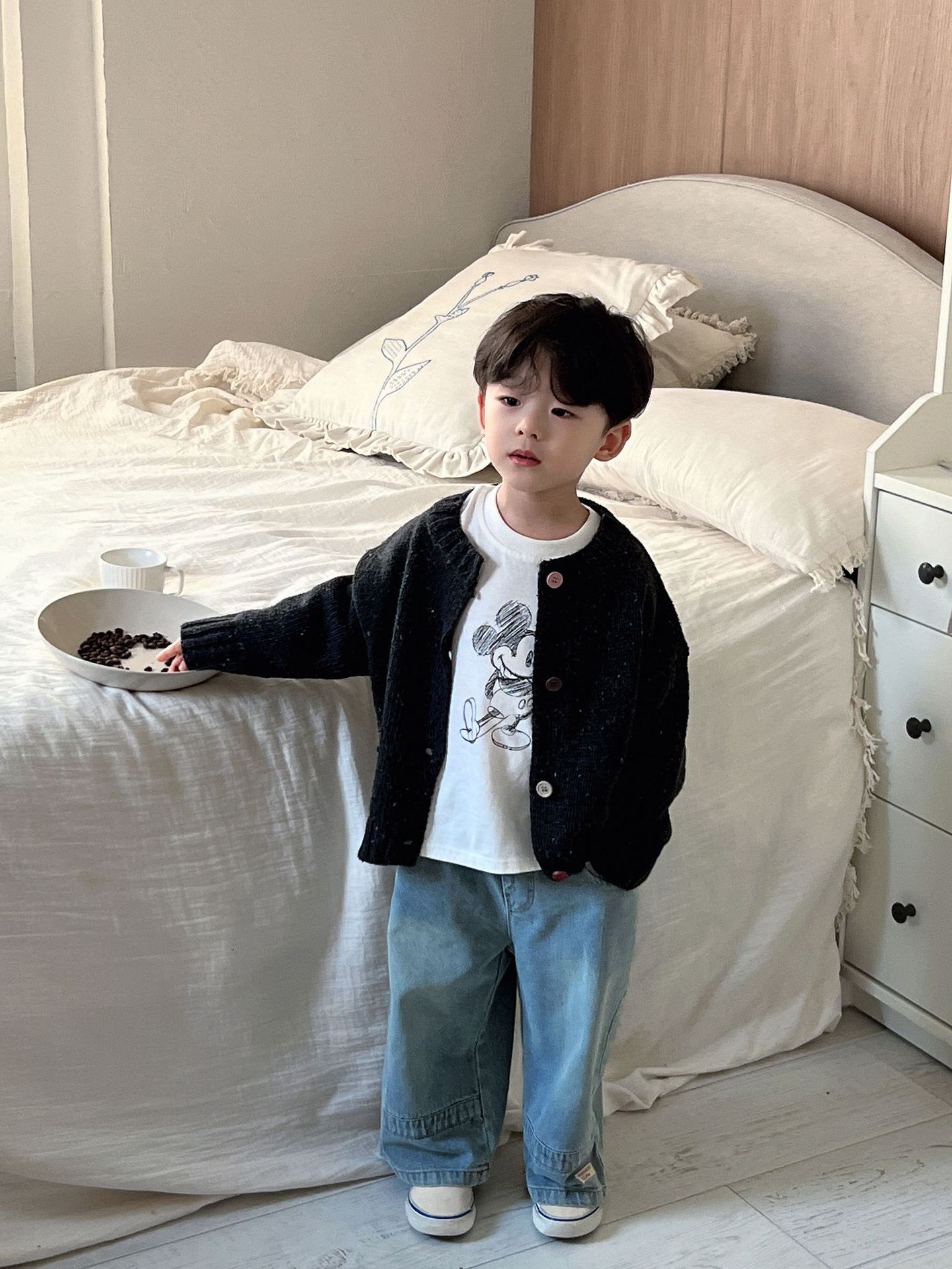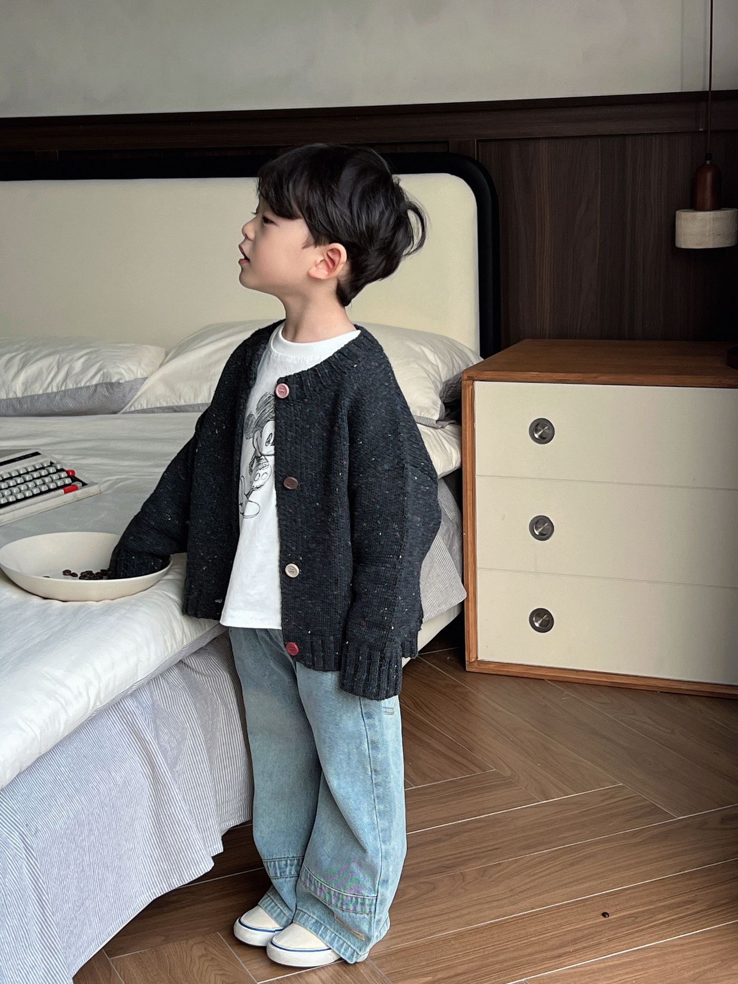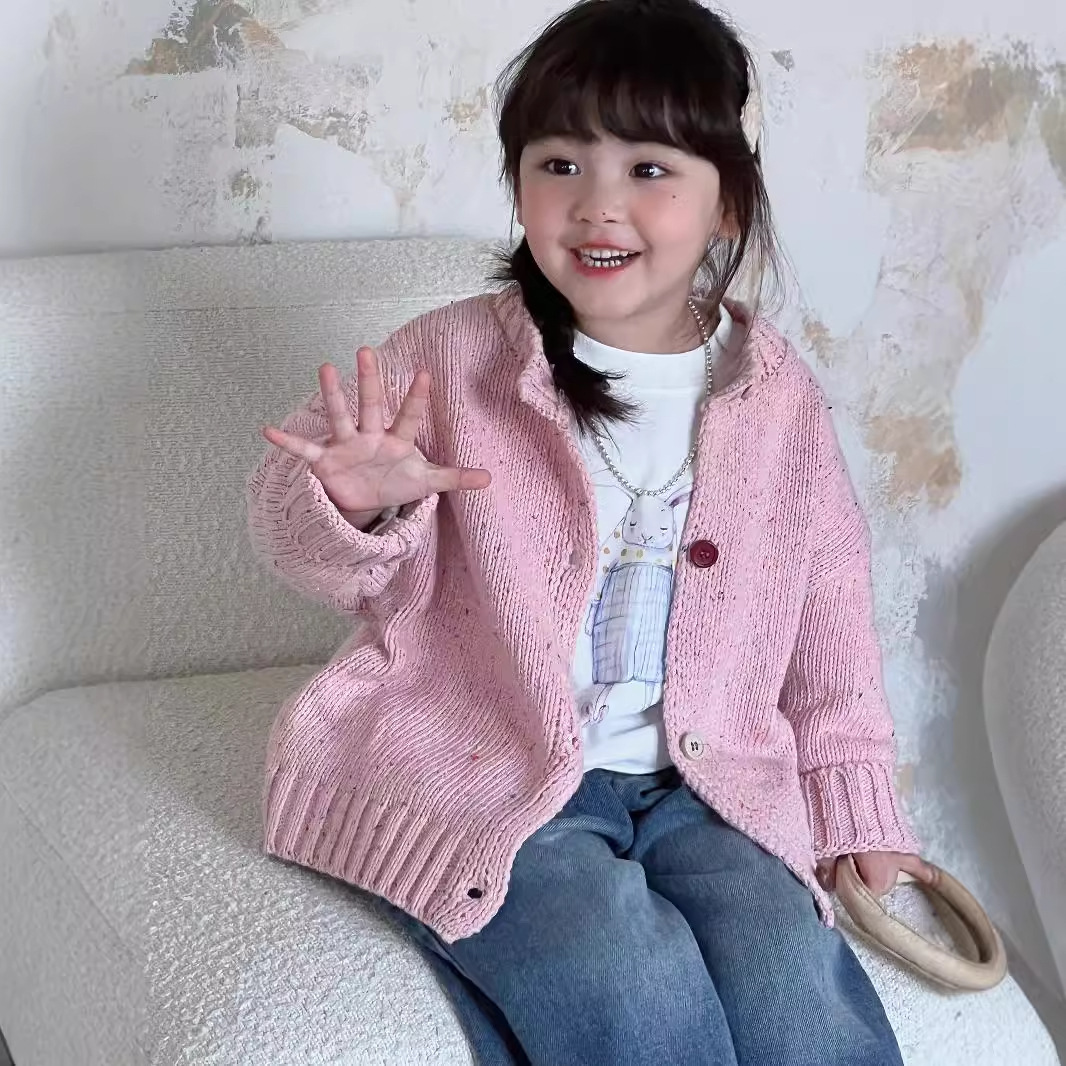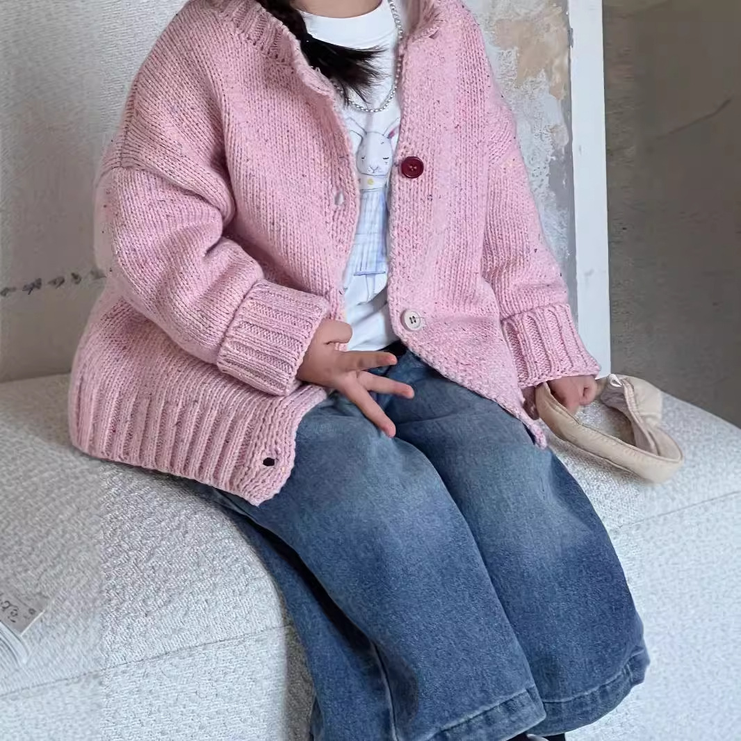 남학생과 여학생 스웨터 한국판 24 가을과 겨울 새로운 어린이 화려한 버튼 니트 카디건 베이비 컬러 울 코트