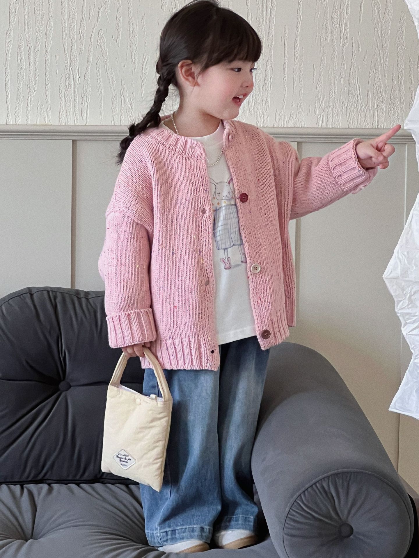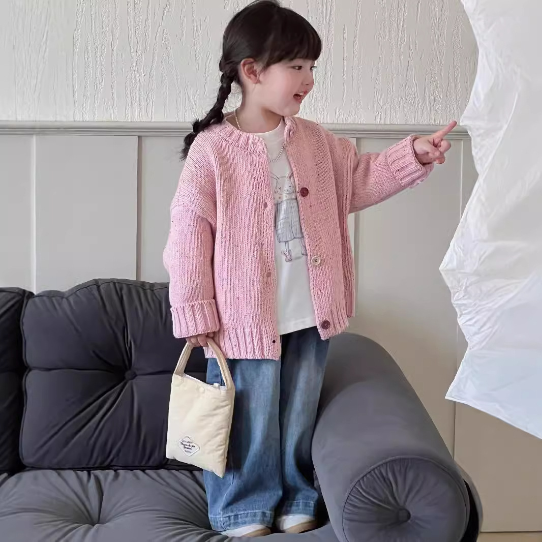 남학생과 여학생 스웨터 한국판 24 가을과 겨울 새로운 어린이 화려한 버튼 니트 카디건 베이비 컬러 울 코트스토어 가기