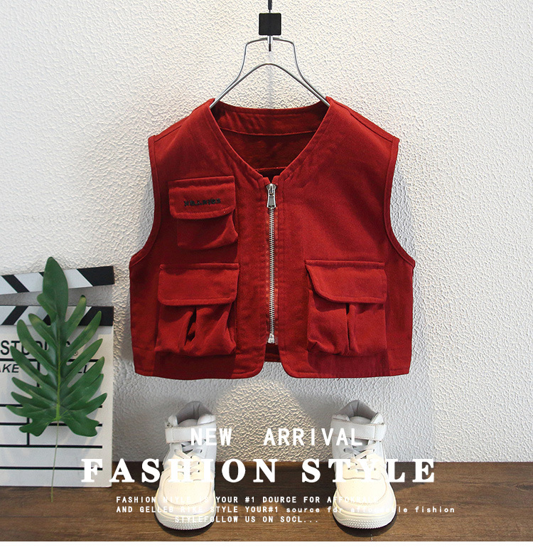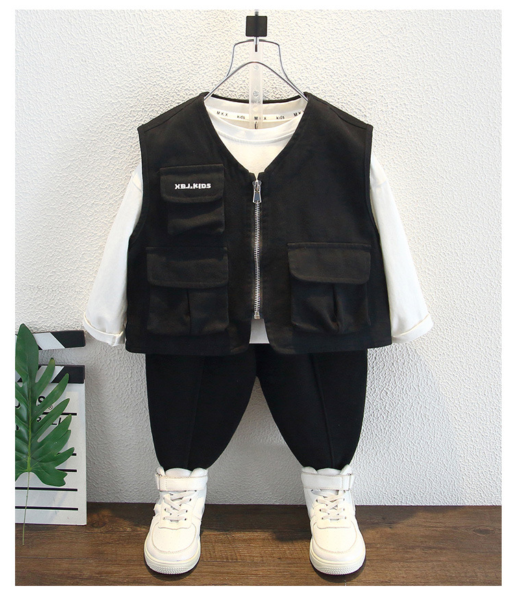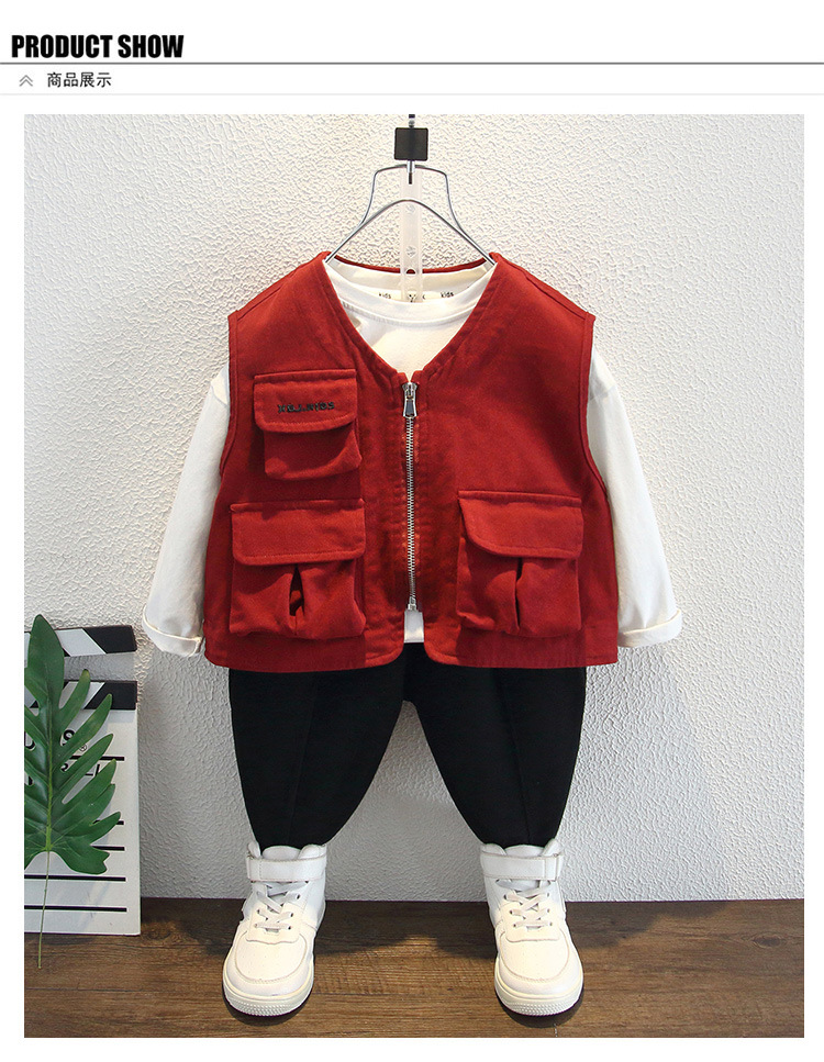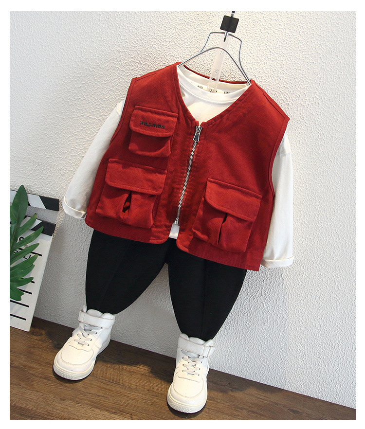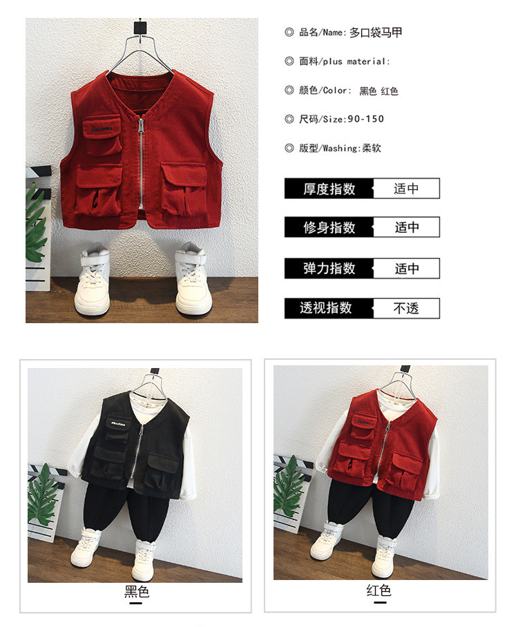남학생의 봄과 가을 면화 3 차원 가방 조끼 어린이 올매치 핸섬 민소매 재킷 중소 어린이 대외 무역 아동복 트렌디