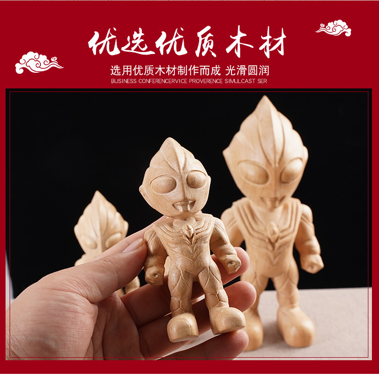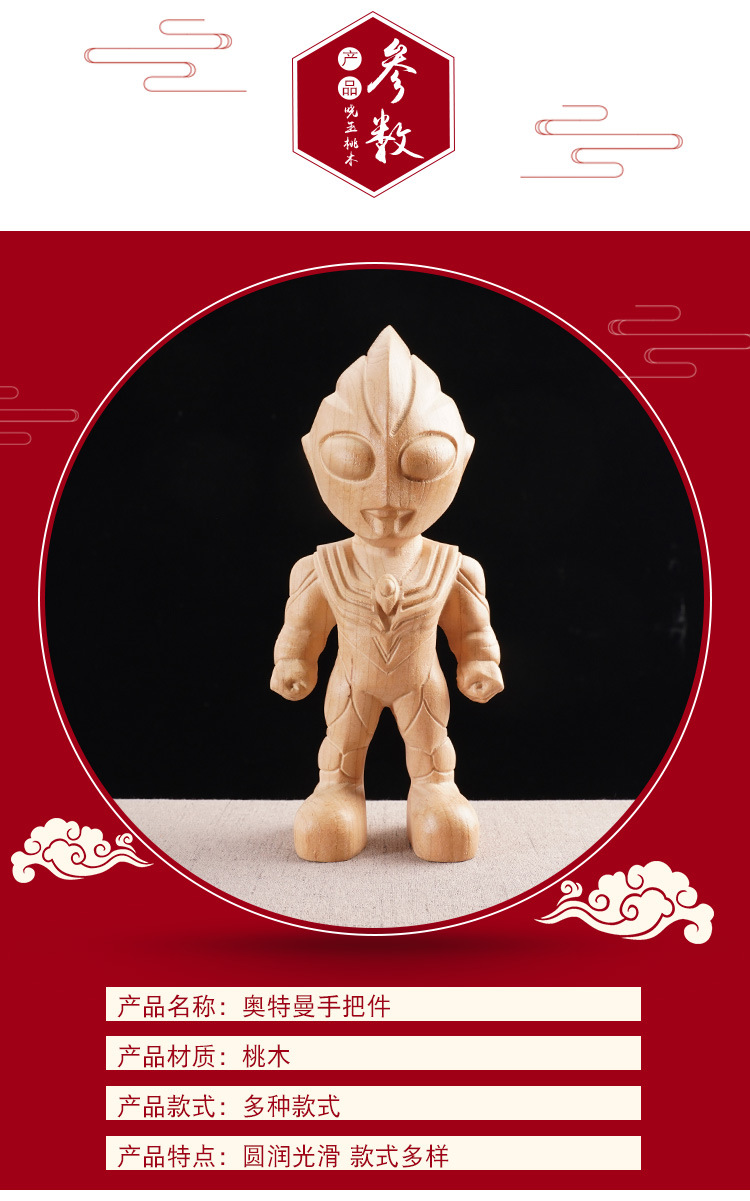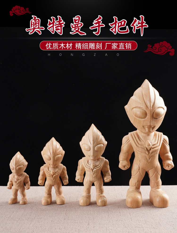 남성용 백단 나무 조각 Ultraman Tiga 손잡이 조각 만화 소년 생일 선물 장식스토어 가기