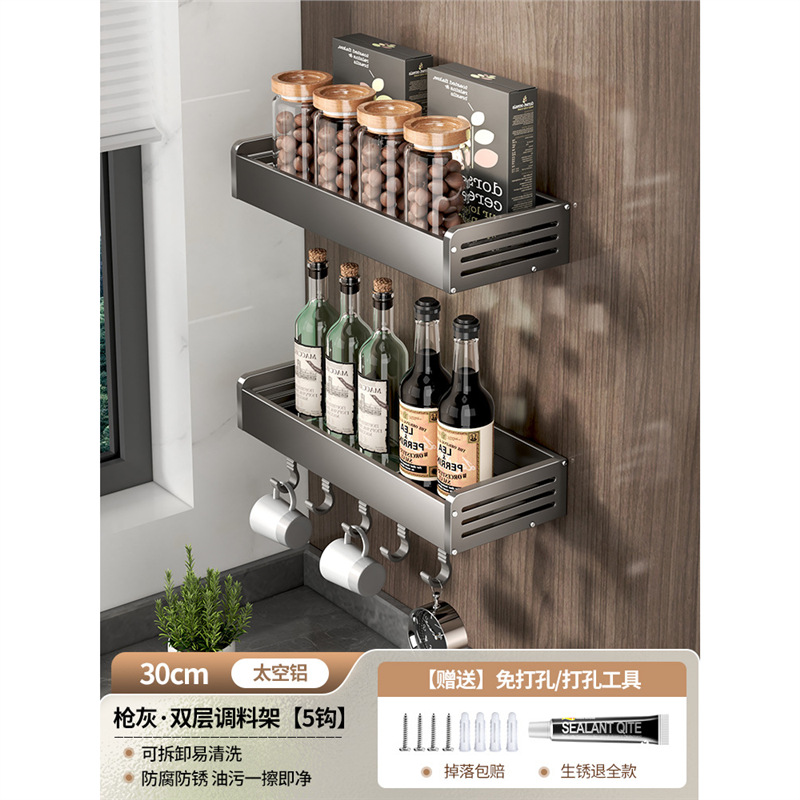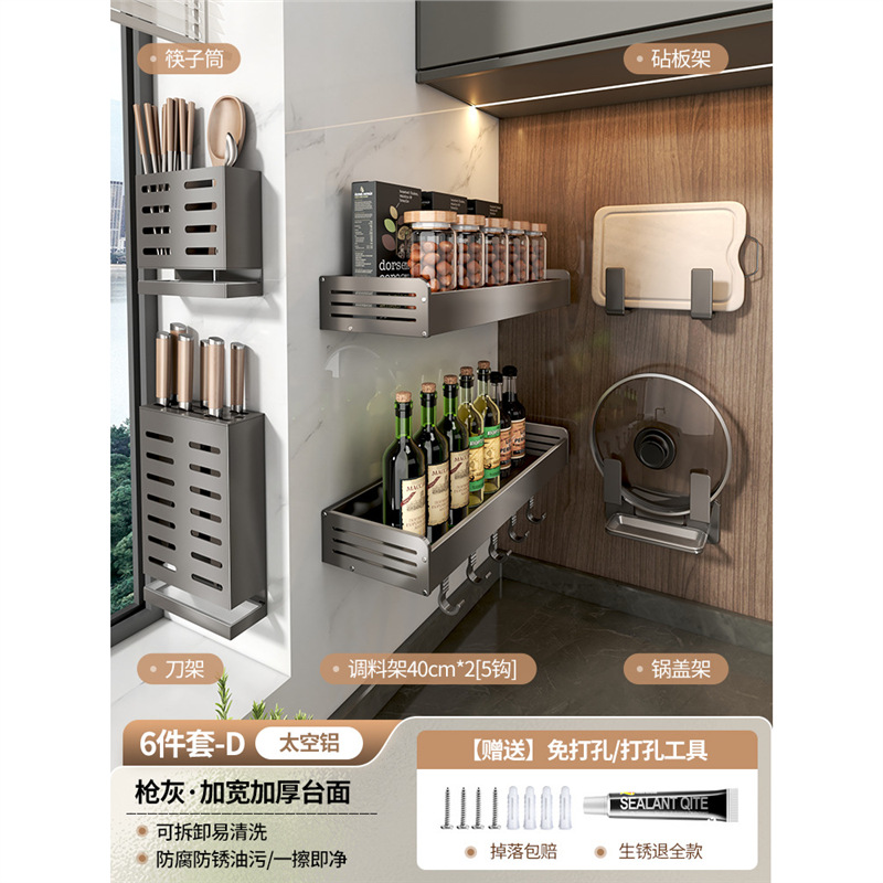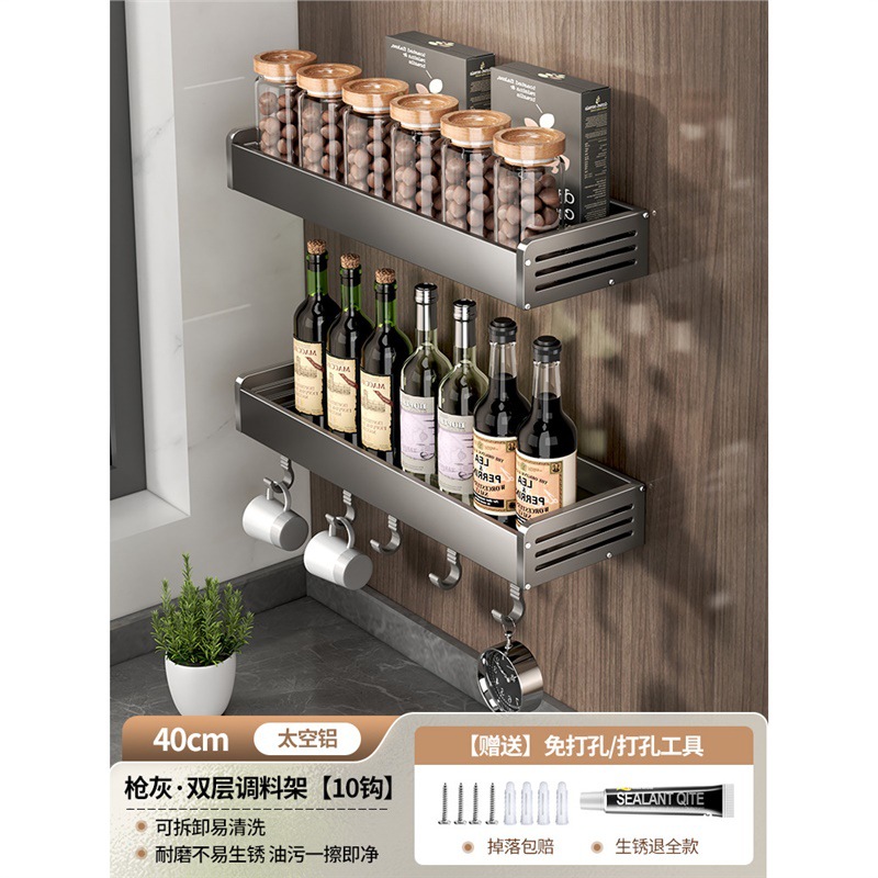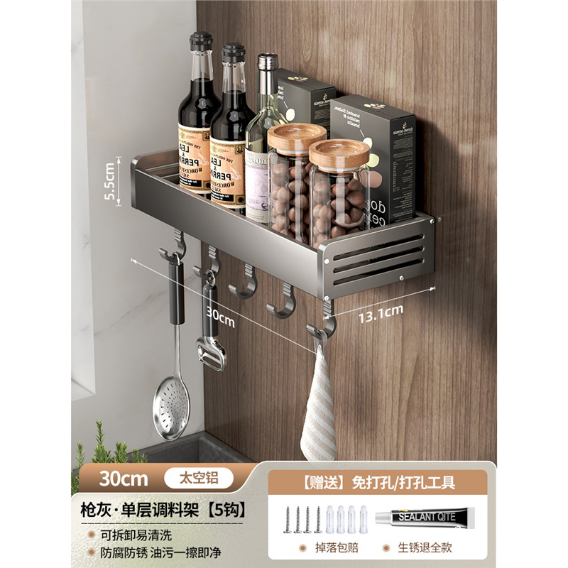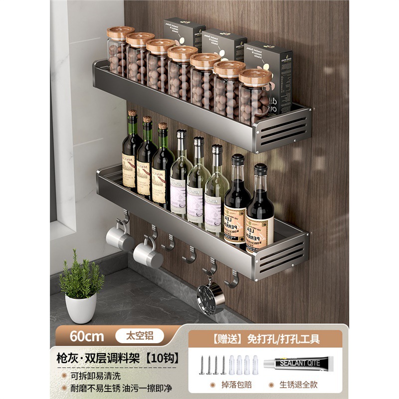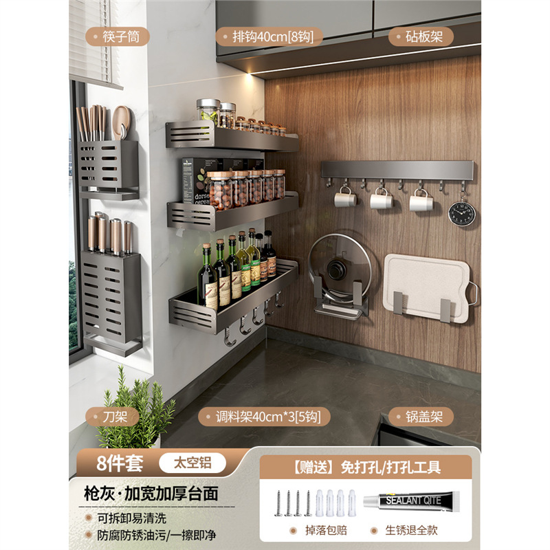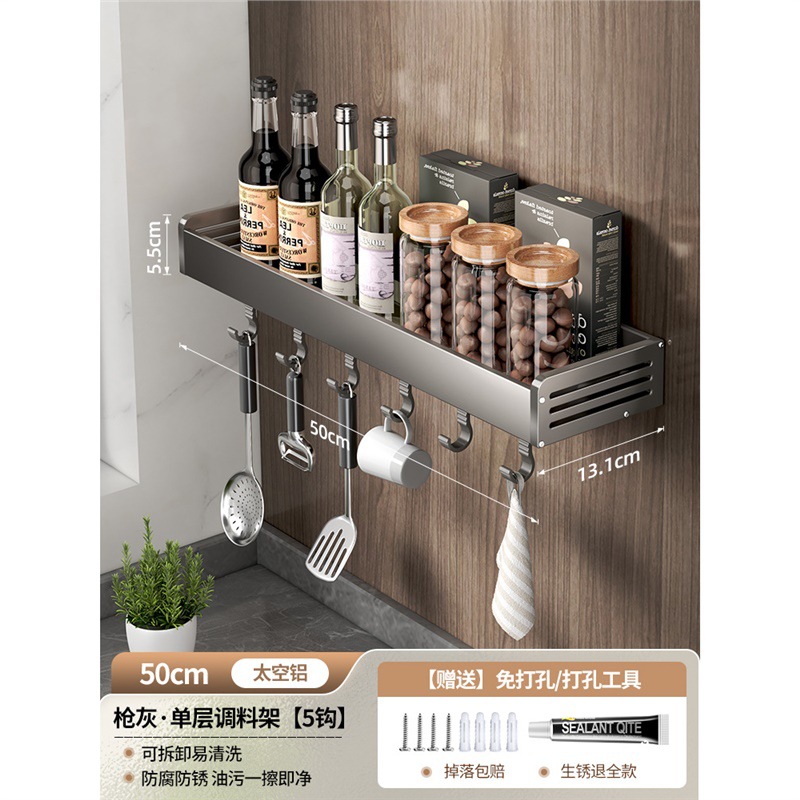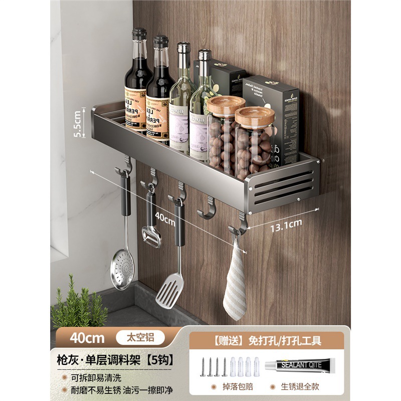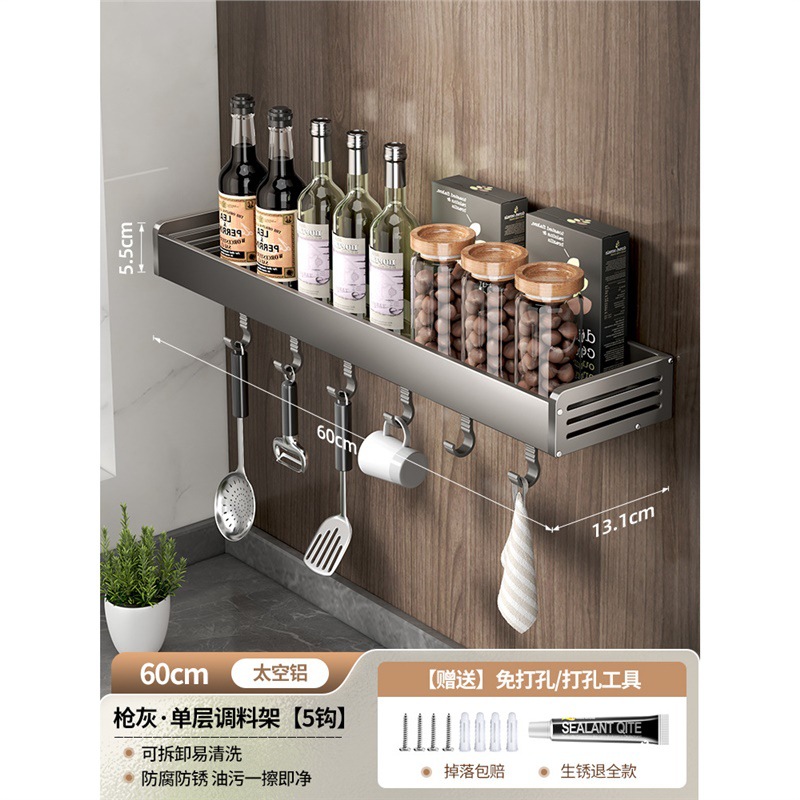 회색 주방 수납 선반 벽걸이형 무타공 조미료 용품 다용도 칼걸이 다기능 수납 선반