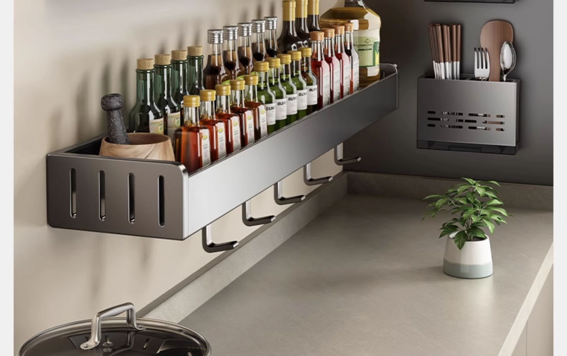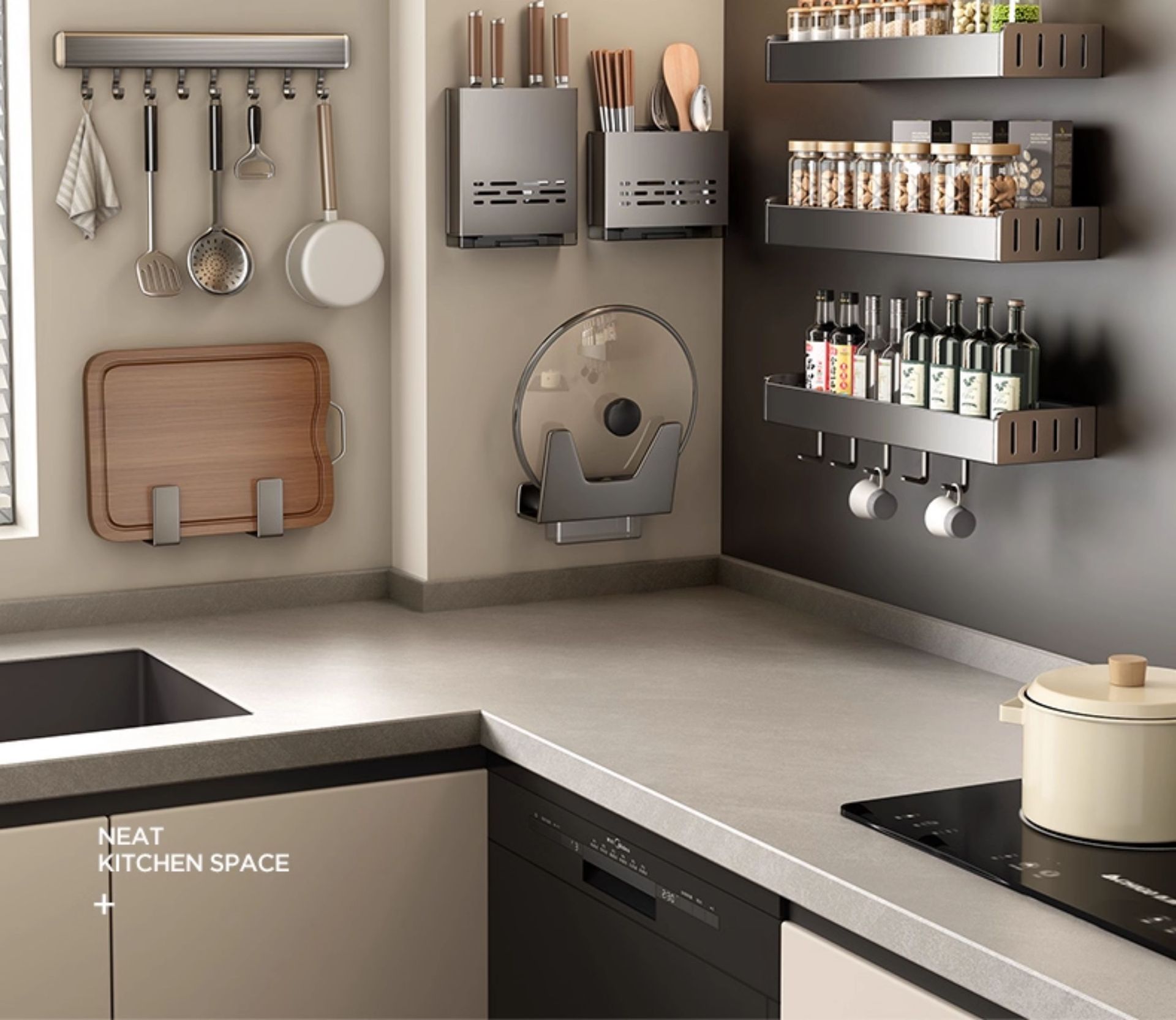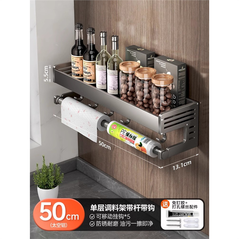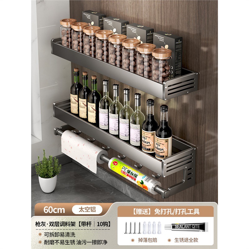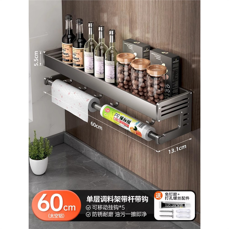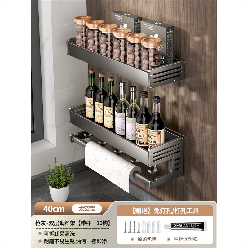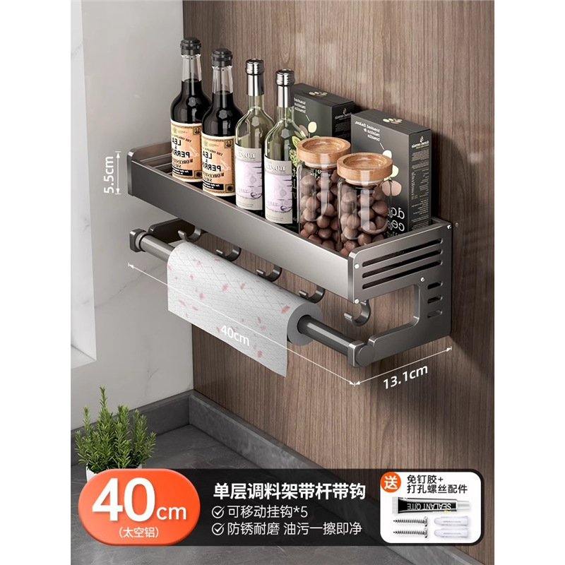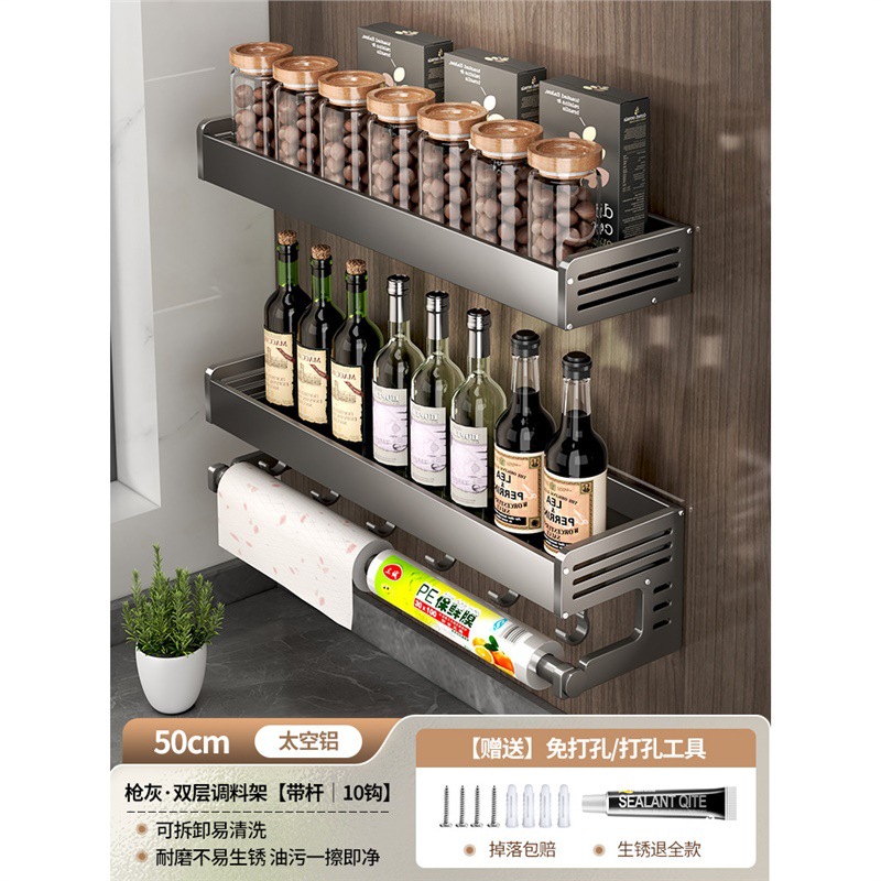 회색 주방 수납 선반 벽걸이형 무타공 조미료 용품 다용도 칼걸이 다기능 수납 선반
