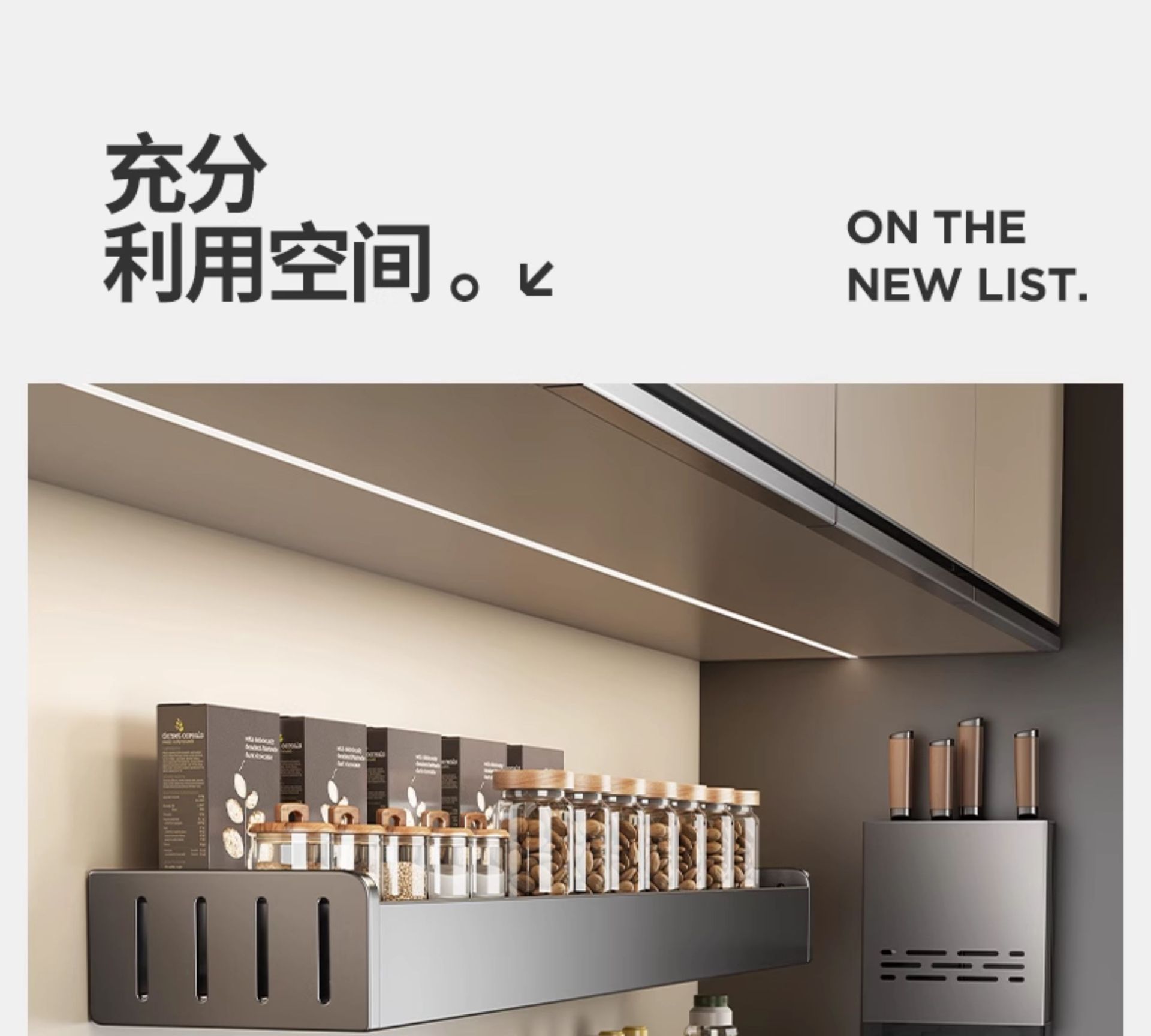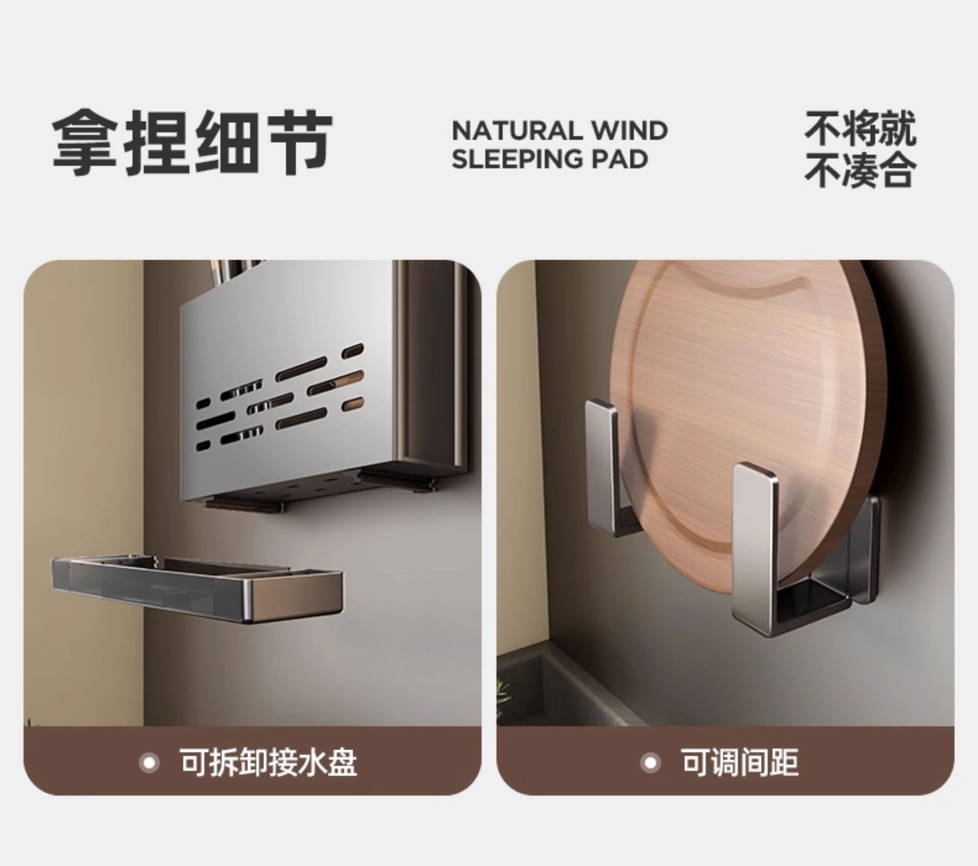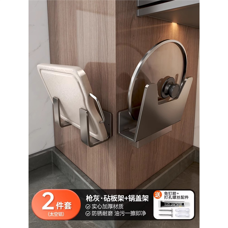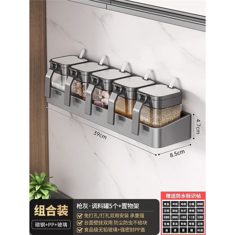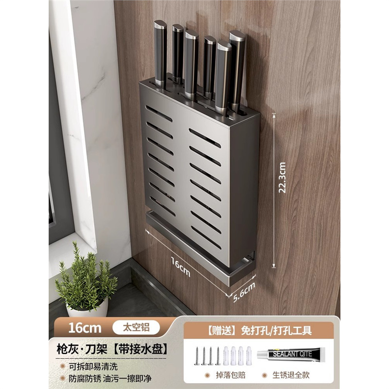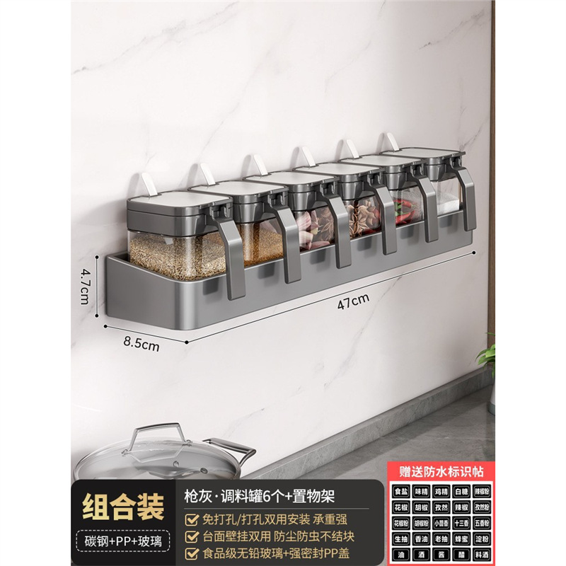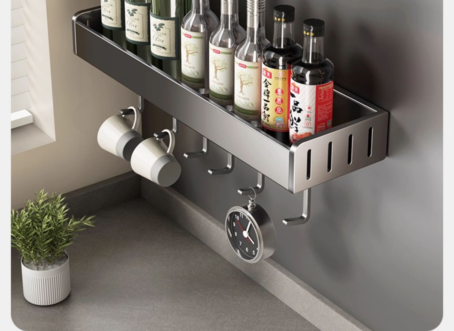 회색 주방 수납 선반 벽걸이형 무타공 조미료 용품 다용도 칼걸이 다기능 수납 선반