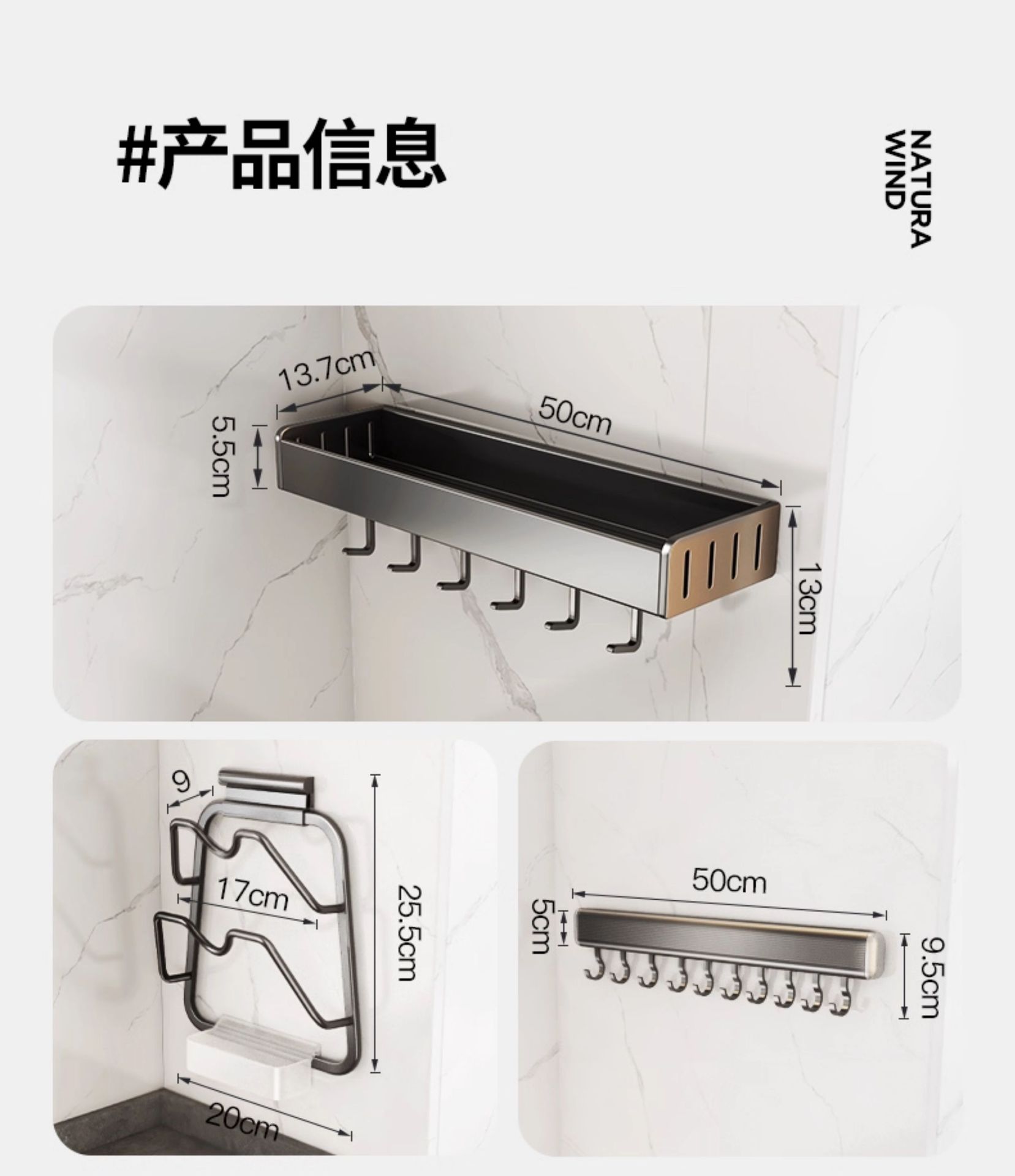 회색 주방 수납 선반 벽걸이형 무타공 조미료 용품 다용도 칼걸이 다기능 수납 선반스토어 가기