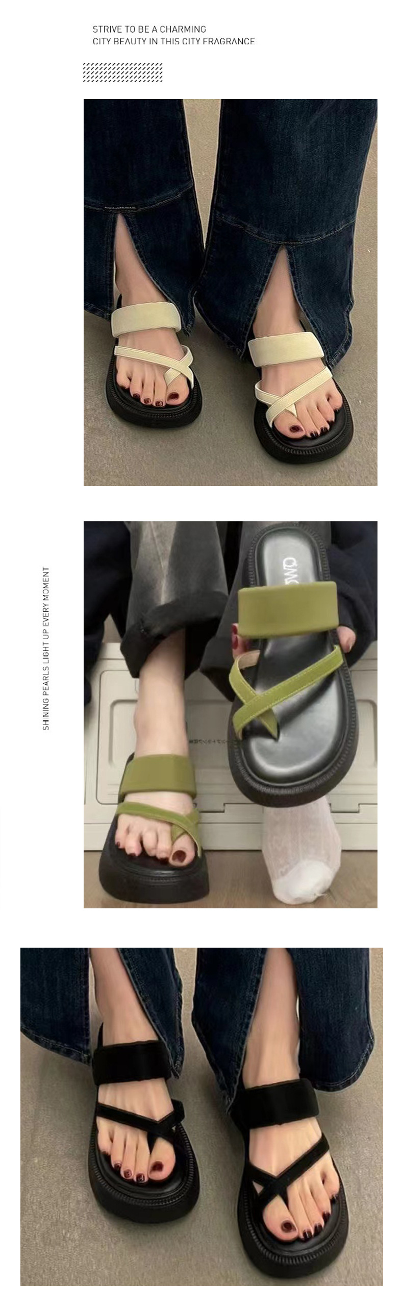 유행 캐주얼 플립 플롭스 여성의 새로운 도착 덩이 느낌 올 매치 소프트 하단 미끄럼 방지 비치 플립 플롭스 외부 착용 플립 플롭스토어 가기