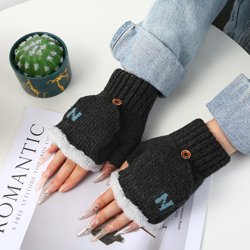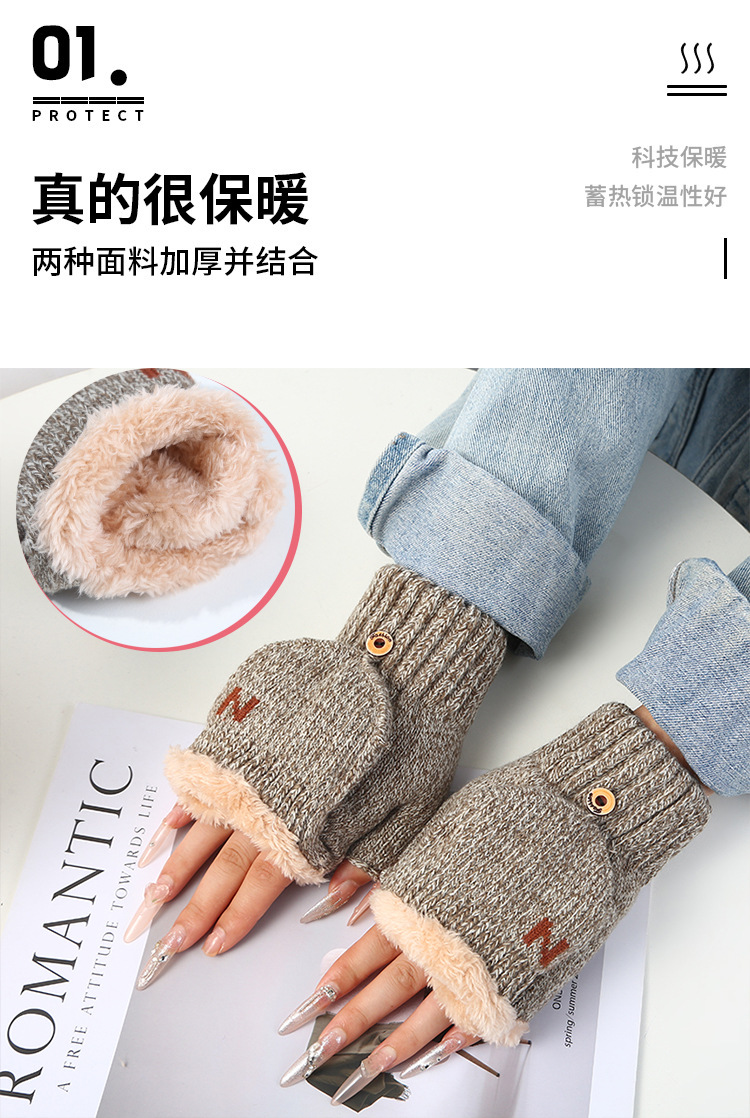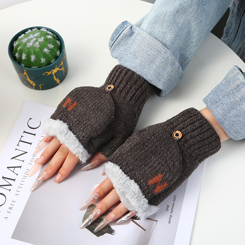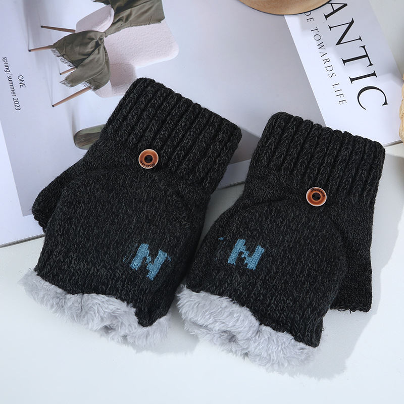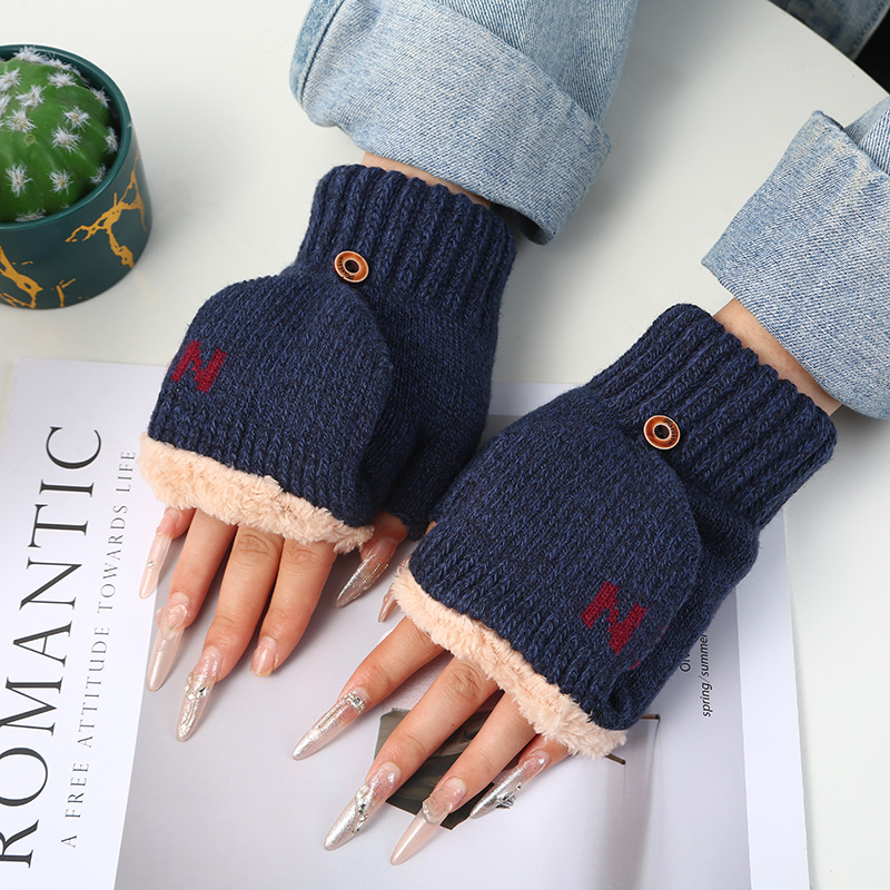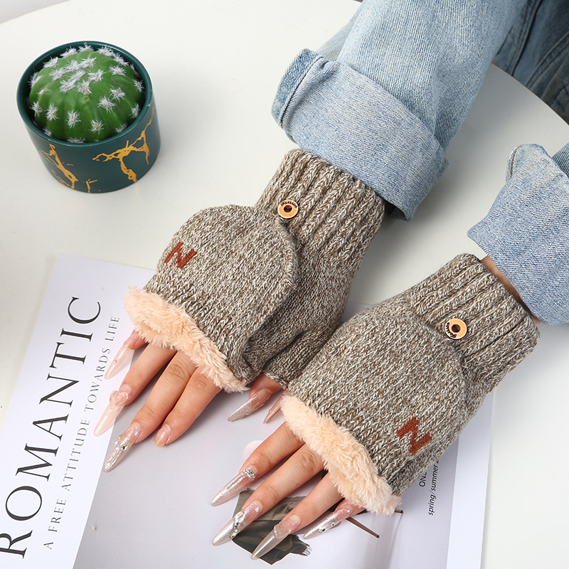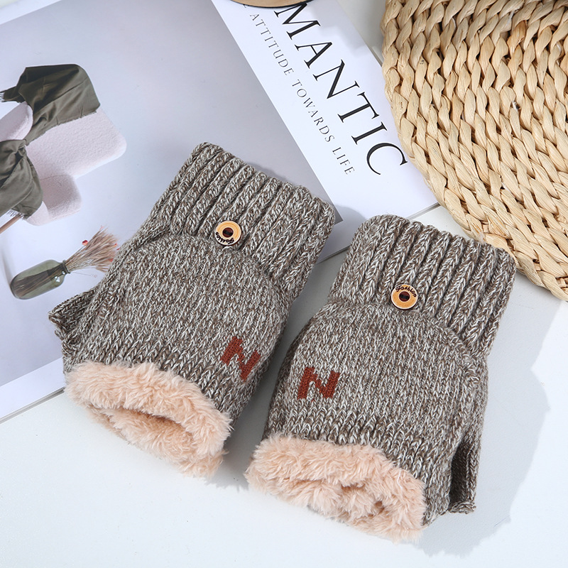 남녀공용 플립업 장갑, N자, 가을 겨울 양털 안감, 두꺼운 보온 방한, 손가락 노출형 니트, 원피스 배송, 플러스 벨벳