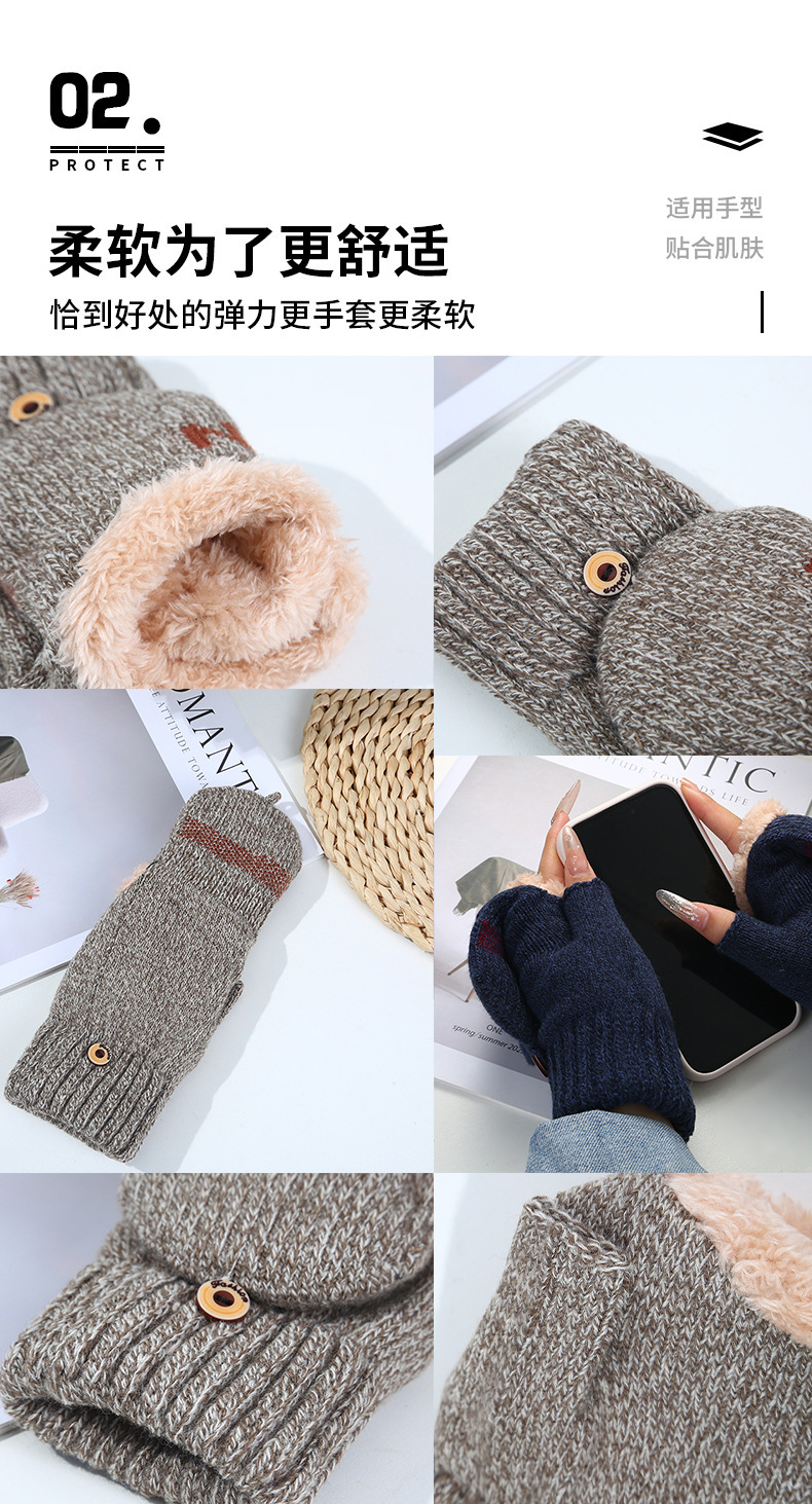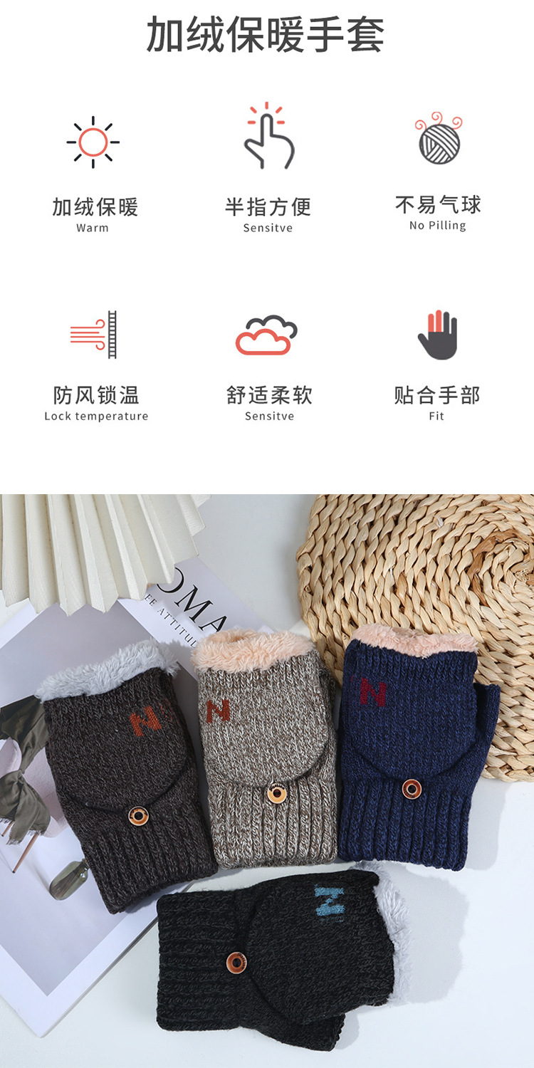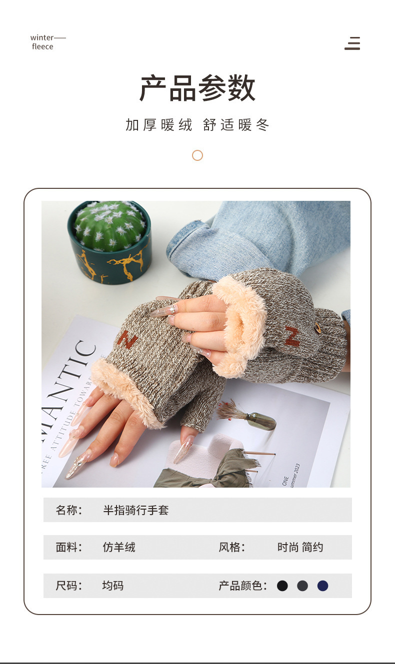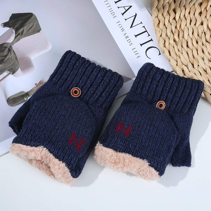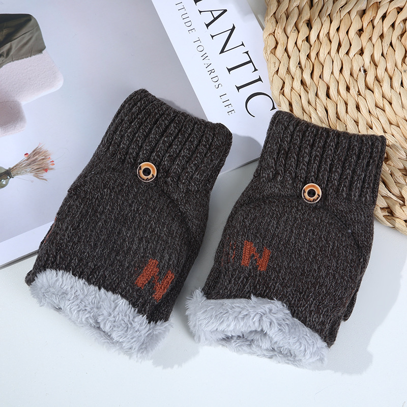 남녀공용 플립업 장갑, N자, 가을 겨울 양털 안감, 두꺼운 보온 방한, 손가락 노출형 니트, 원피스 배송, 플러스 벨벳