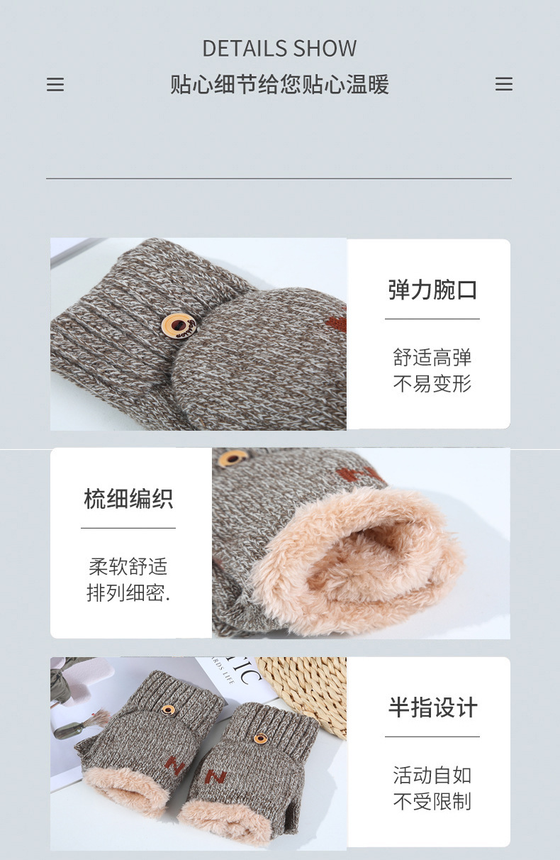 남녀공용 플립업 장갑, N자, 가을 겨울 양털 안감, 두꺼운 보온 방한, 손가락 노출형 니트, 원피스 배송, 플러스 벨벳스토어 가기