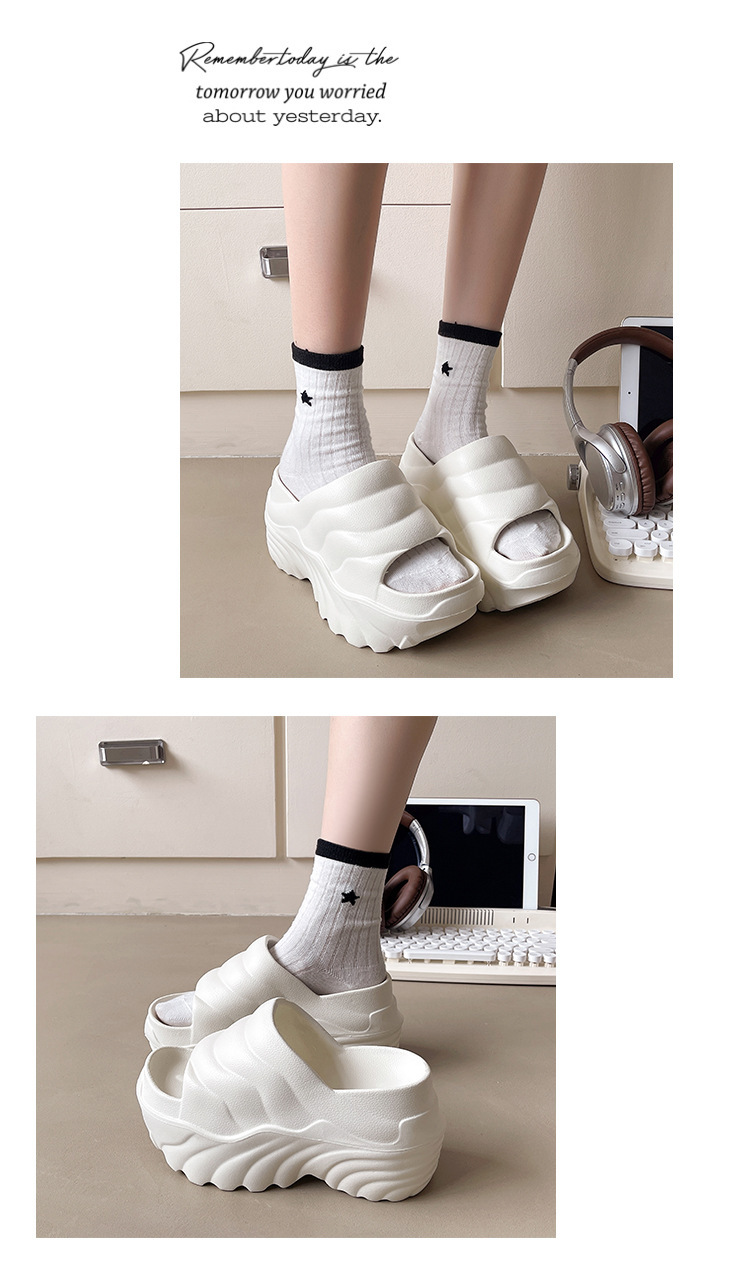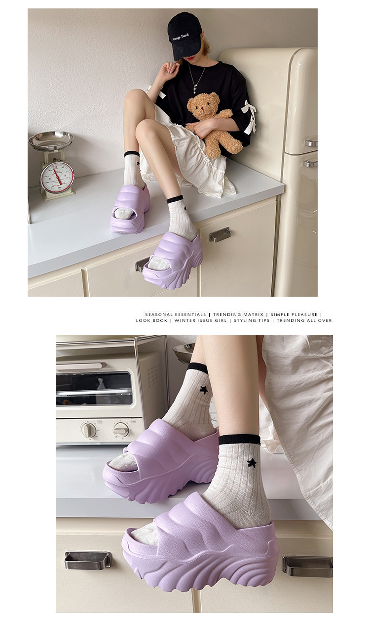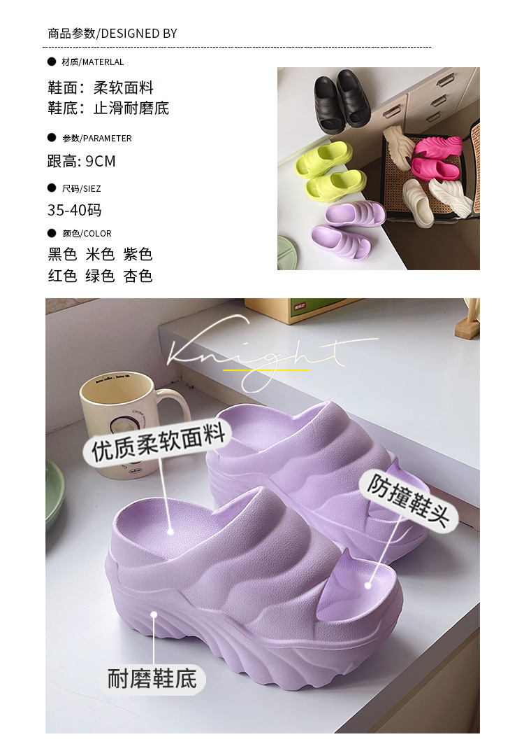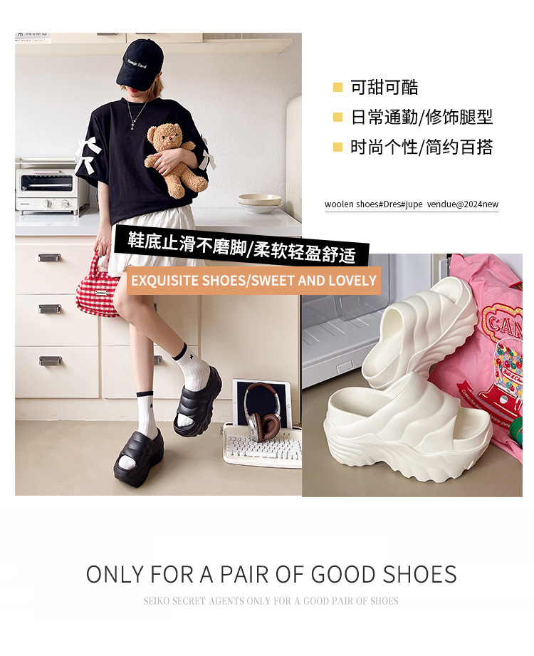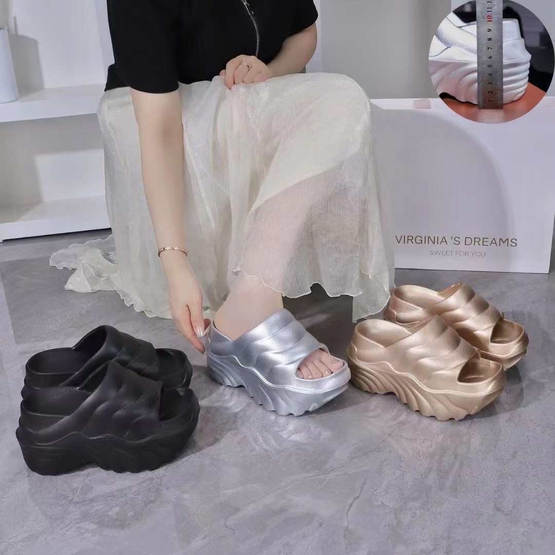 2024년 신상 하이힐 슬리퍼, 패셔너블한 두꺼운 밑창, 인터넷 인기 10cm 키높이 여성용 슬리퍼, 즉시 배송 가능, INS 유럽풍스토어 가기