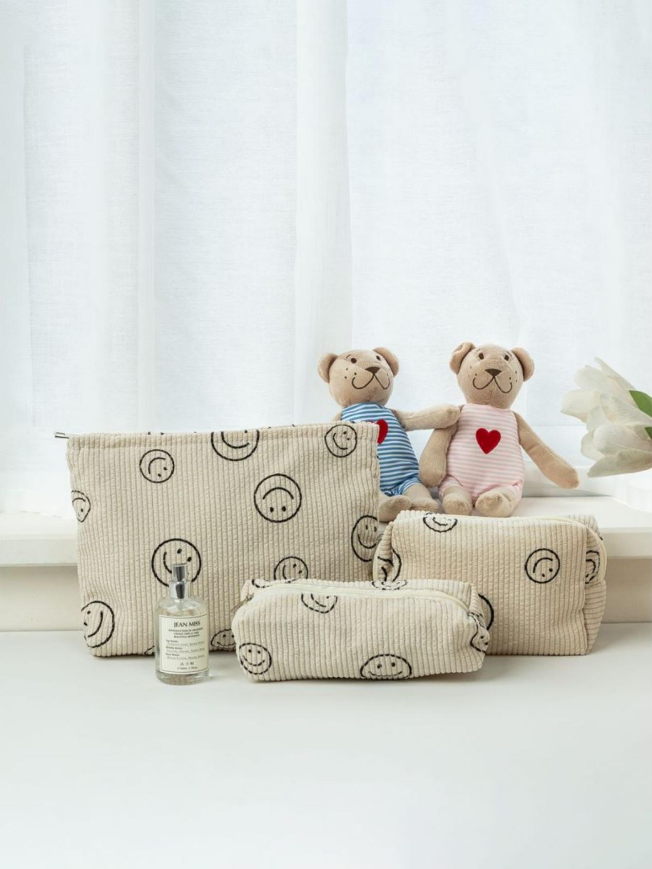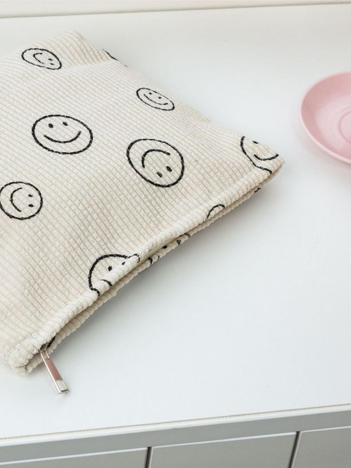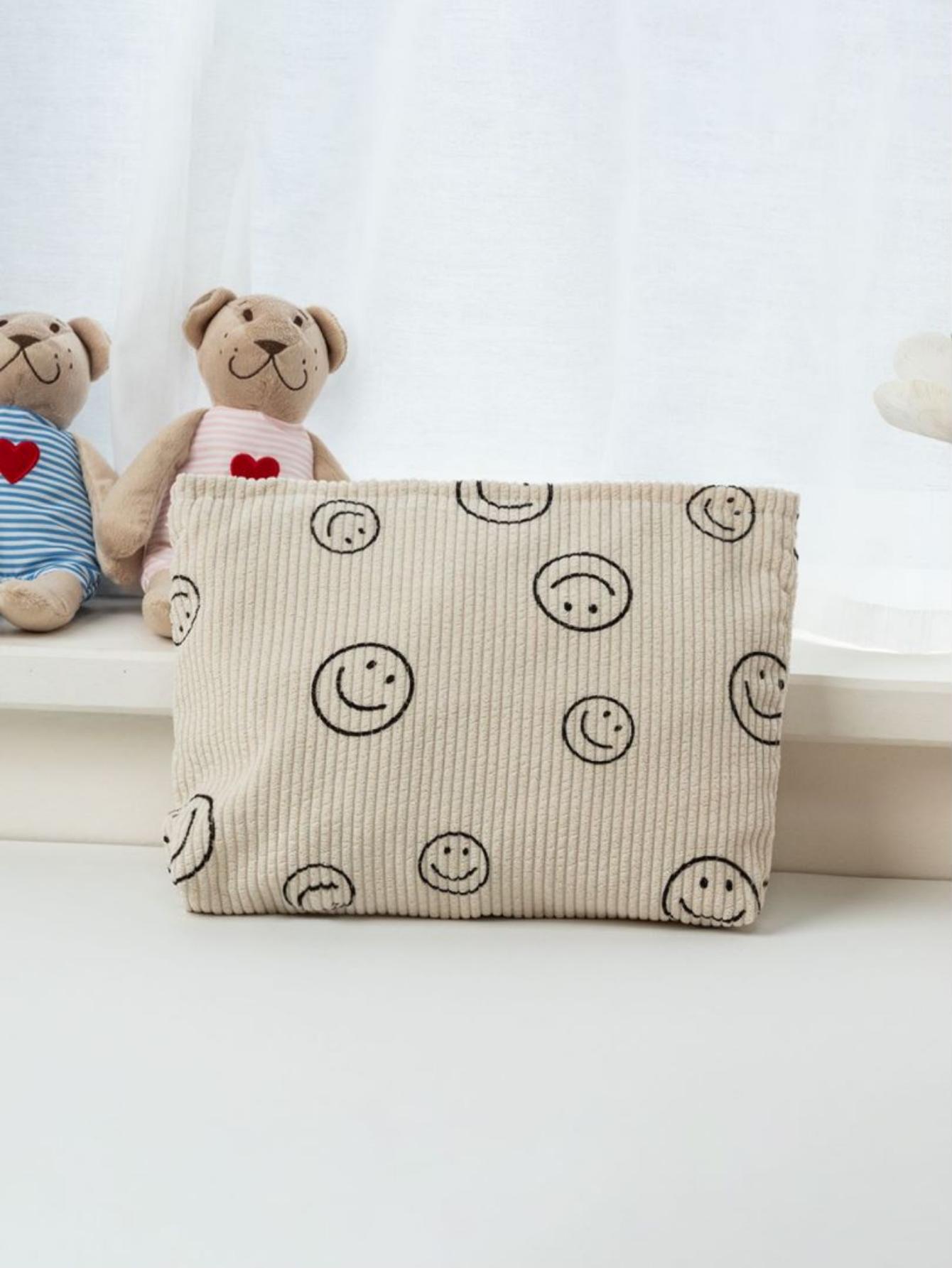 아마존 국경 핫 코듀로이 화장품 가방 스마일리 스토리지 백 워시 백 키 백 지갑 클러치 백