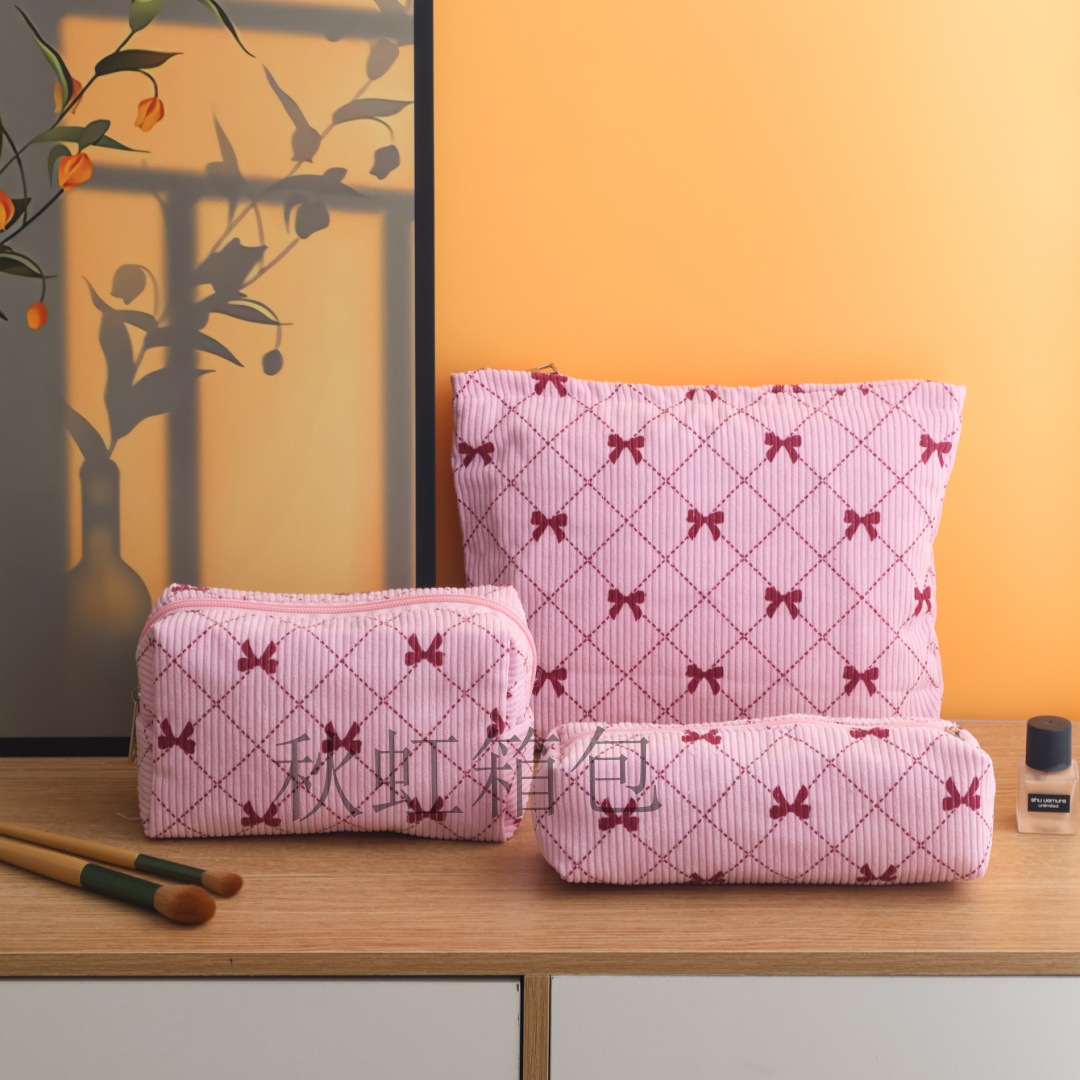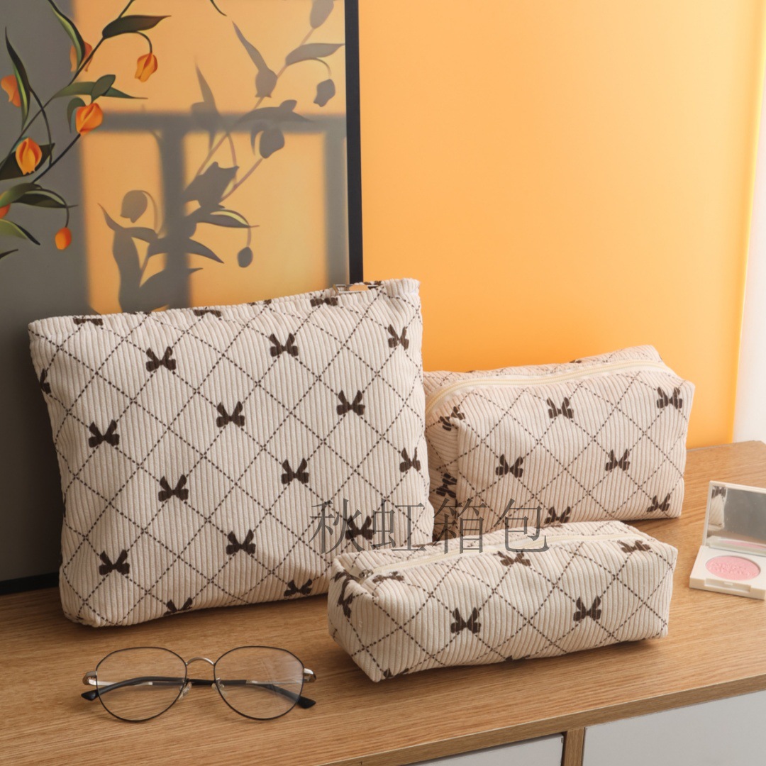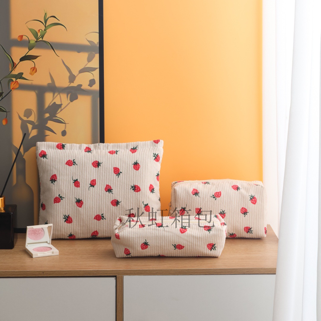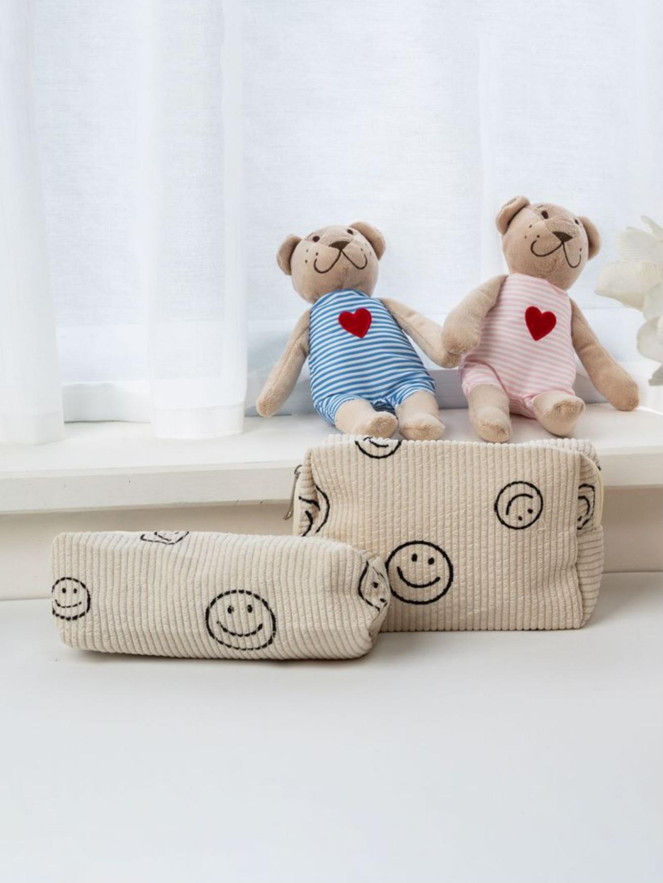 아마존 국경 핫 코듀로이 화장품 가방 스마일리 스토리지 백 워시 백 키 백 지갑 클러치 백