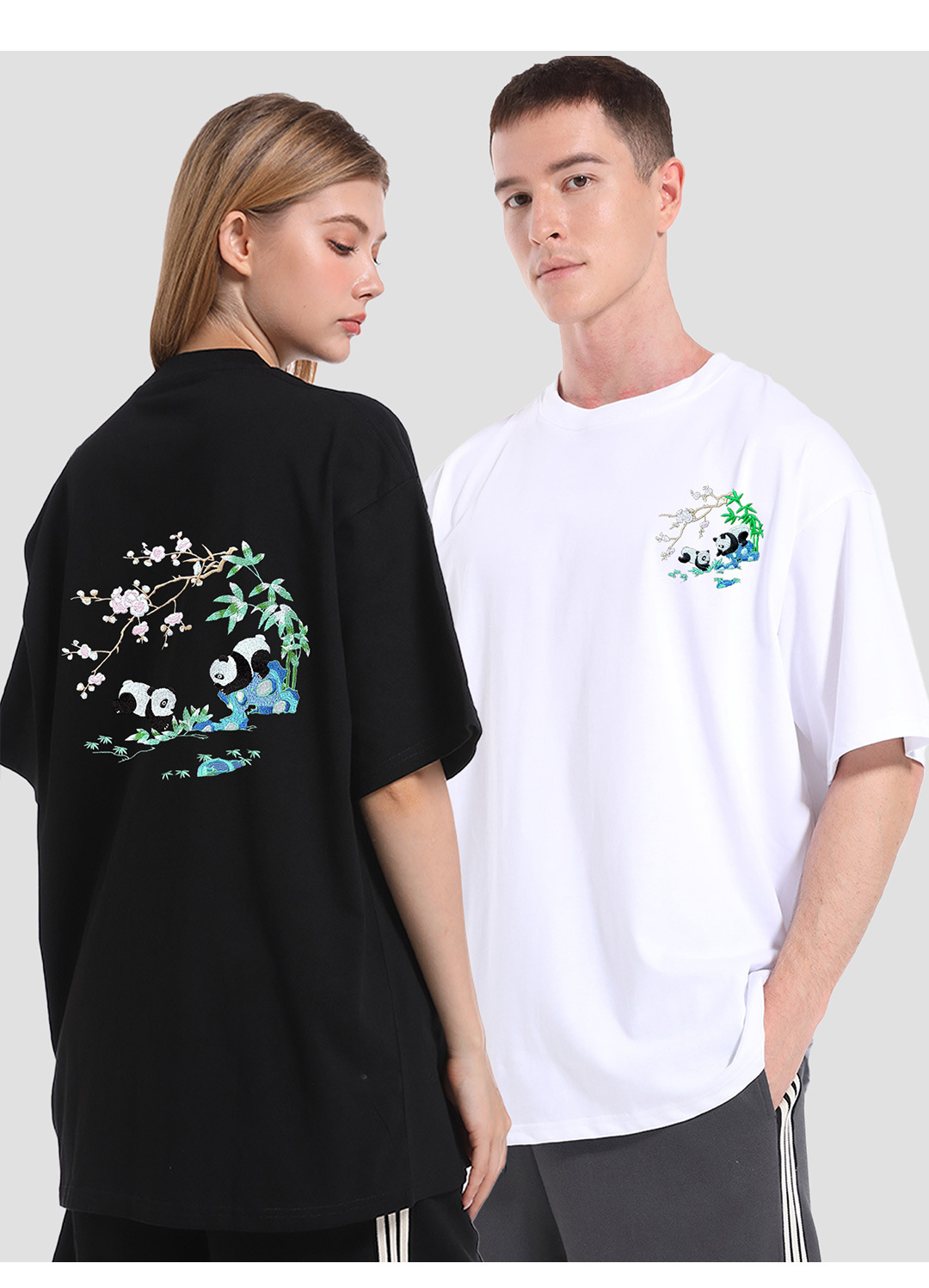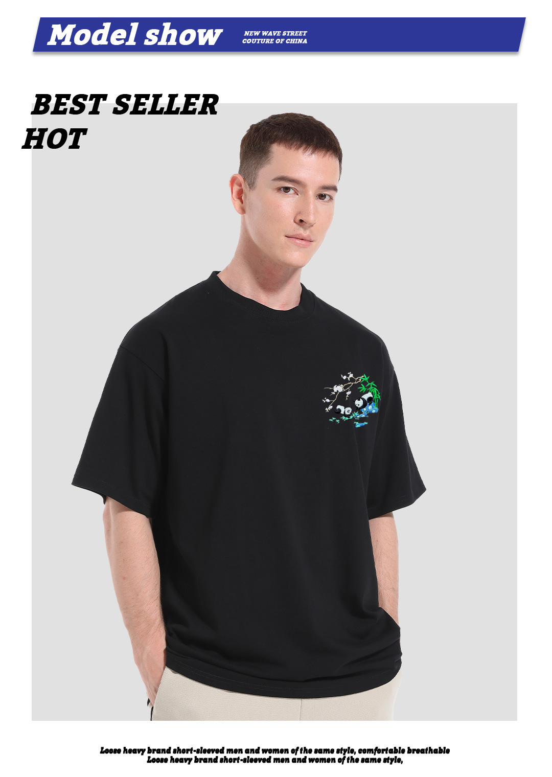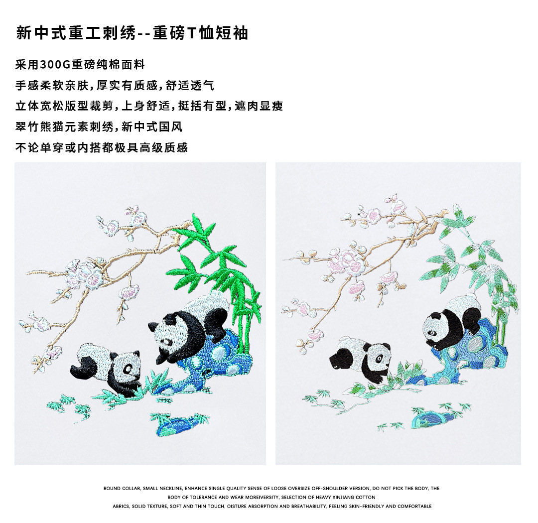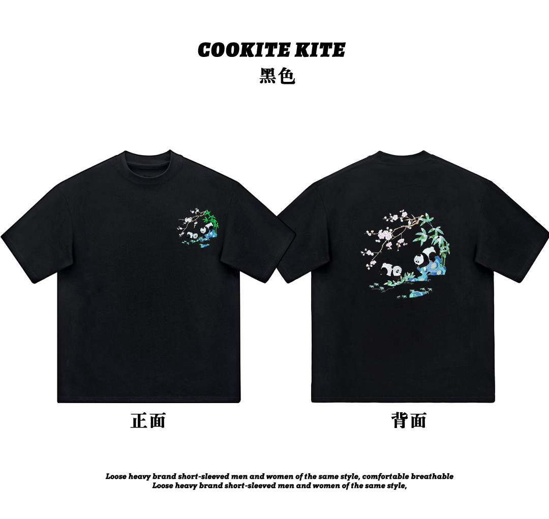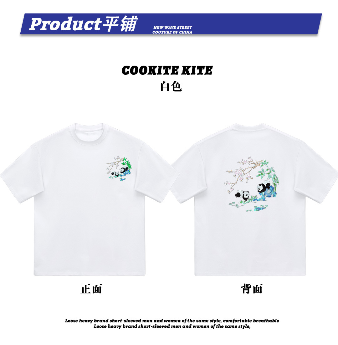 KITE 남성복 여름 신상 중국풍 팬더 자수 루즈핏 오버사이즈 트렌디 라운드넥 만능 반팔 티셔츠