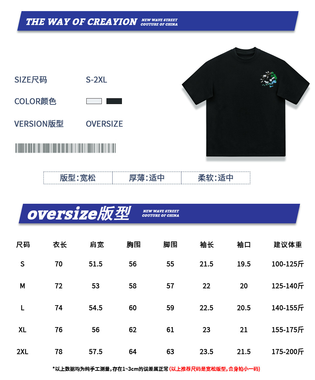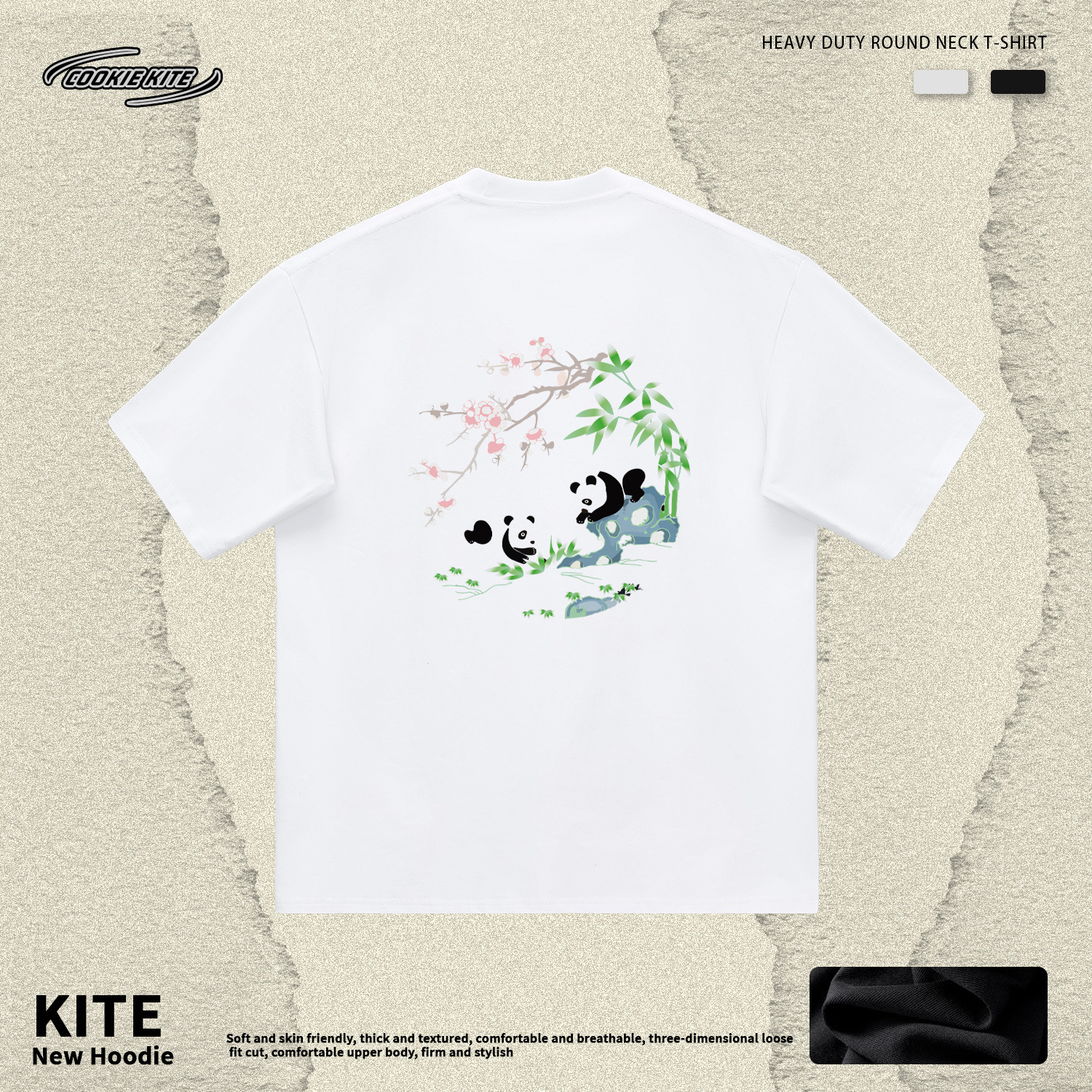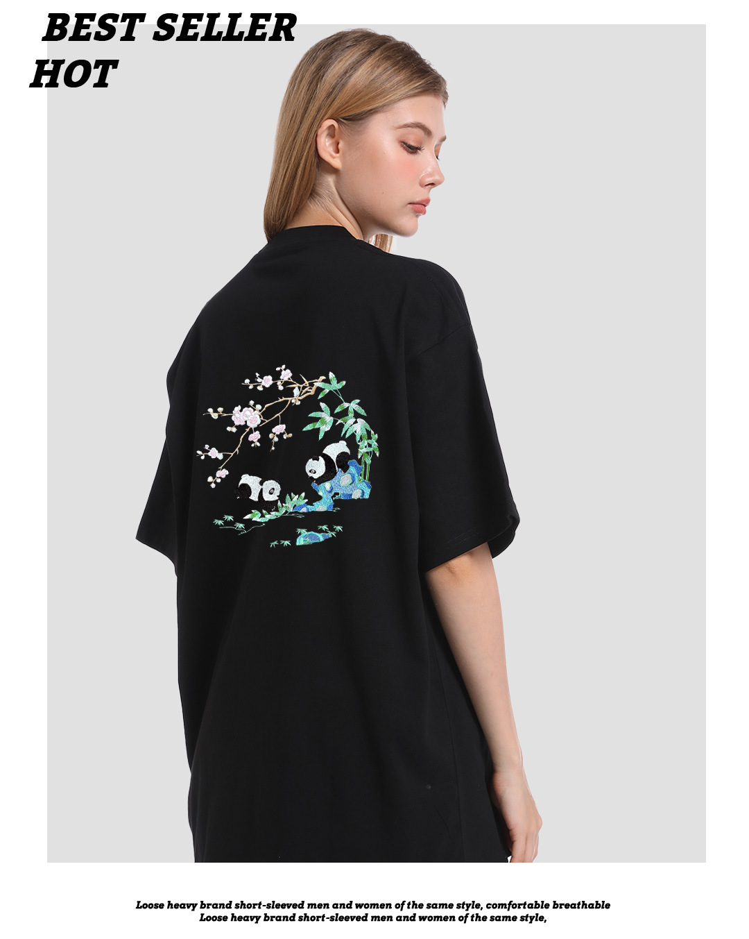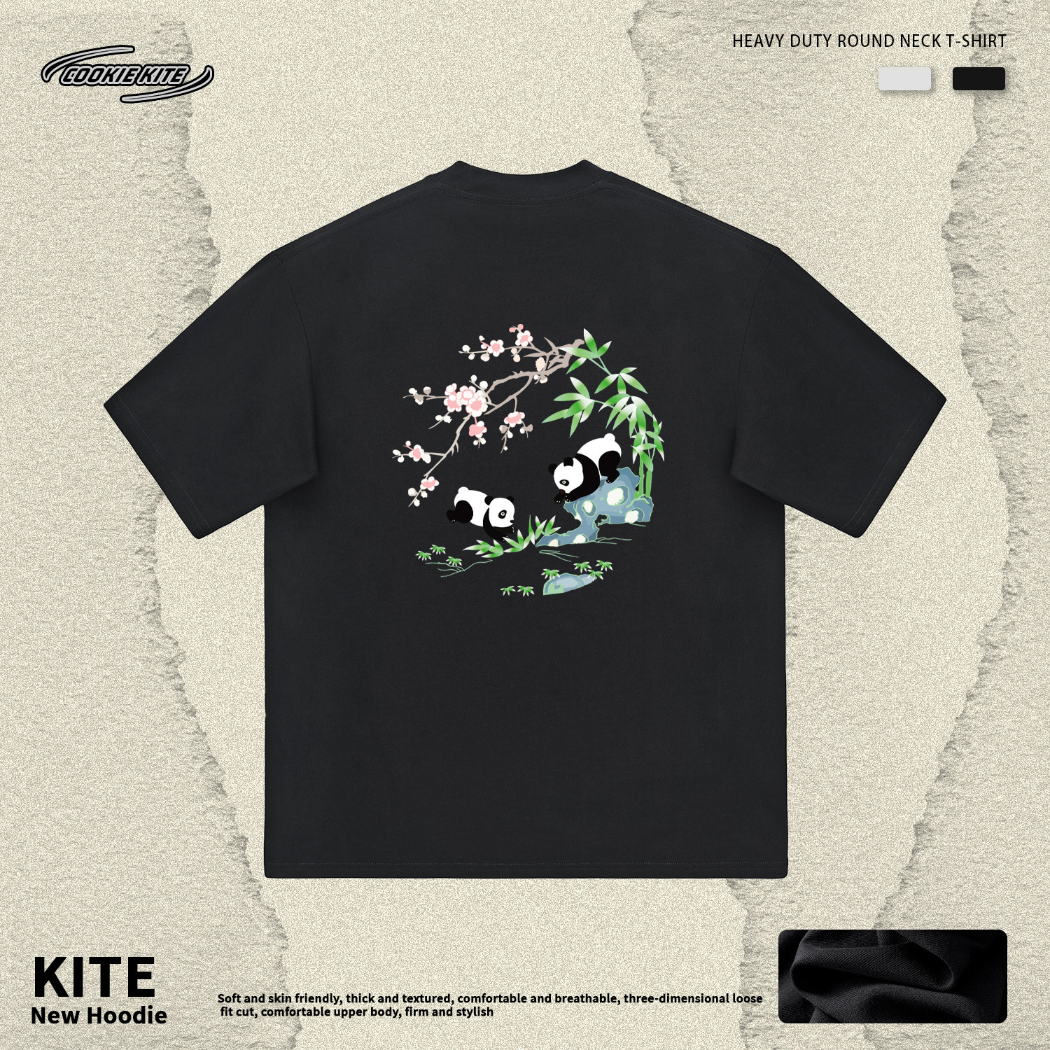 KITE 남성복 여름 신상 중국풍 팬더 자수 루즈핏 오버사이즈 트렌디 라운드넥 만능 반팔 티셔츠