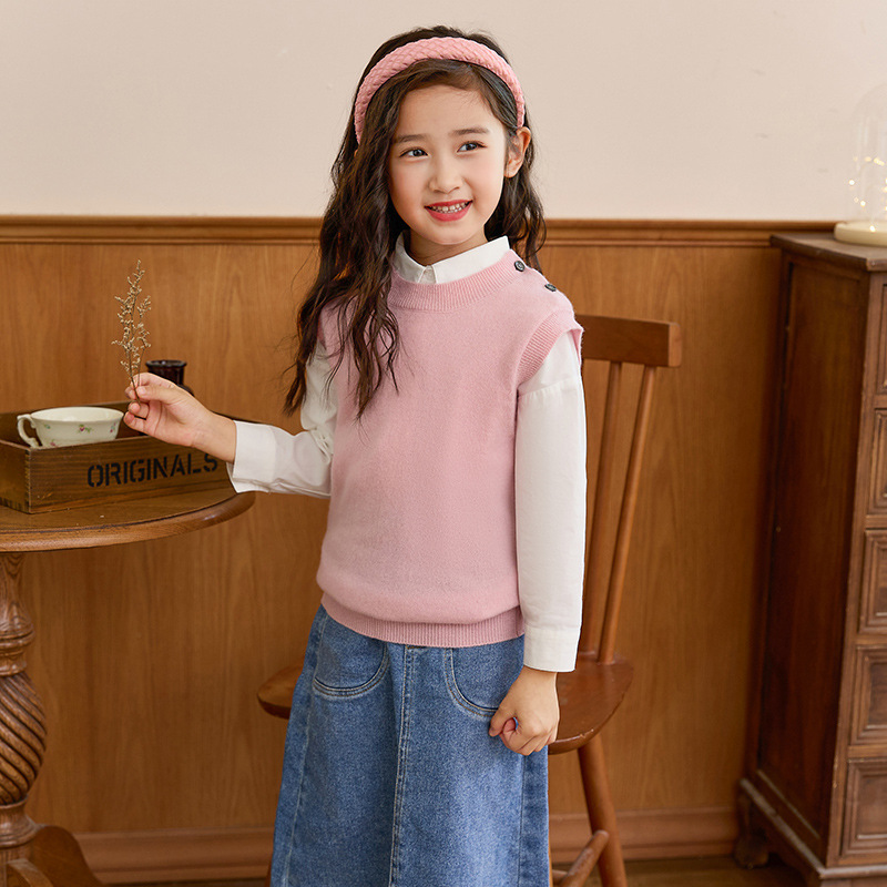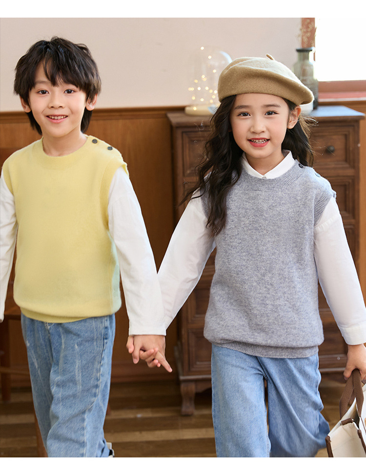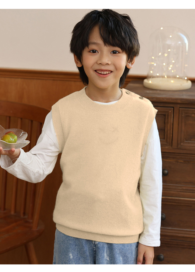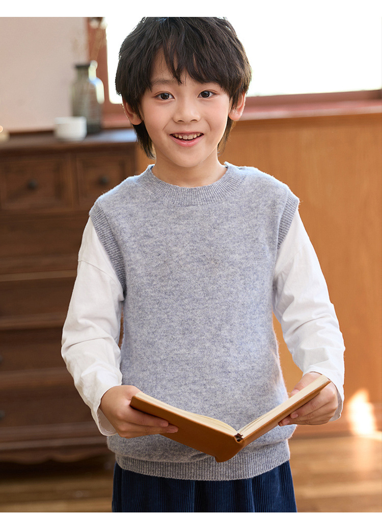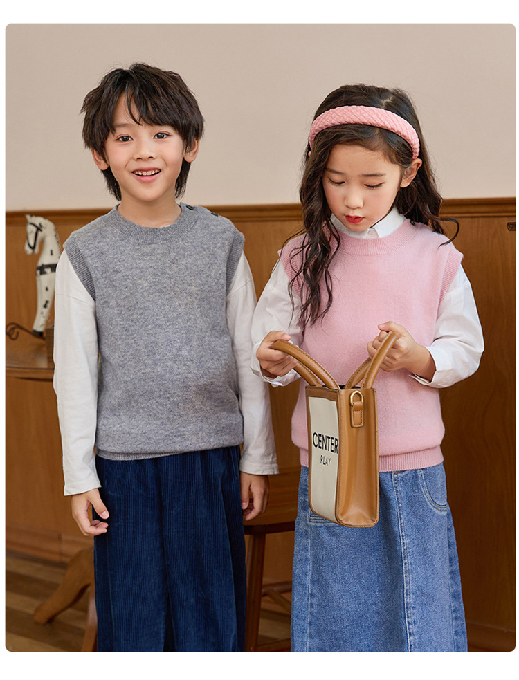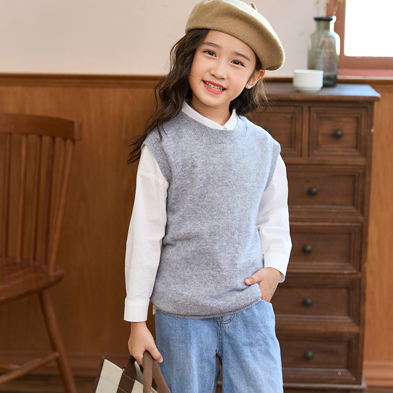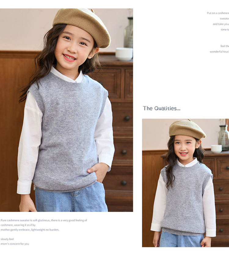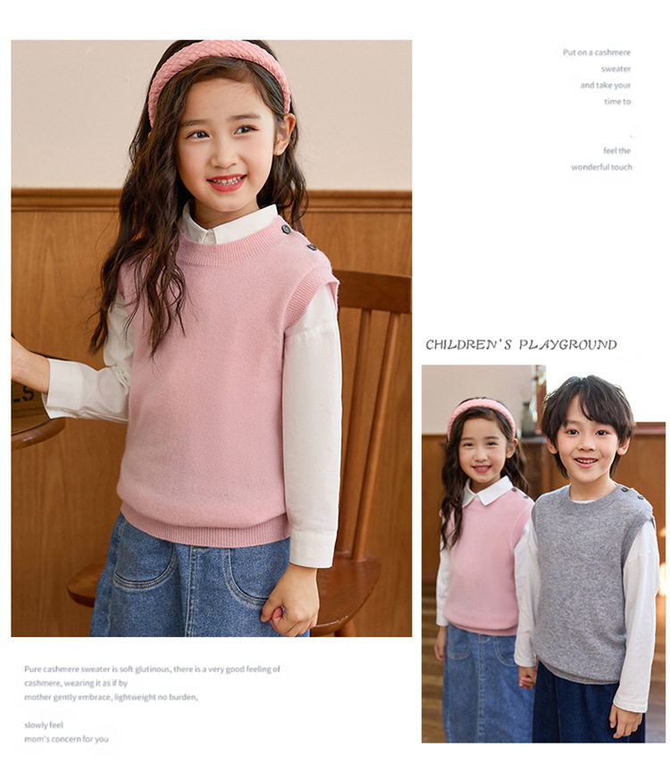 2024 가을과 겨울 새로운 어린이 조끼 소년 소녀 풀오버 퓨어 울 조끼 민소매 조끼 아기 캐시미어 조끼