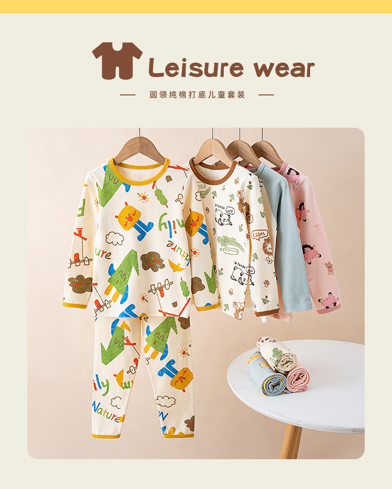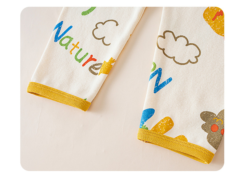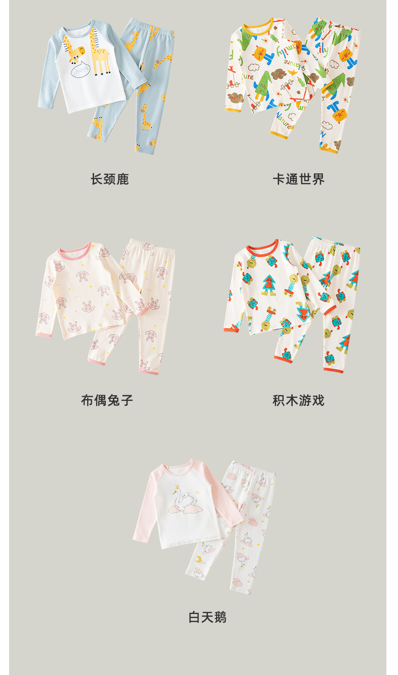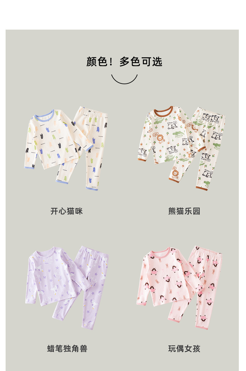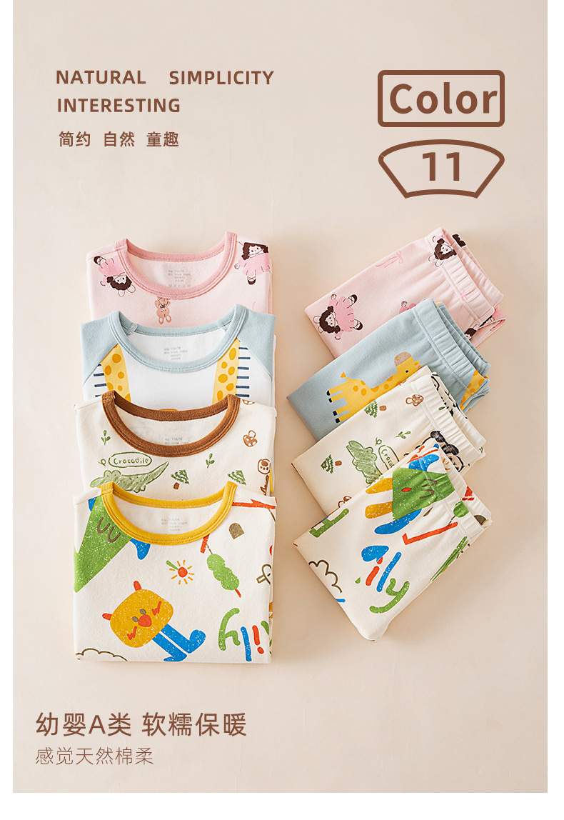 봄가을 아동용 A급 순면 가을옷, 가을바지, 중소아용 두꺼운 기모 아동복, 따뜻한 여아용 긴팔 잠옷