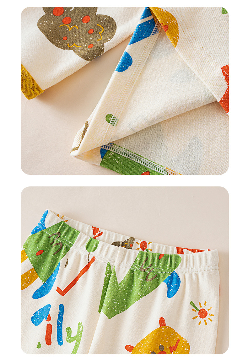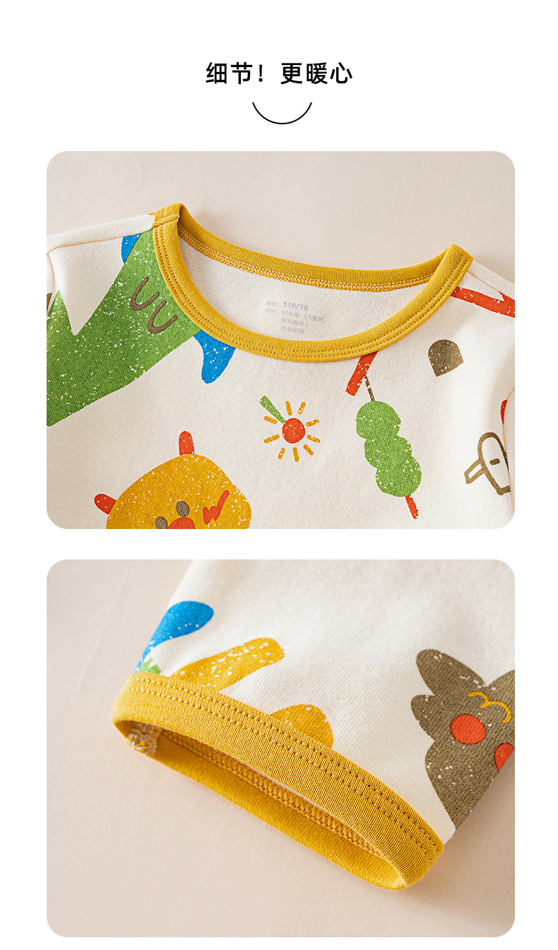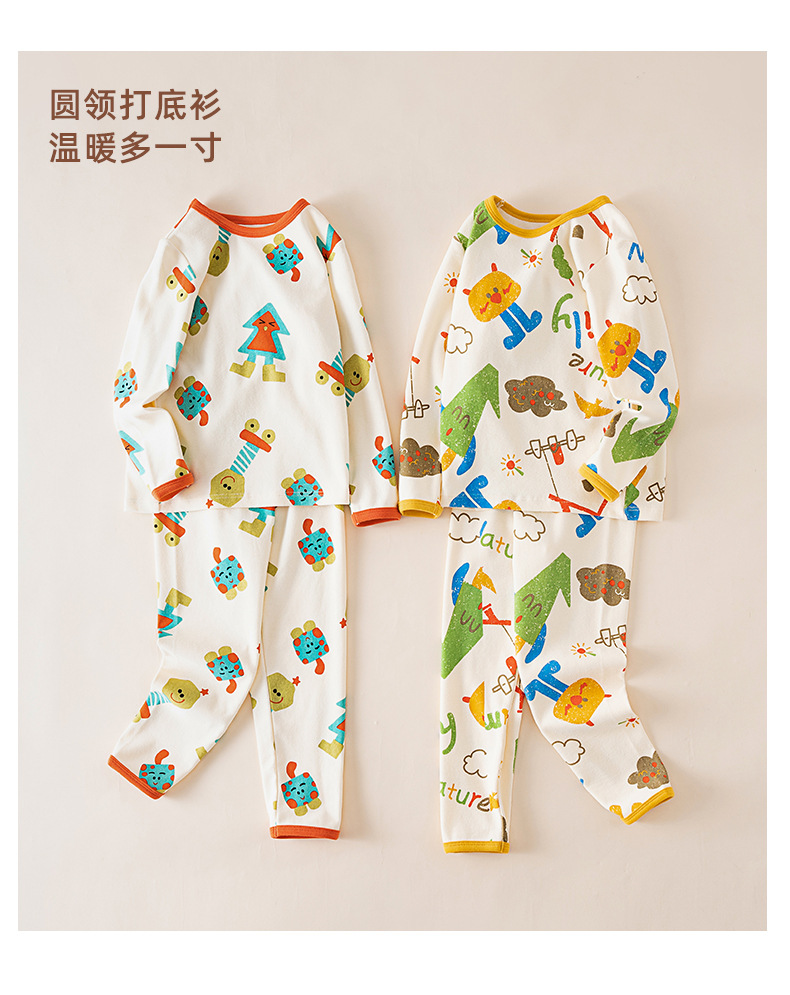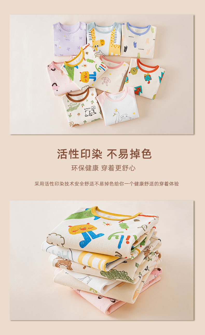 봄가을 아동용 A급 순면 가을옷, 가을바지, 중소아용 두꺼운 기모 아동복, 따뜻한 여아용 긴팔 잠옷