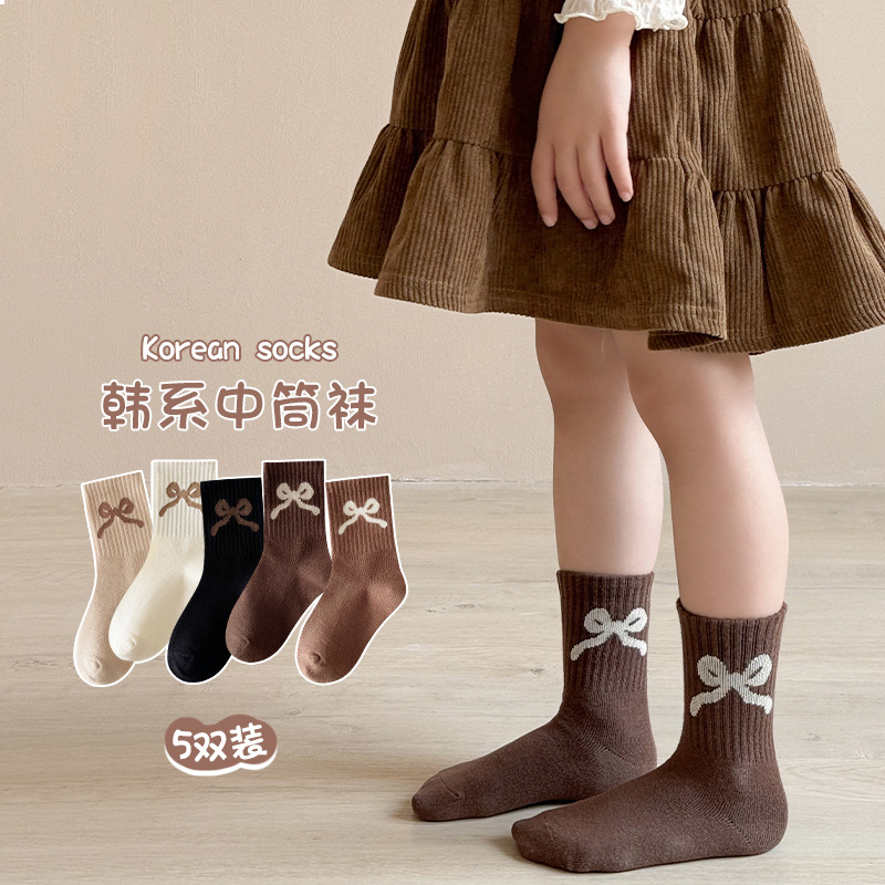 여자 면 양말 가을과 겨울 새 다크 브라운 활 중간 튜브 양말 스포츠 어린이 양말 달콤한 귀여운 공주 학생 양말스토어 가기