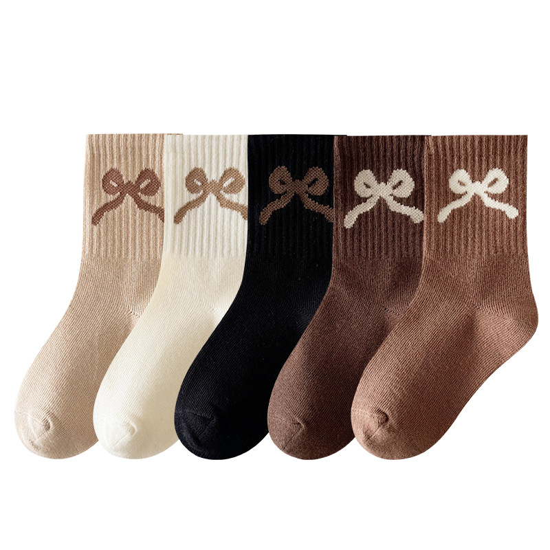 여자 면 양말 가을과 겨울 새 다크 브라운 활 중간 튜브 양말 스포츠 어린이 양말 달콤한 귀여운 공주 학생 양말
