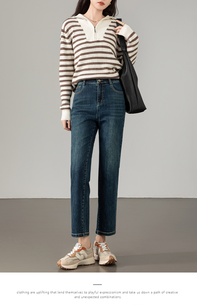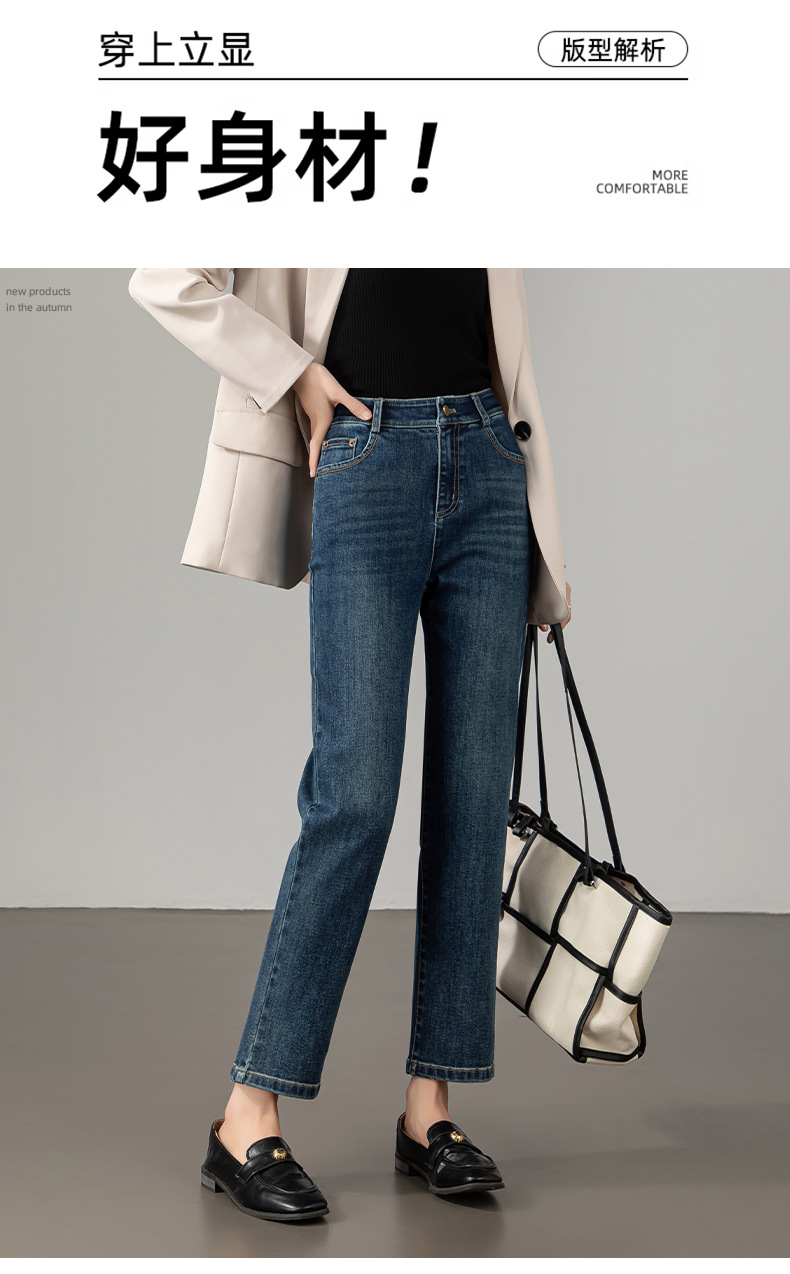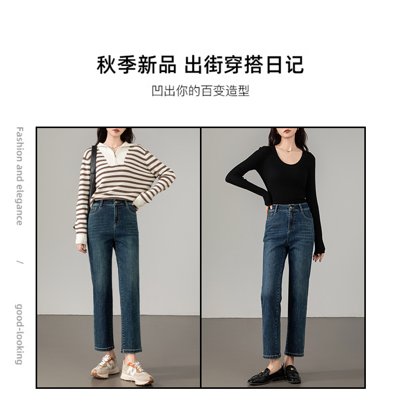 연기 튜브 청바지 여성의 느슨한 슬리밍 2024 가을 새로운 높은 허리 작은 유행 올 매치 스트레이트 바지스토어 가기