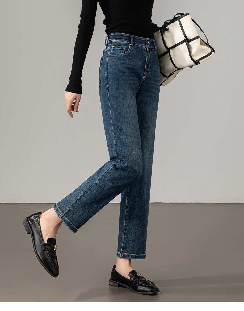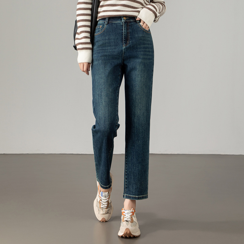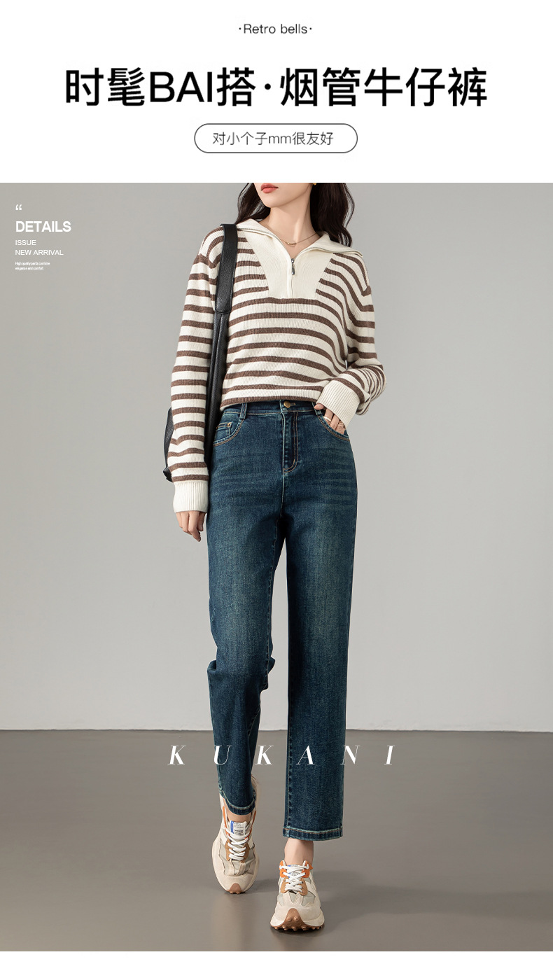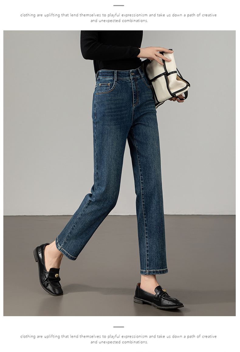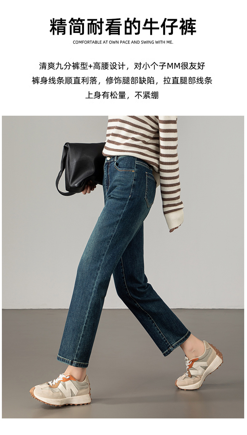 연기 튜브 청바지 여성의 느슨한 슬리밍 2024 가을 새로운 높은 허리 작은 유행 올 매치 스트레이트 바지