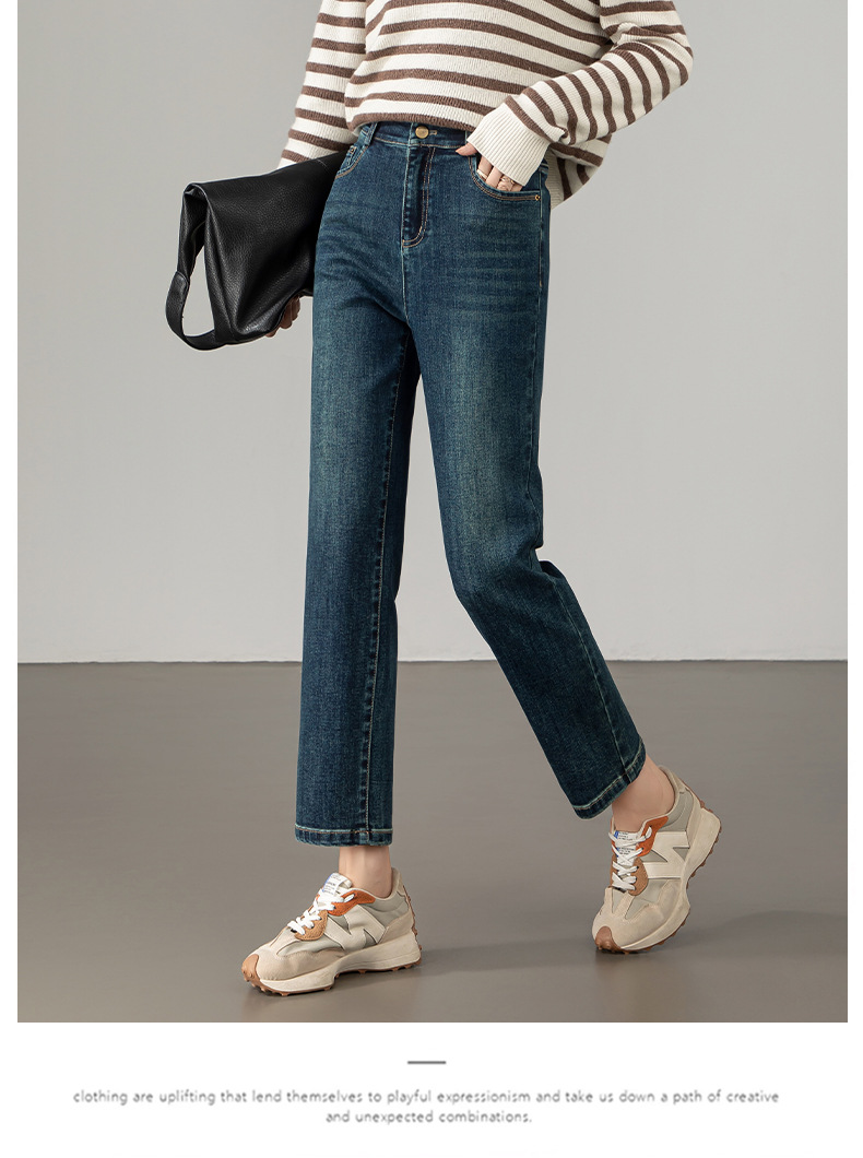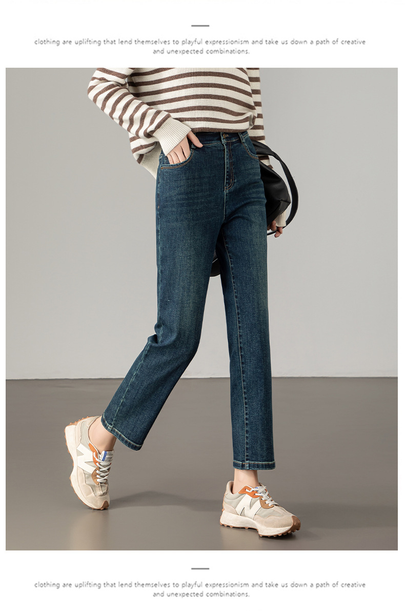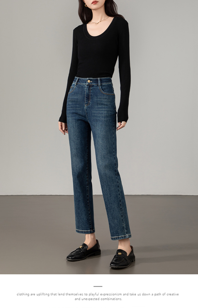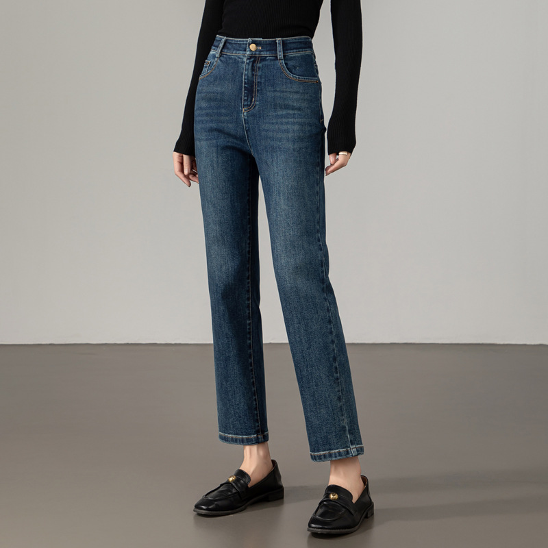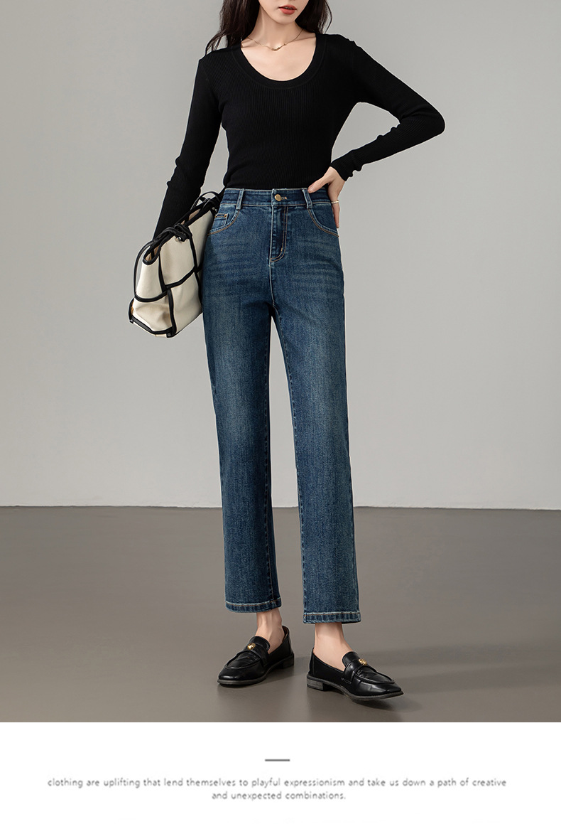 연기 튜브 청바지 여성의 느슨한 슬리밍 2024 가을 새로운 높은 허리 작은 유행 올 매치 스트레이트 바지