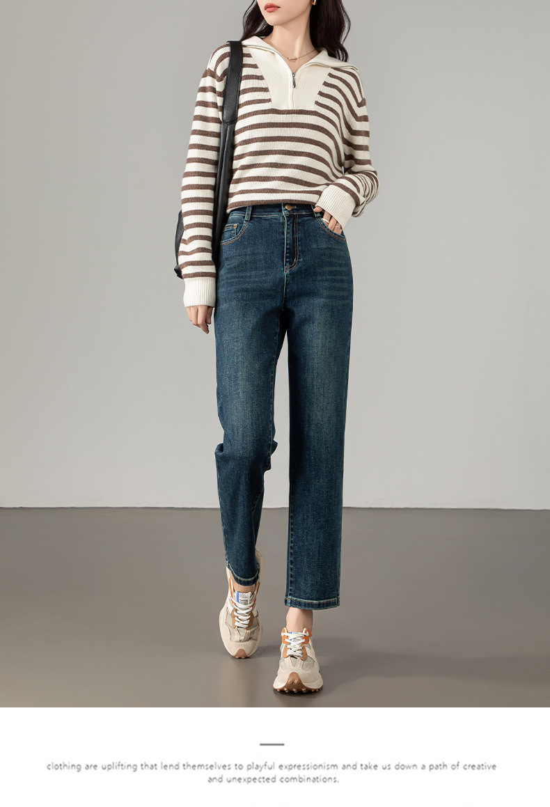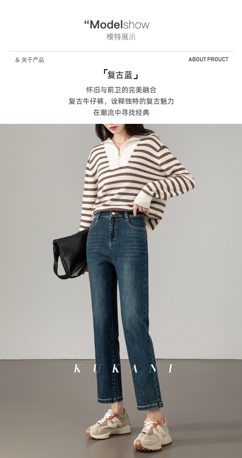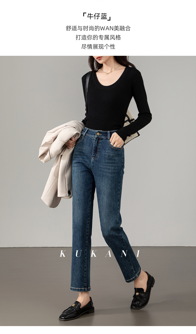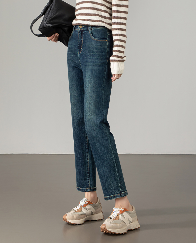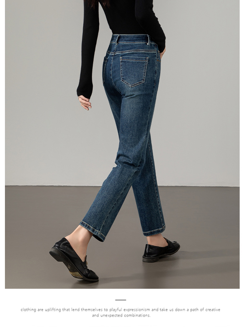 연기 튜브 청바지 여성의 느슨한 슬리밍 2024 가을 새로운 높은 허리 작은 유행 올 매치 스트레이트 바지