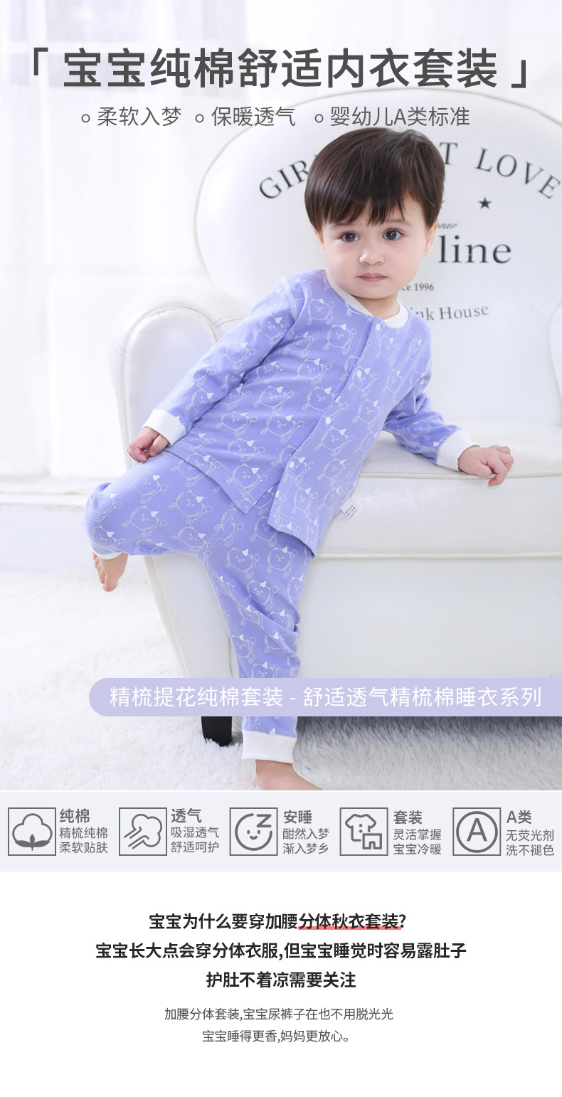 아기 가을 옷 세트 봄과 가을 순면 잠자는 옷 아기베이스 속옷 분할 긴 소매 높은 허리 배 보호 가을 겨울 옷스토어 가기