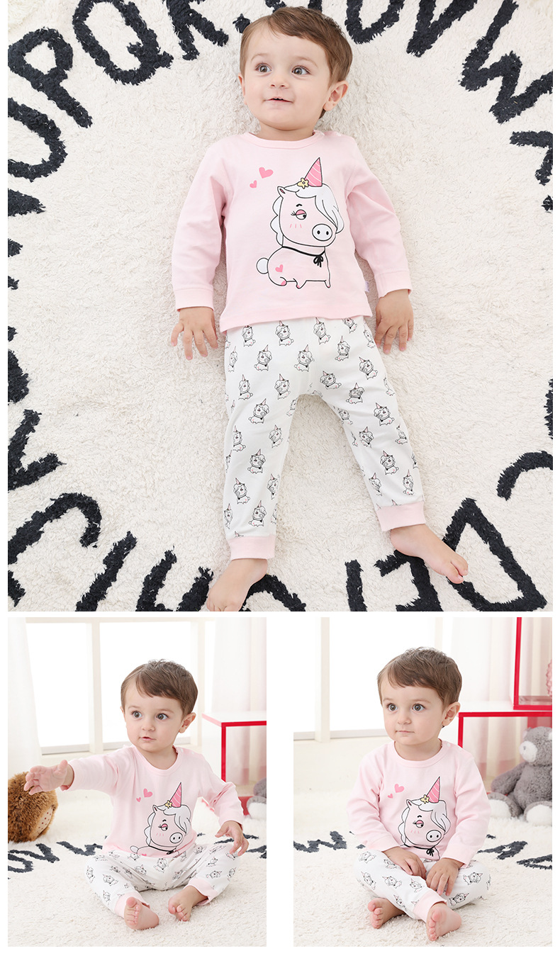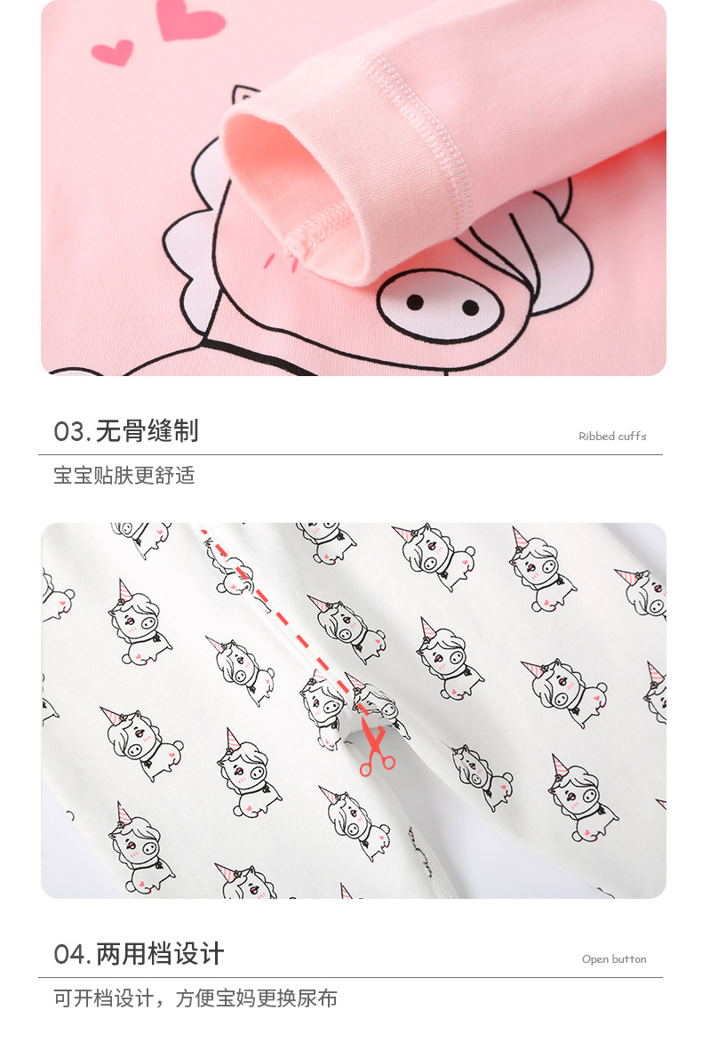 아기 가을 옷 세트 봄과 가을 순면 잠자는 옷 아기베이스 속옷 분할 긴 소매 높은 허리 배 보호 가을 겨울 옷