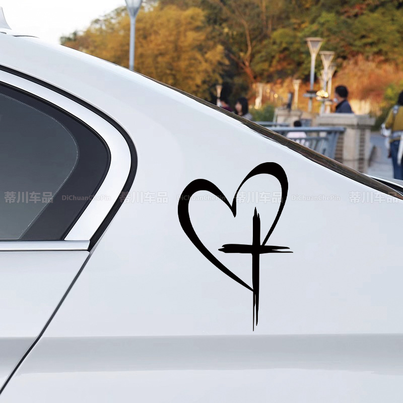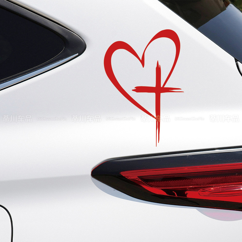 국경 간 대외 무역 자동차 스티커 사랑 크로스 창조적 인 후면 유리 장식 스티커 후면 범퍼 스티커 방수