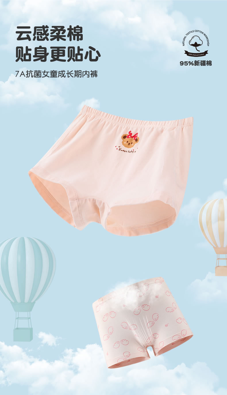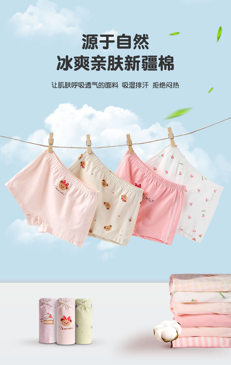 어린이 속옷 아기용 얇은 사각형 항균 팬티 순면 A급 여아용 사계절 만화 캐릭터 아동 여아용스토어 가기