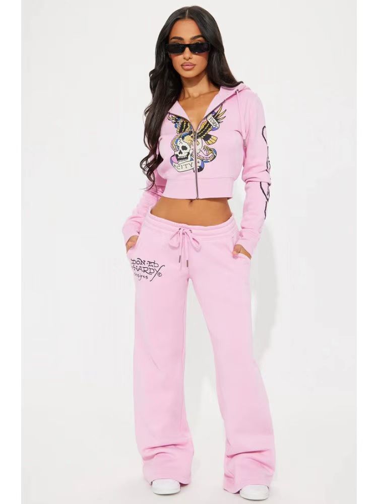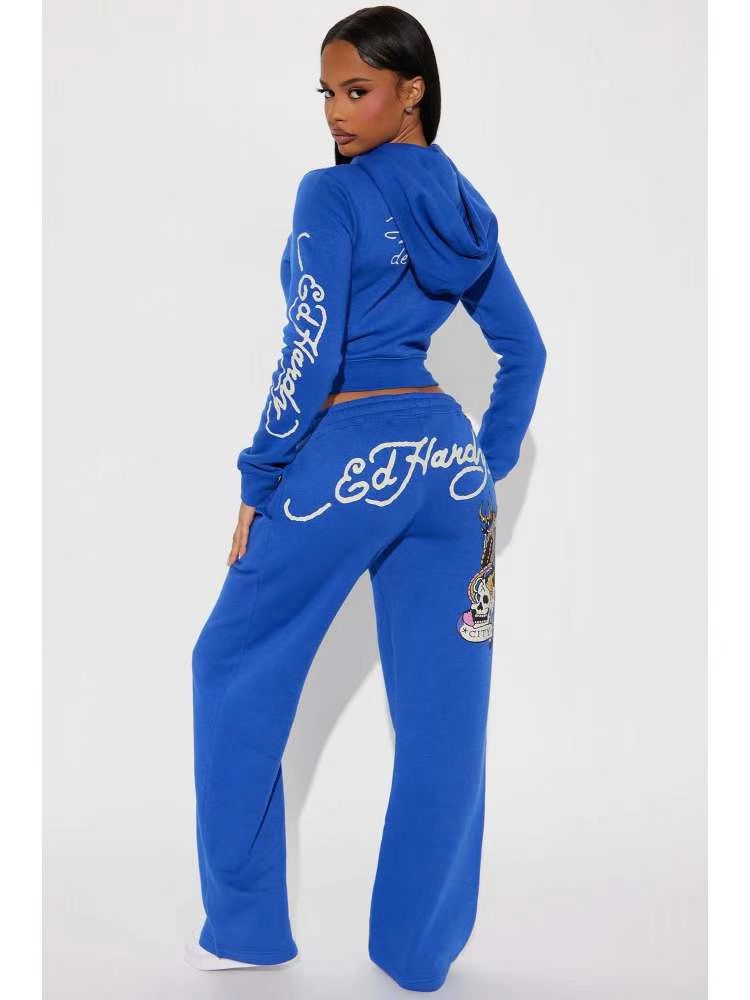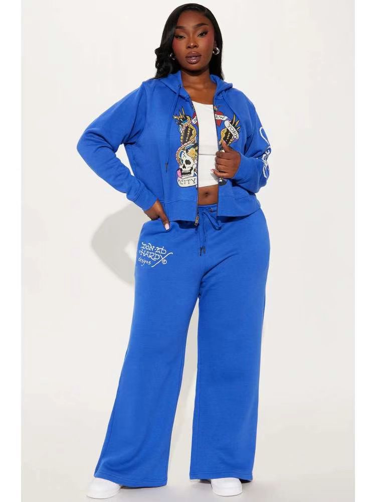 유럽과 미국의 패션 스트리트 캐주얼 편안한 페인트 지퍼 후드 포지셔닝 프린트 투피스 여성용 의류