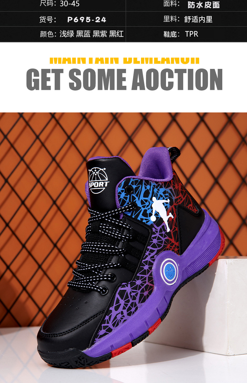가을 봄 어린이 농구 신발 방수 가죽 내마모성 바닥 중 큰 어린이 플러스 사이즈 대외 무역 소년 운동화 달리기스토어 가기