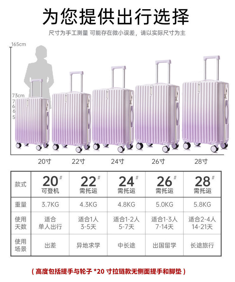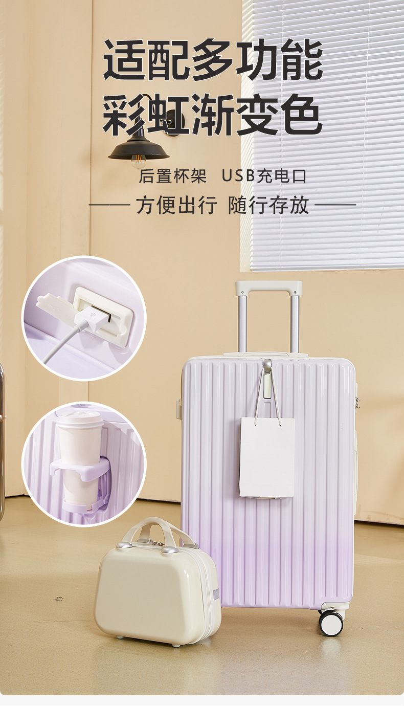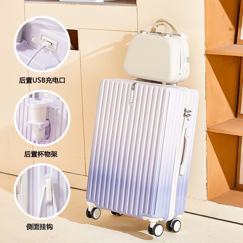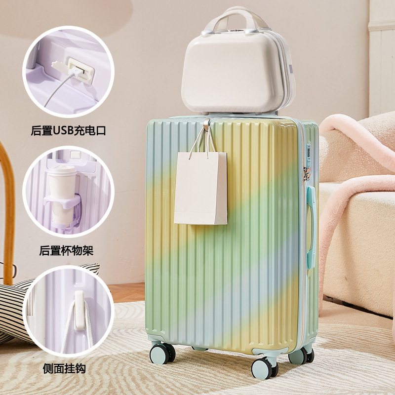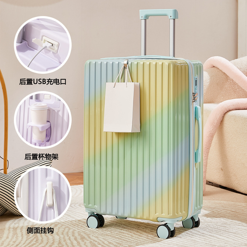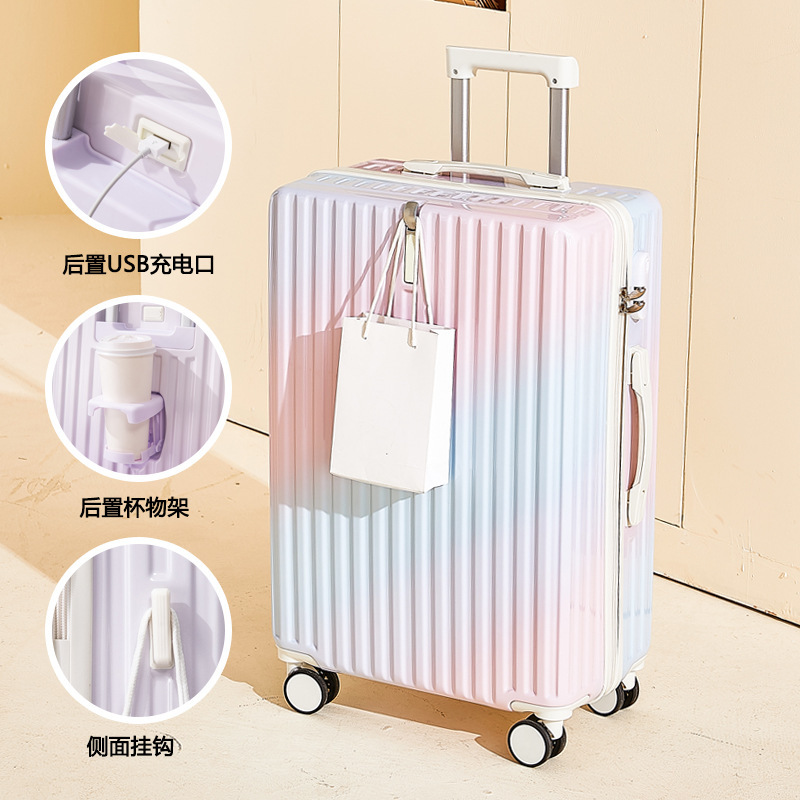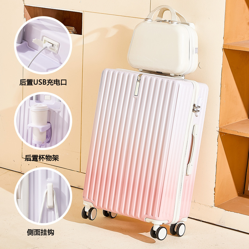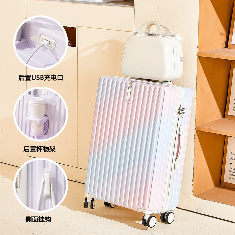 【엄선된 공장】그라데이션 컬러 여행가방 여성용 고급스러운 인터넷 유명인 트롤리 캐리어 대학생용 비밀번호 잠금 여행가방스토어 가기