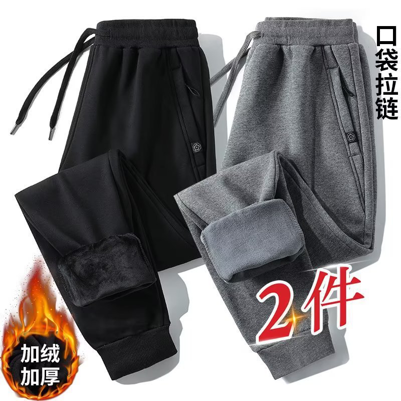 새로운 기모 가을 겨울 기모 캐주얼 바지 스트레이트 바지 스포츠 바지 남자 봄과 가을 두꺼운 남자 간단한 바지