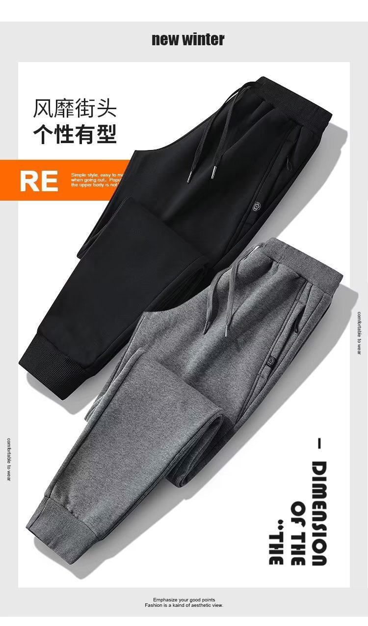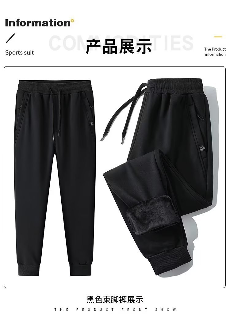 새로운 기모 가을 겨울 기모 캐주얼 바지 스트레이트 바지 스포츠 바지 남자 봄과 가을 두꺼운 남자 간단한 바지스토어 가기