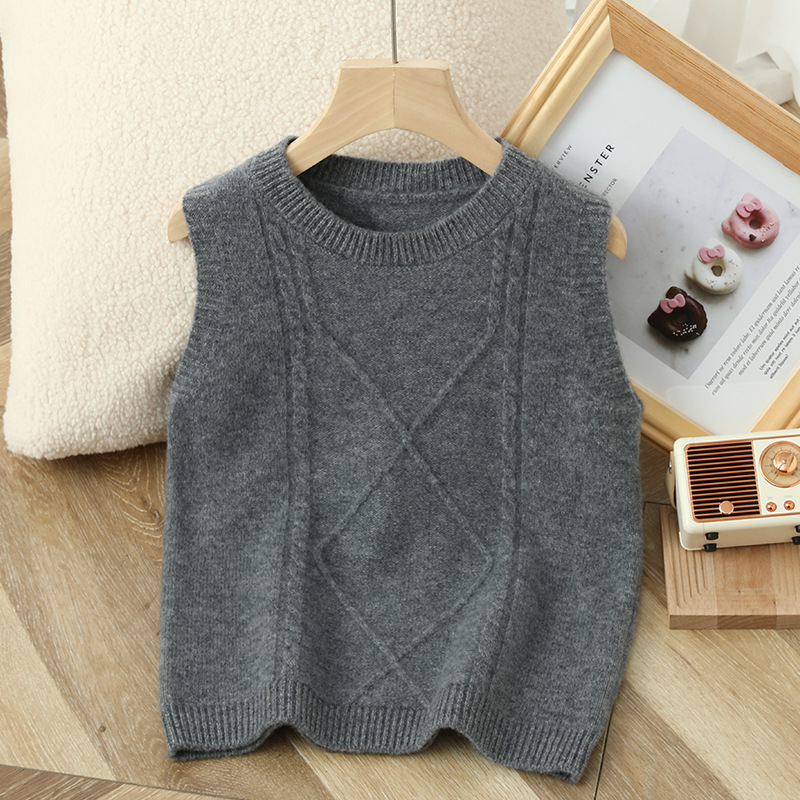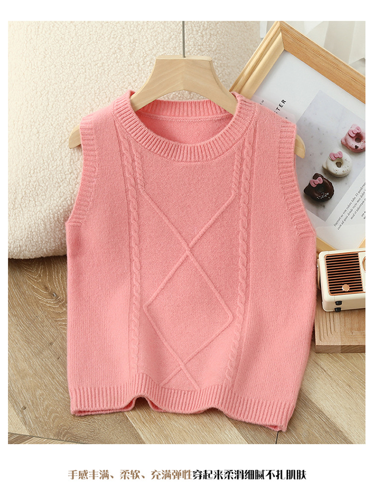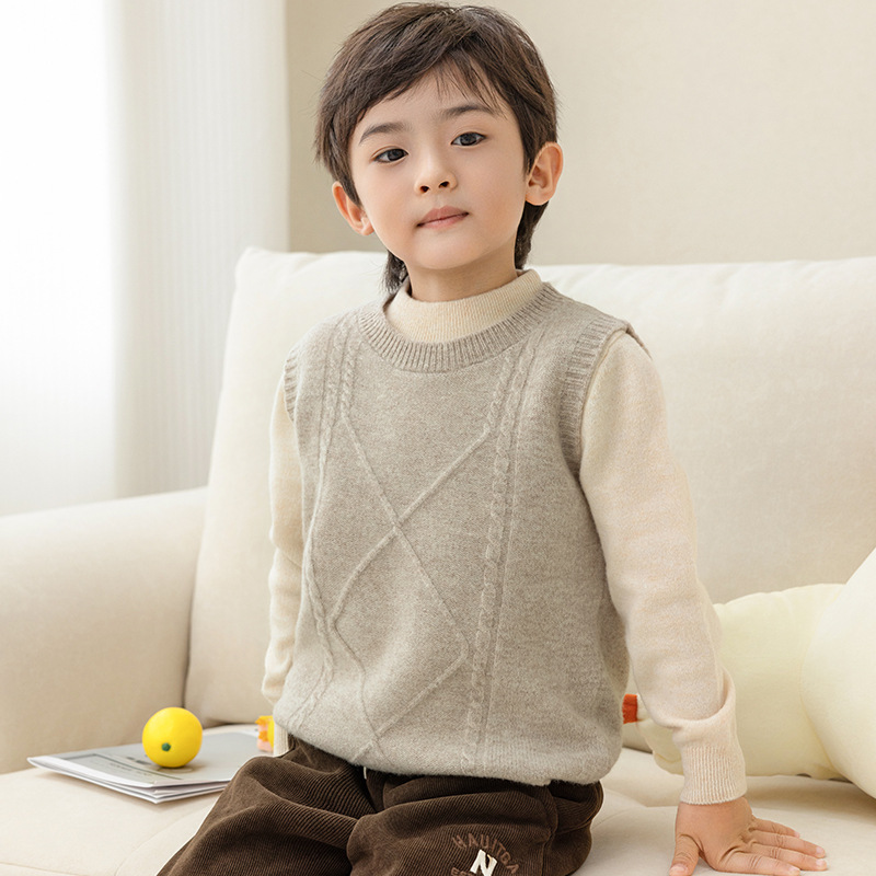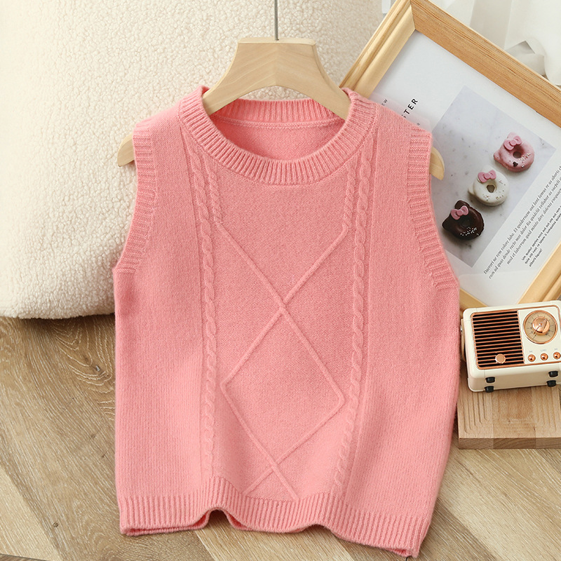 어린이 양모 니트 조끼 스웨터 소년 소녀 2024 새 봄과 가을 한국 느슨한 민소매 조끼 아기스토어 가기