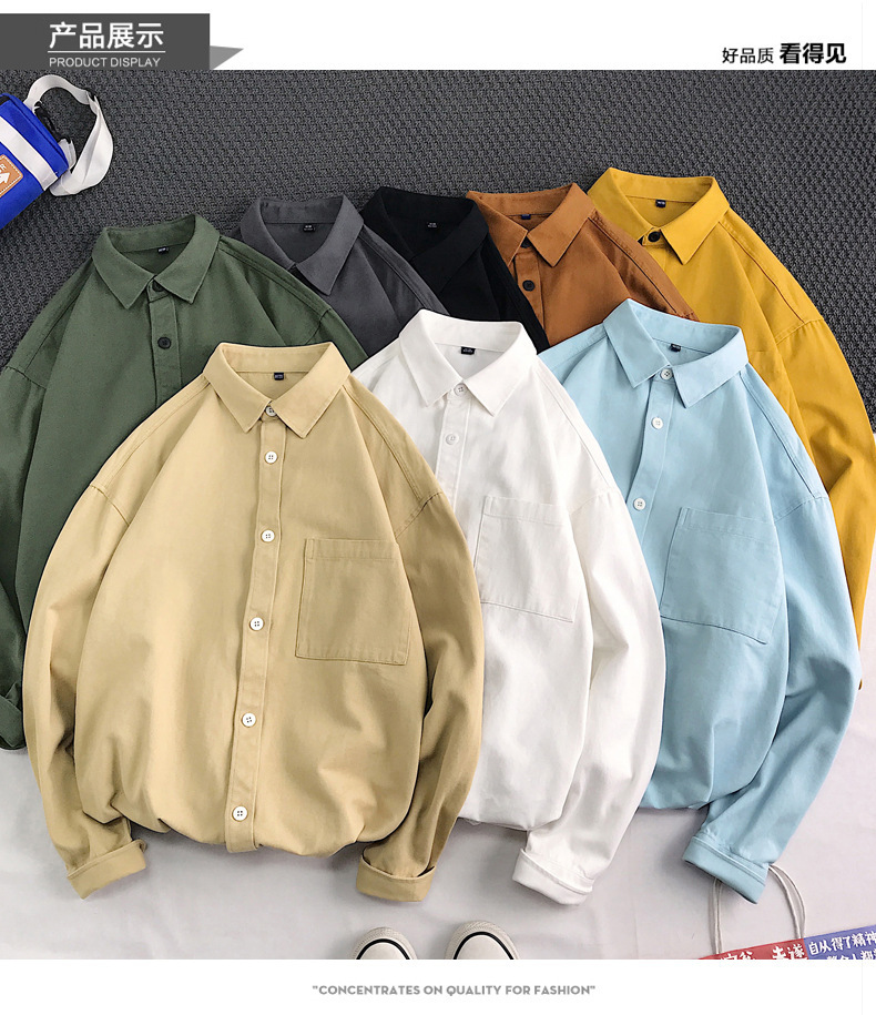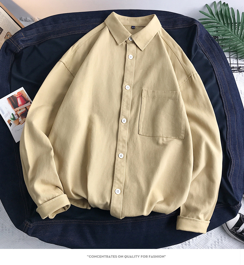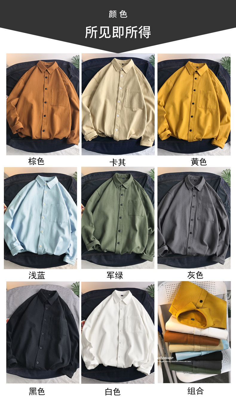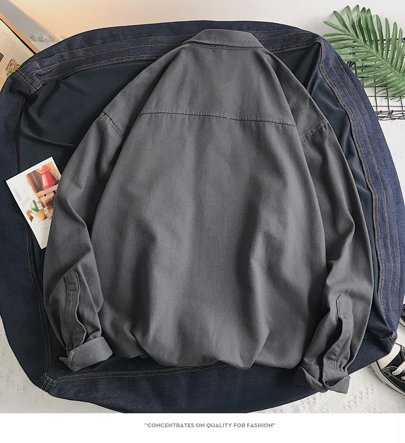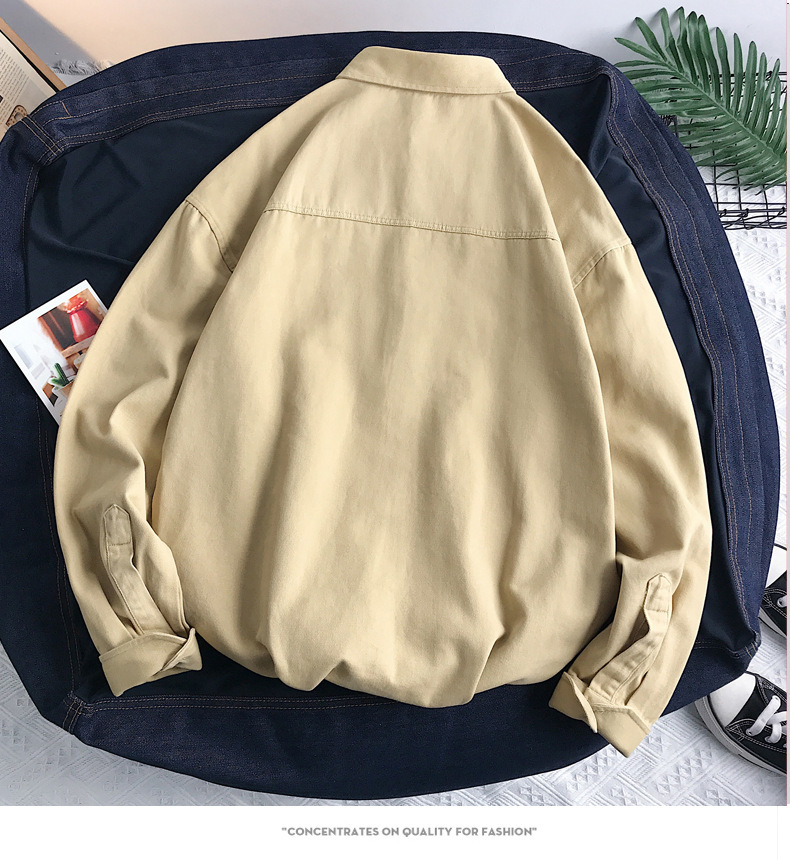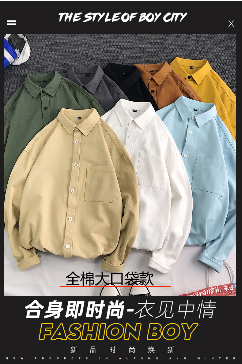 뉴 헤비 코튼 셔츠 남성용 긴팔 Ins 트렌디 한 홍콩 스타일 느슨한 재킷 봄 인테리어 캐주얼 툴링스토어 가기