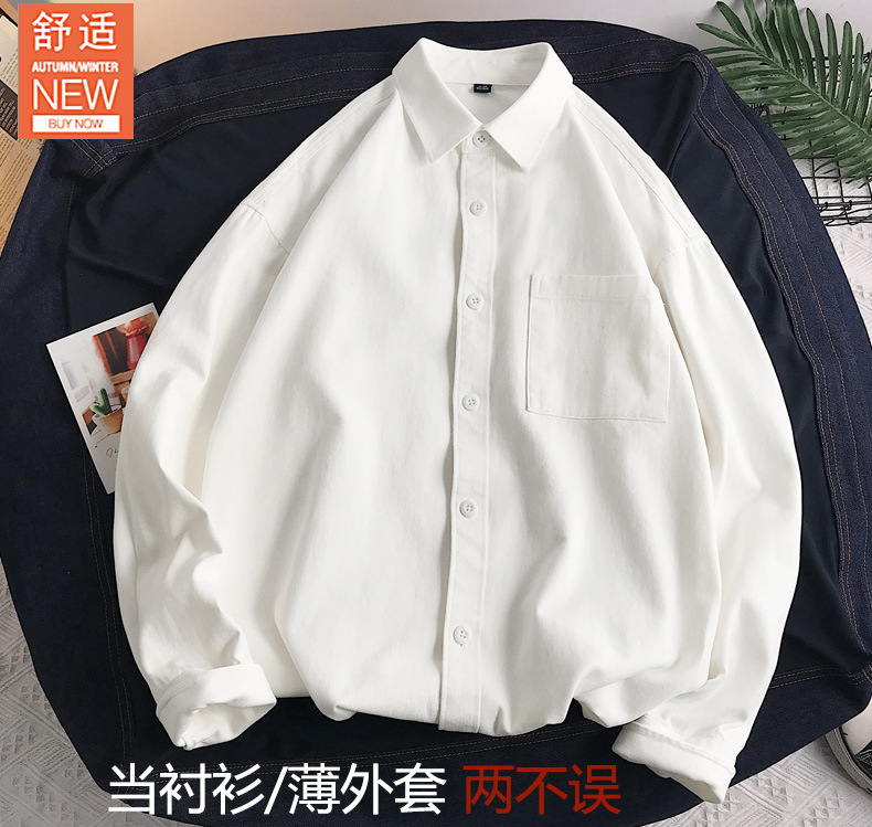 뉴 헤비 코튼 셔츠 남성용 긴팔 Ins 트렌디 한 홍콩 스타일 느슨한 재킷 봄 인테리어 캐주얼 툴링