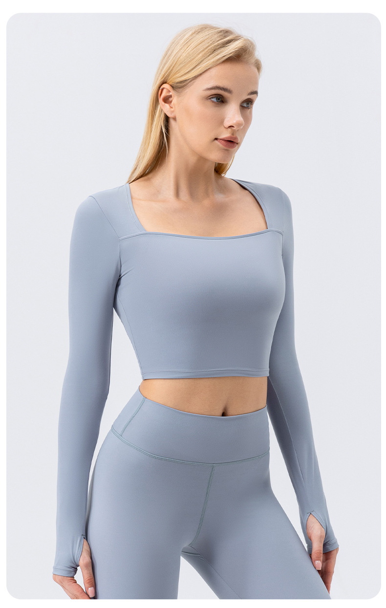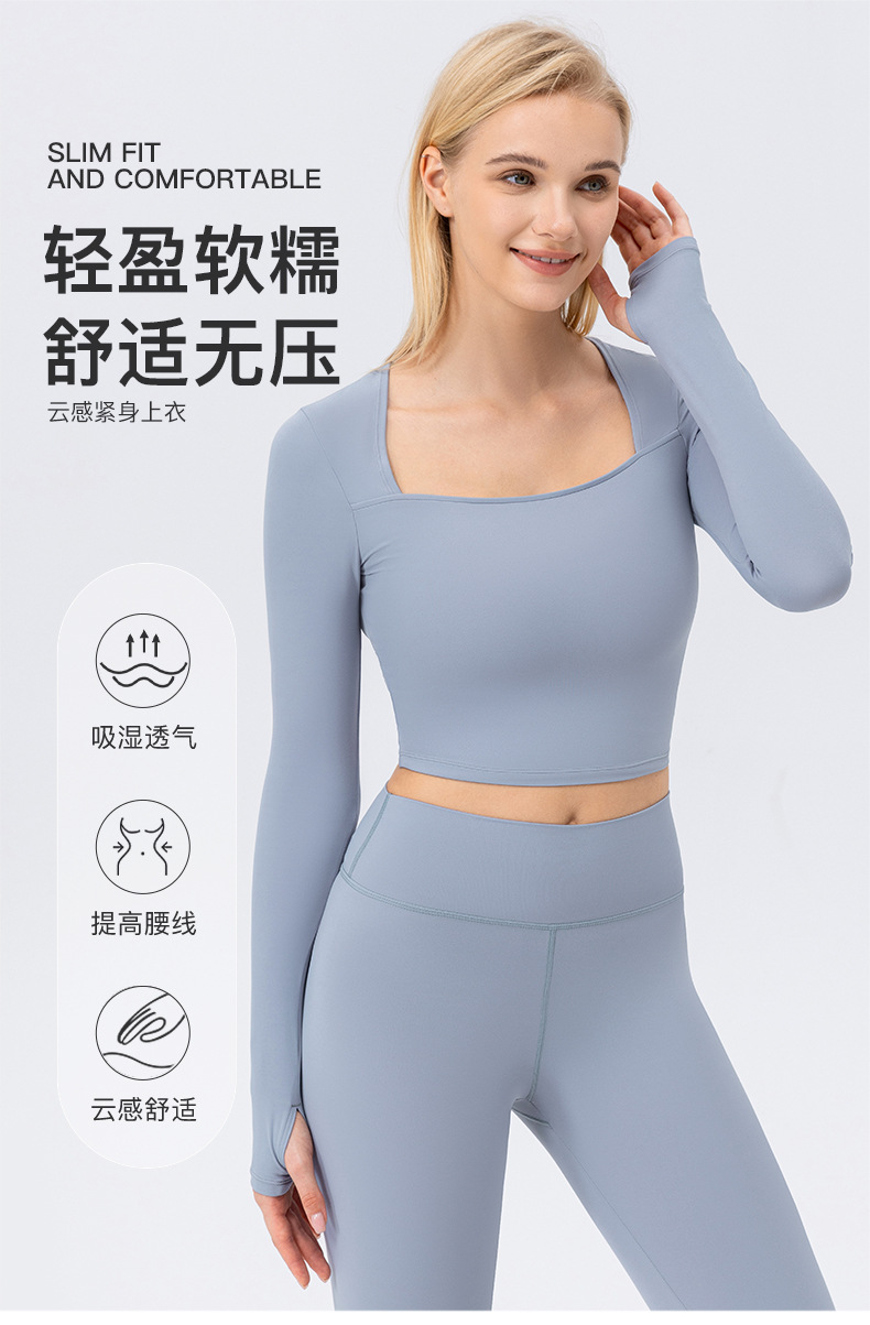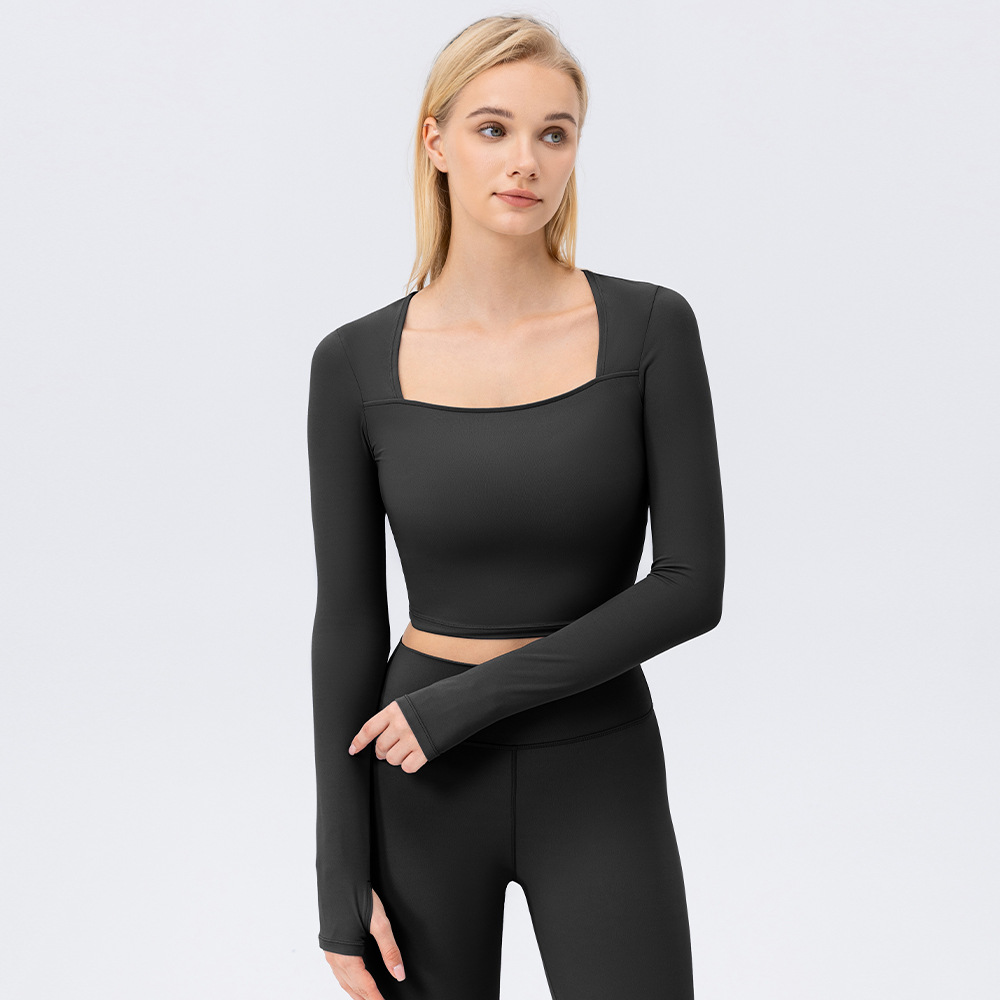 가을과 겨울 요가 옷 긴 소매 여성용 칼라 벌거 벗은 타이트 스포츠 티셔츠 야외 달리기 피트니스 탑 42552스토어 가기